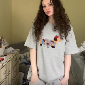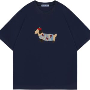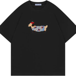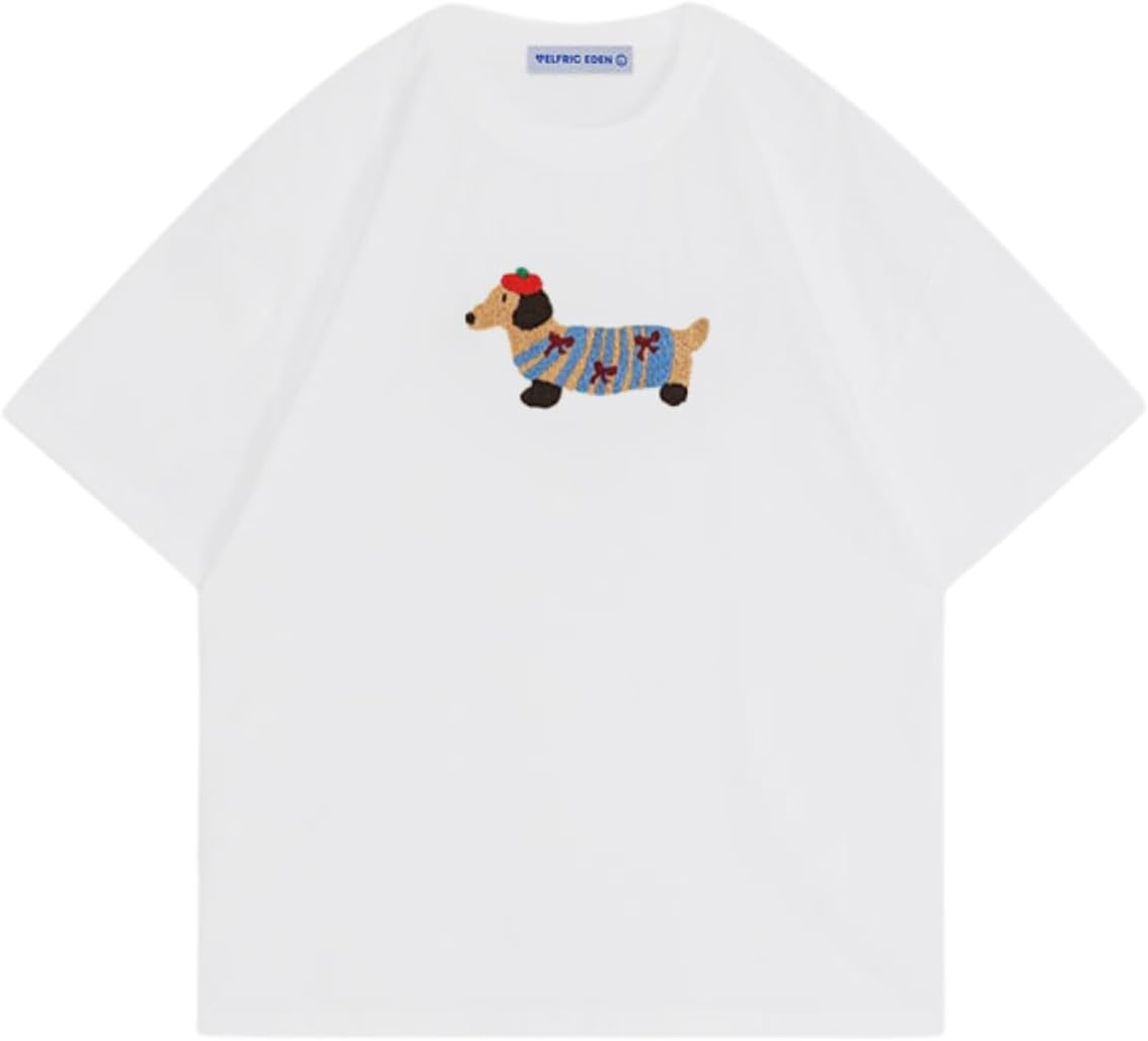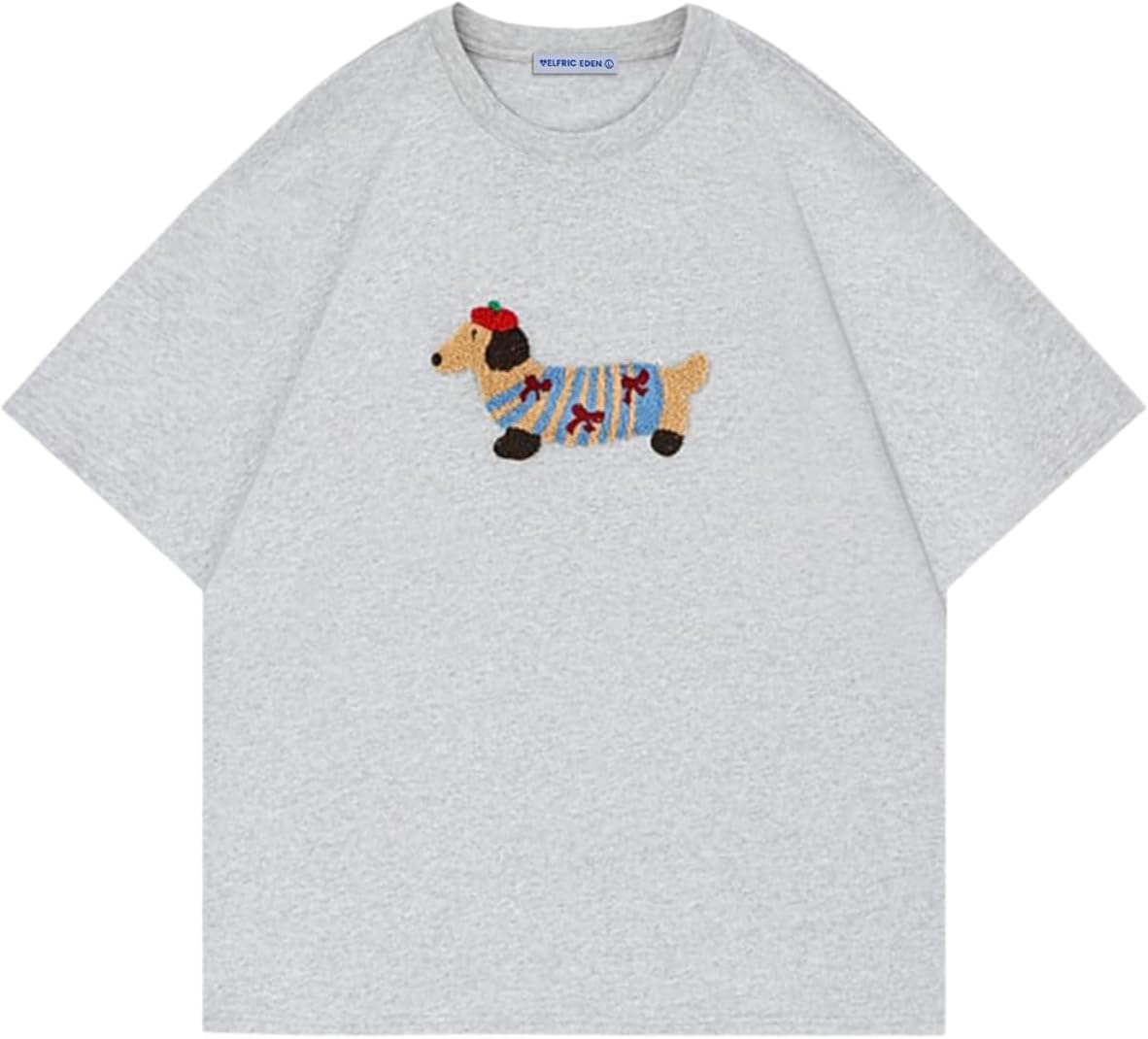Aelfric Eden Mens Oversized Graphic Tees Dog Embroidery Casual Women Tshirts Short Sleeve Top Cotton Cute Tee Shirt