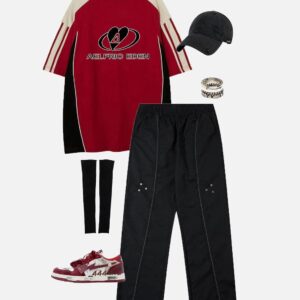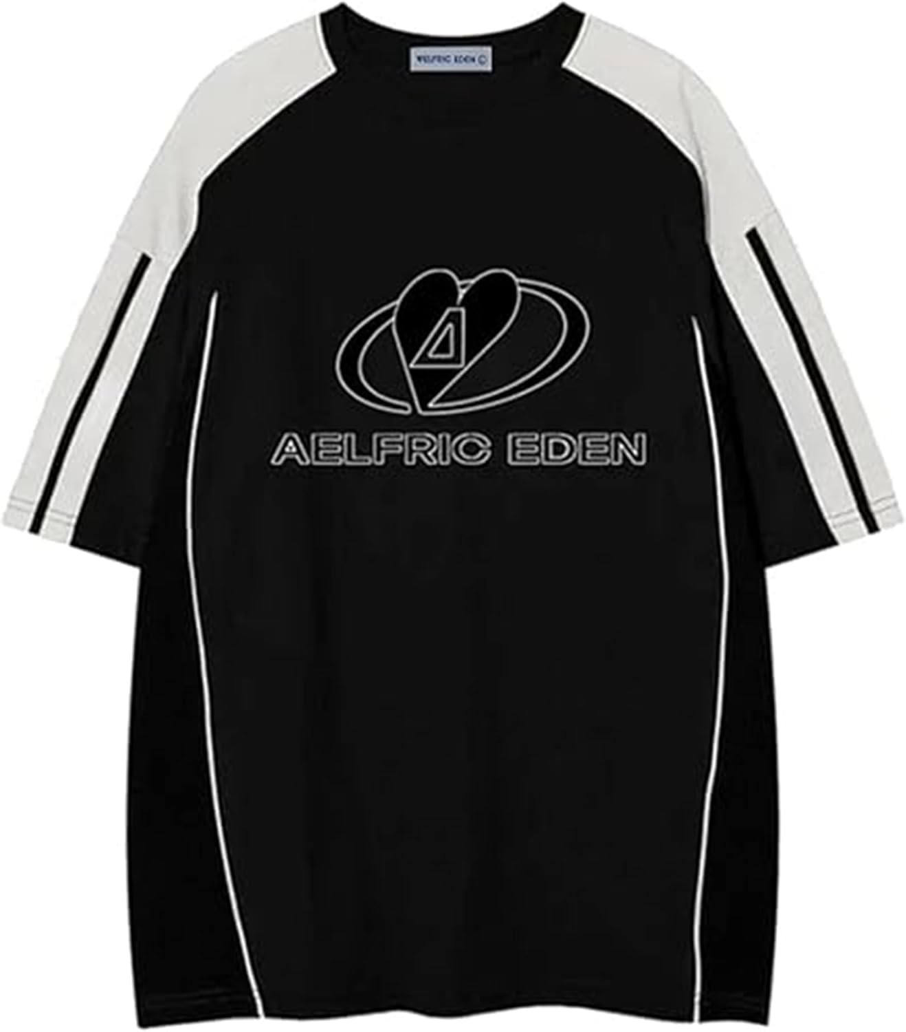 Aelfric Eden Oversized Graphic Tees Men Contrast Color Speedway Racing Tee Unisex Streetwear Tshirt Patchwork Polo Tee quantity