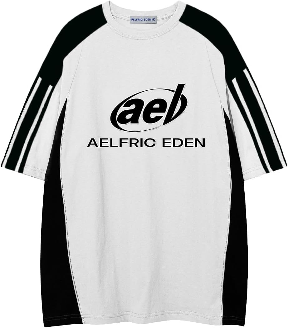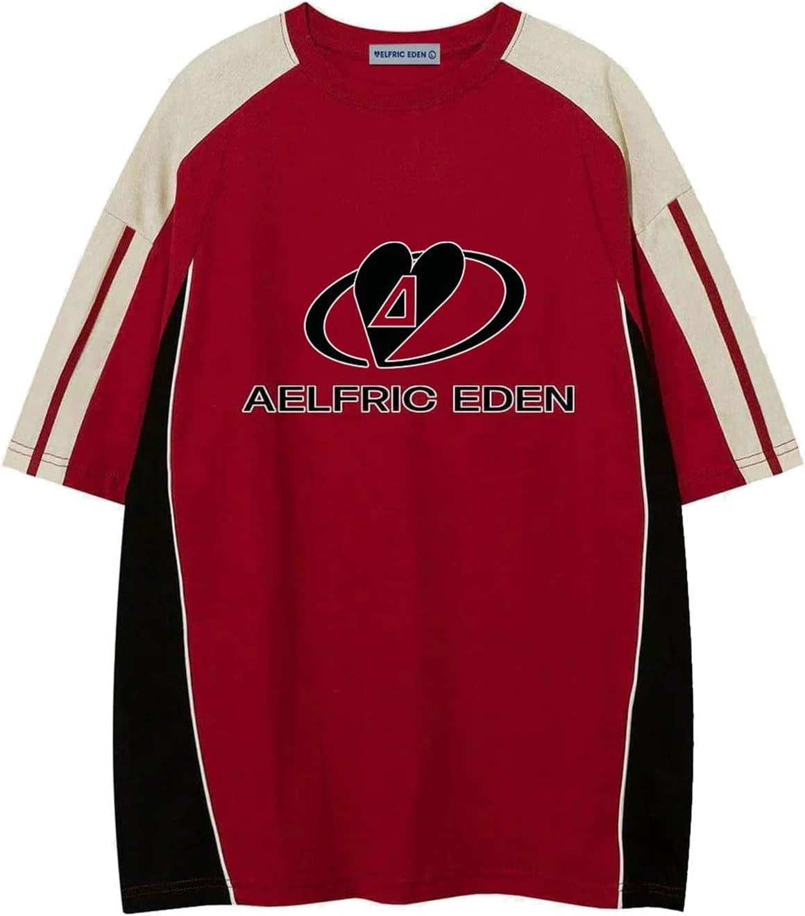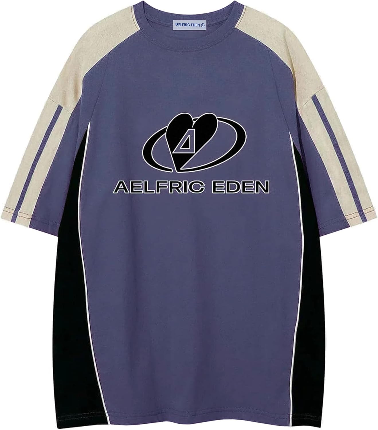 Aelfric Eden Oversized Graphic Tees Men Contrast Color Speedway Racing Tee Unisex Streetwear Tshirt Patchwork Polo Tee