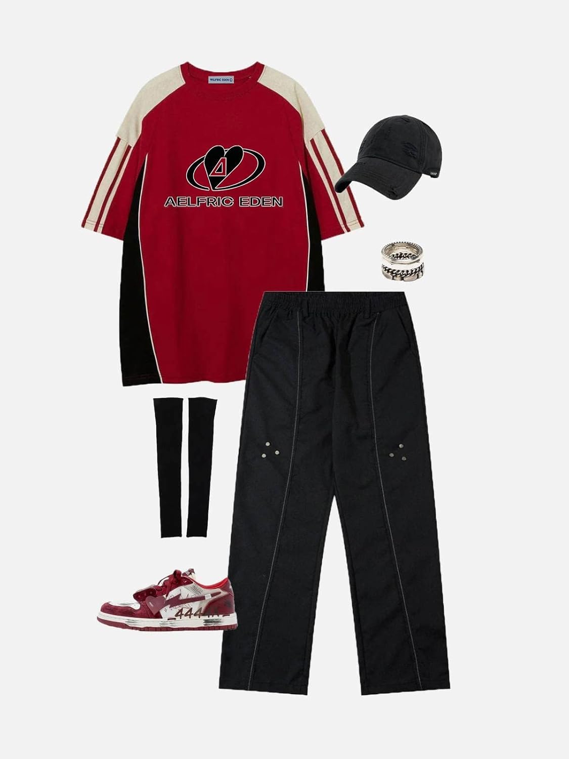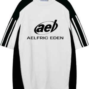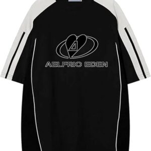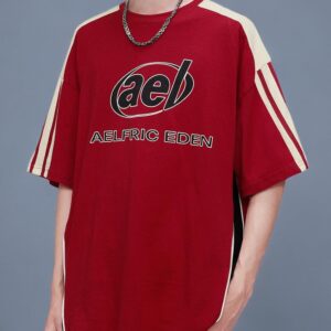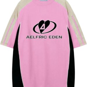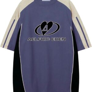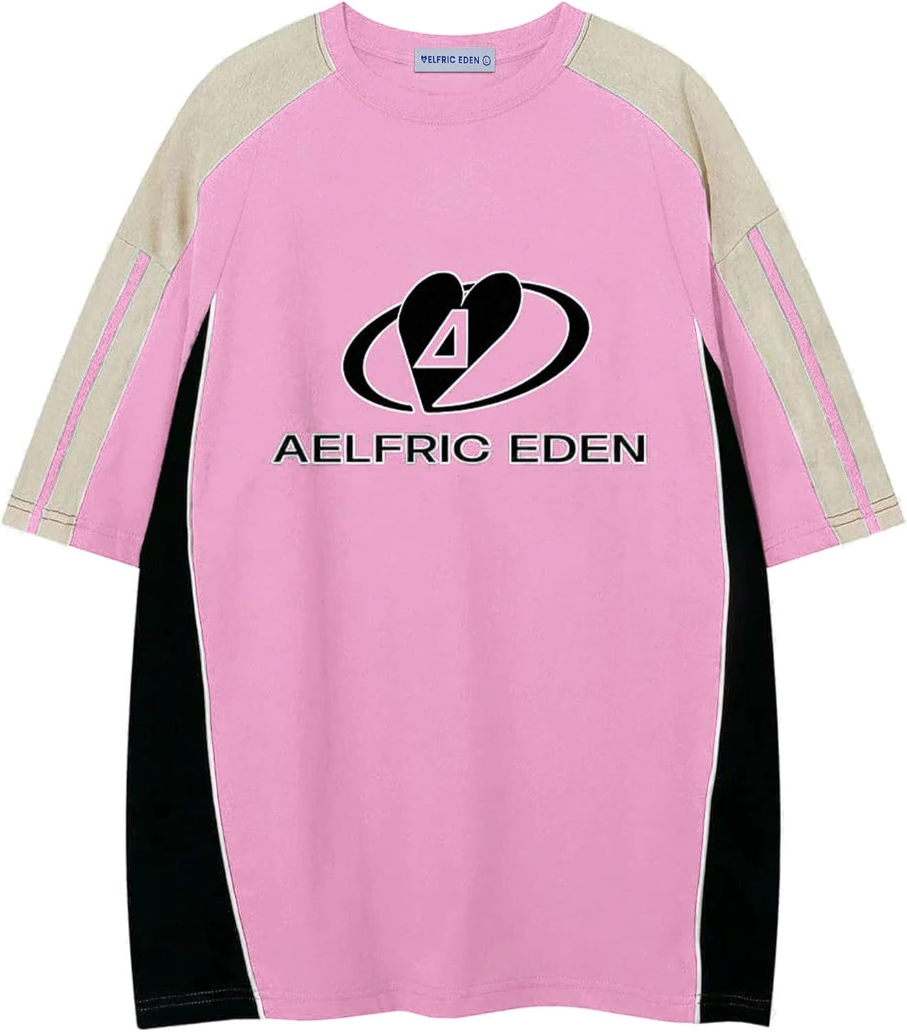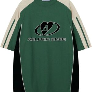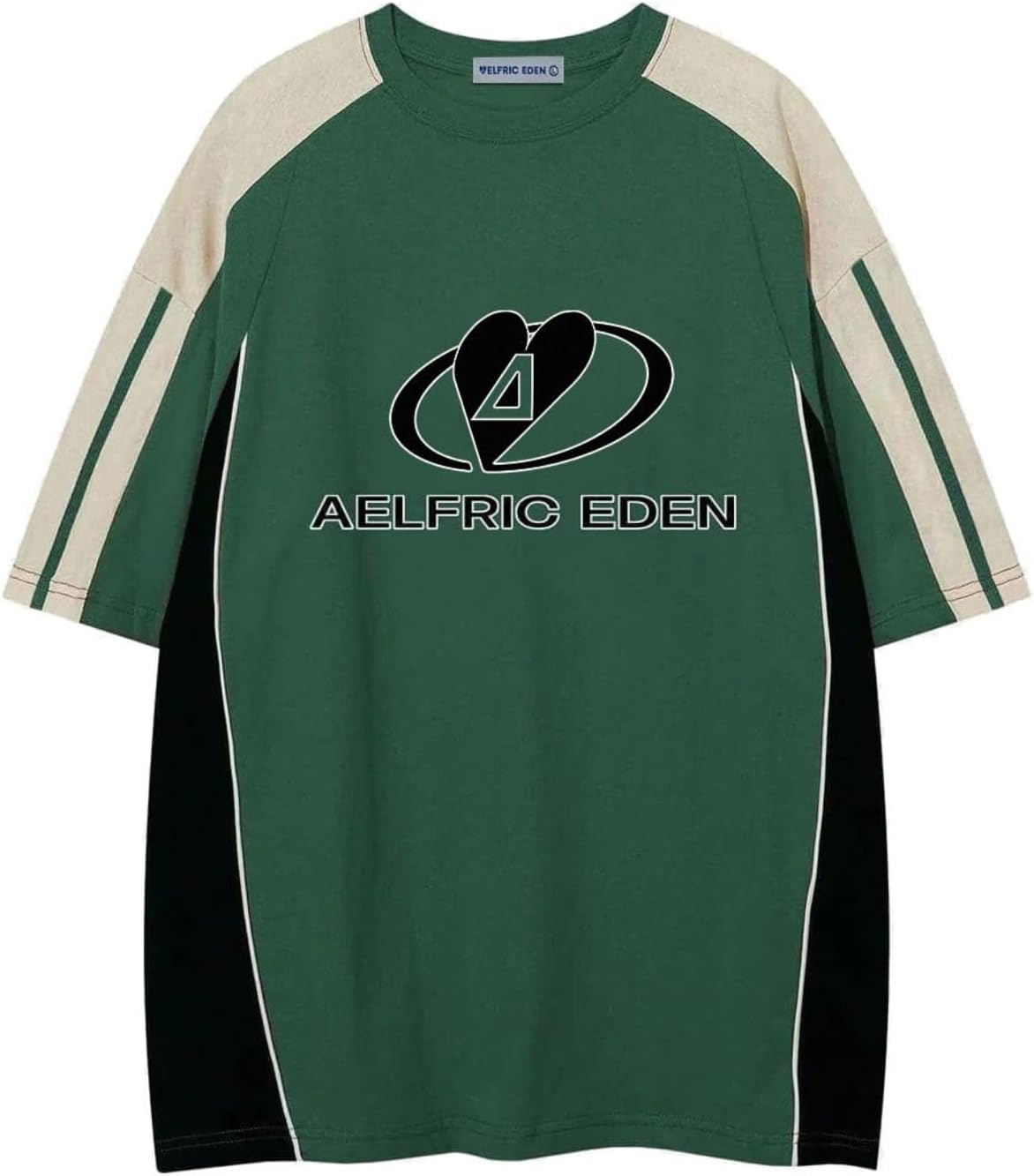 Aelfric Eden Oversized Graphic Tees Men Contrast Color Speedway Racing Tee Unisex Streetwear Tshirt Patchwork Polo Tee