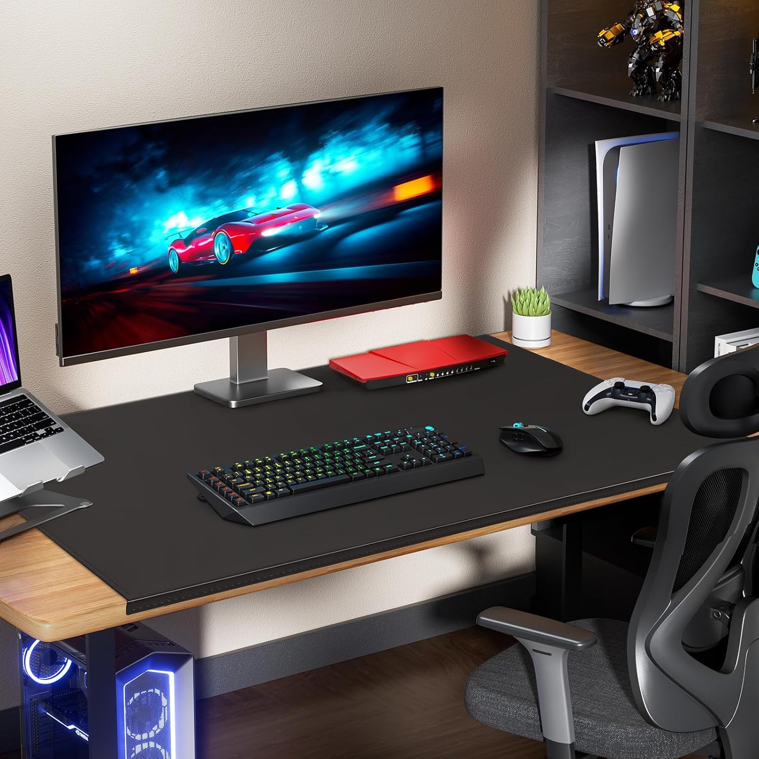AKOZLIN 35.4″x22.8″ Soft PU Leather Surface Office Desk Mouse Mat Pad with Full Grip Fixation Lip Table Blotter Edge-Locked Protector