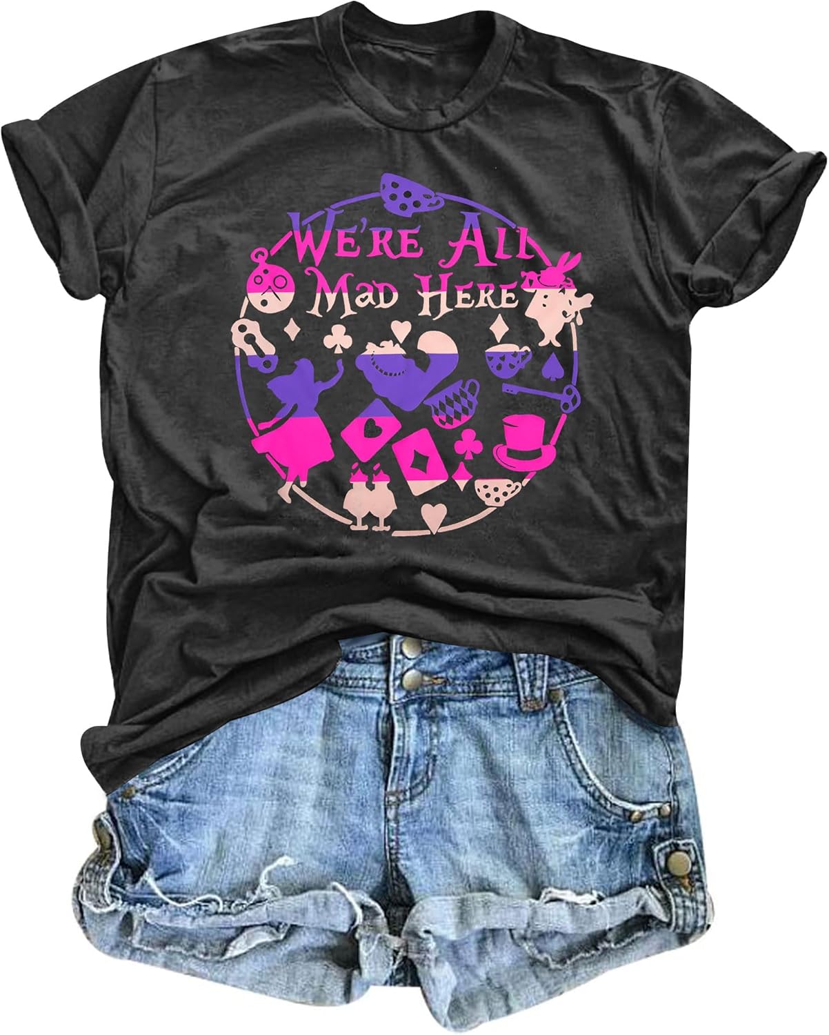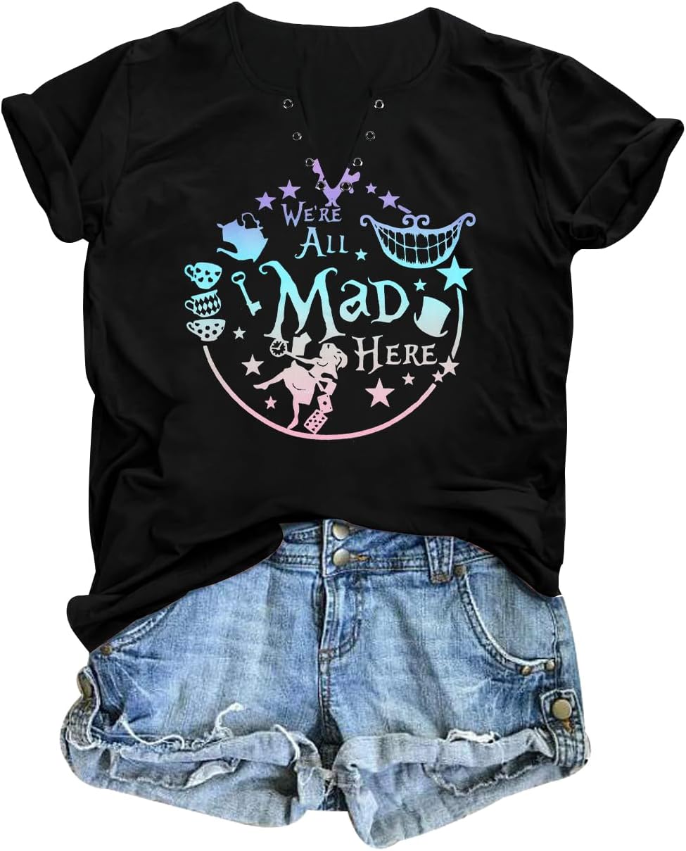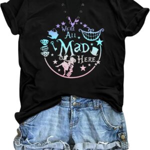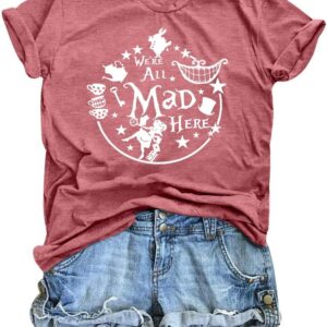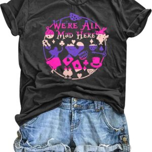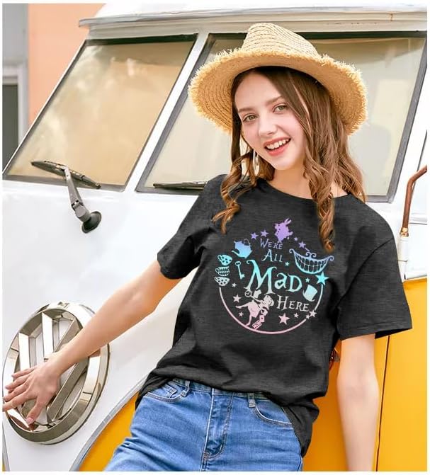 Step into whimsy with our comfy, breathable Alice in Wonderland T-shirts for women, featuring cute designs like the Mad Hatter and Cheshire Cat—perfect for any themed event or casual outing.