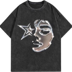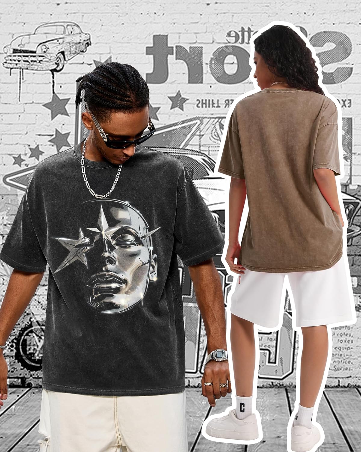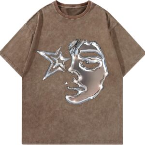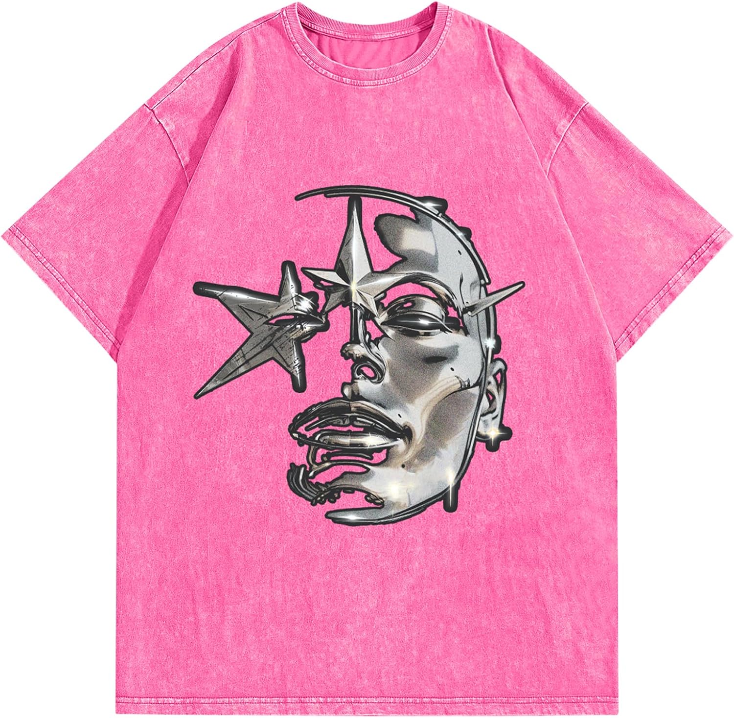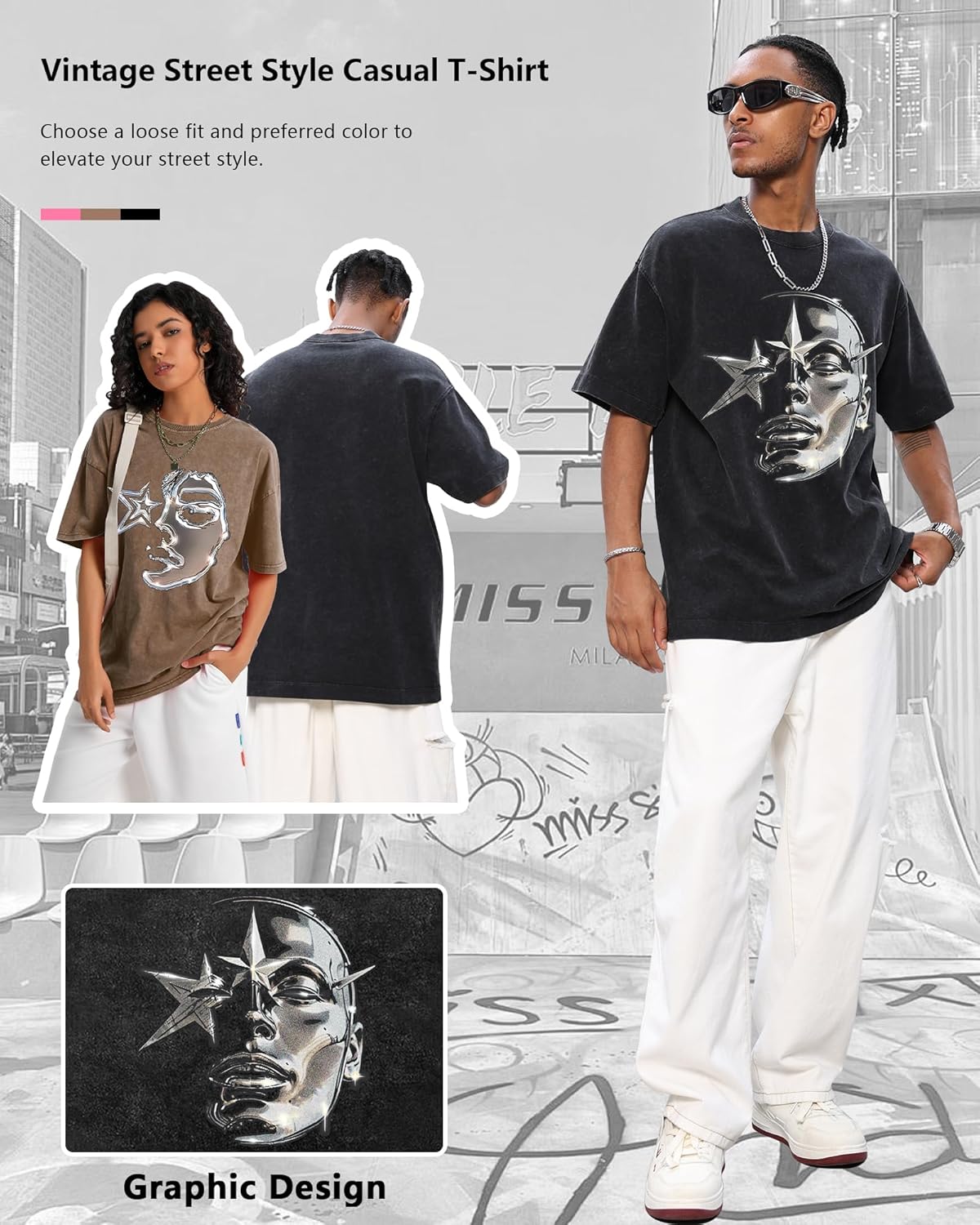 AugYew Men’s Graphic Tees Shirt Unisex Cotton Oversized T-Shirt Short Sleeve Vintage Streetwear Casual Tee Top