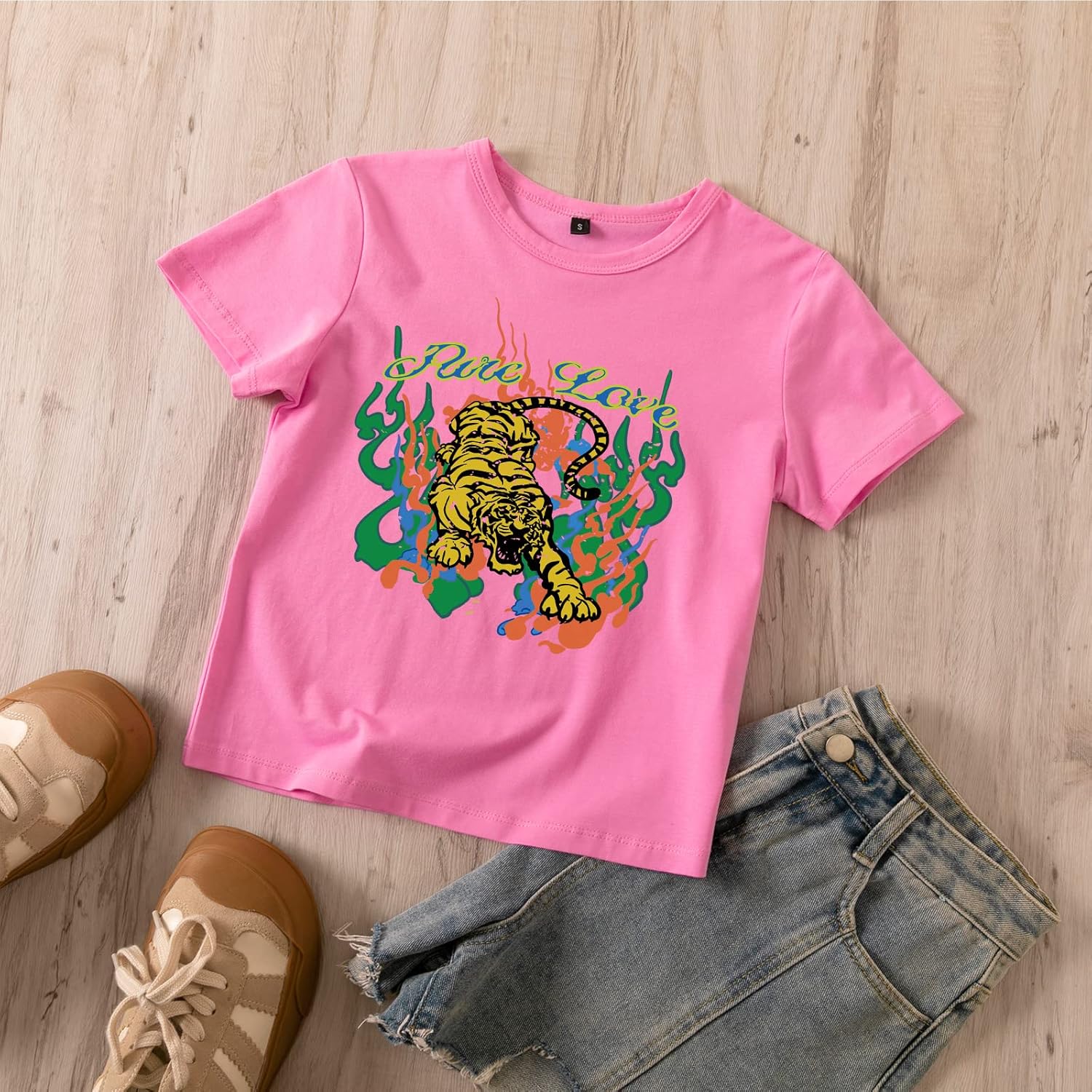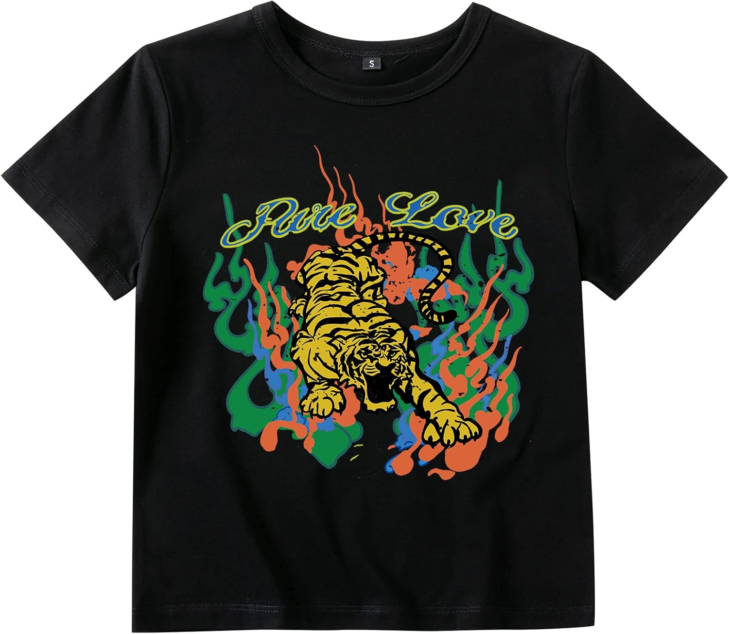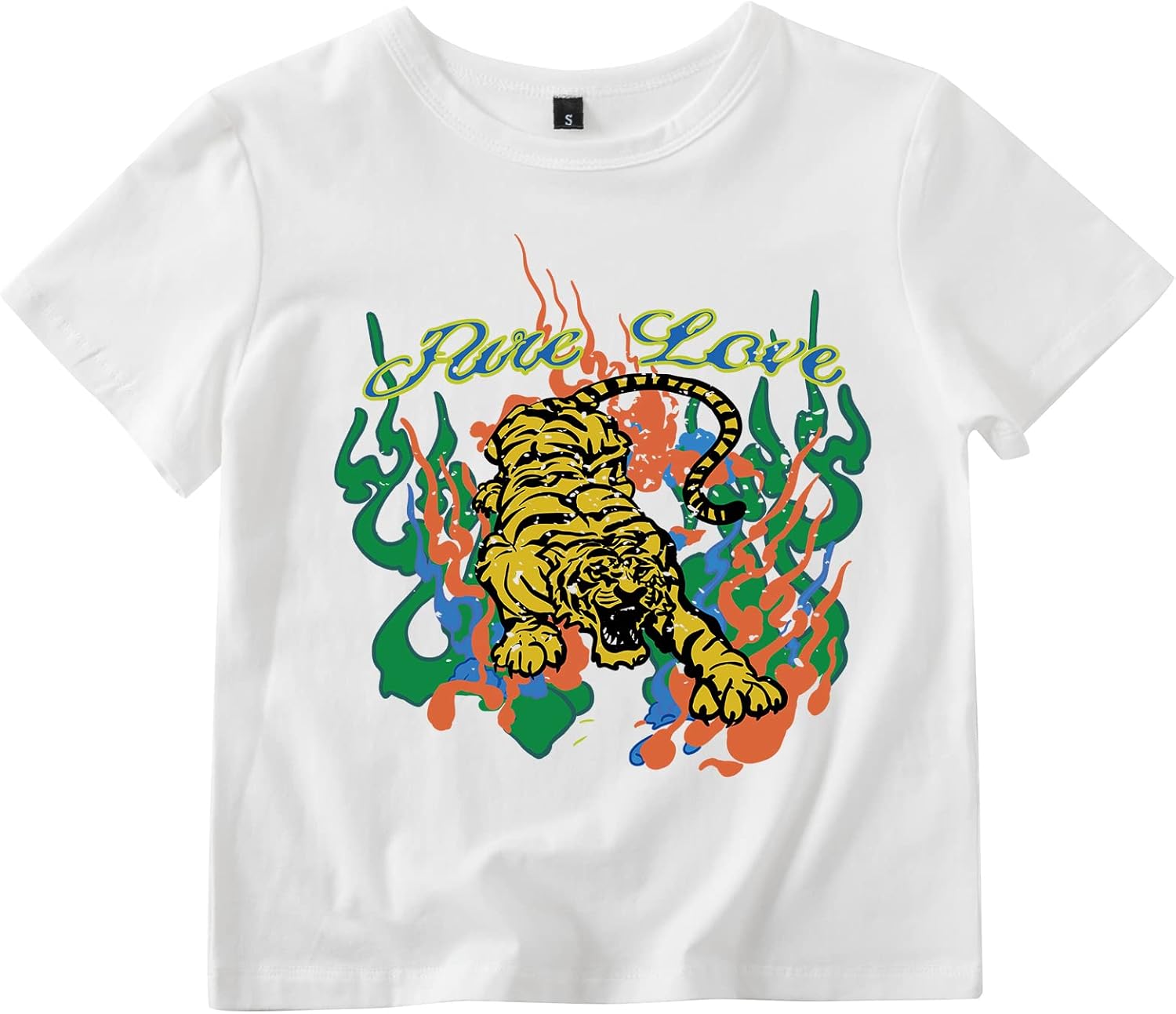 BINTEHGS Cute Graphic Baby Tees for Women Trendy Aesthetic Print Crop T Shirt Short Sleeve Y2K Cropped Shirt for Teen Girls