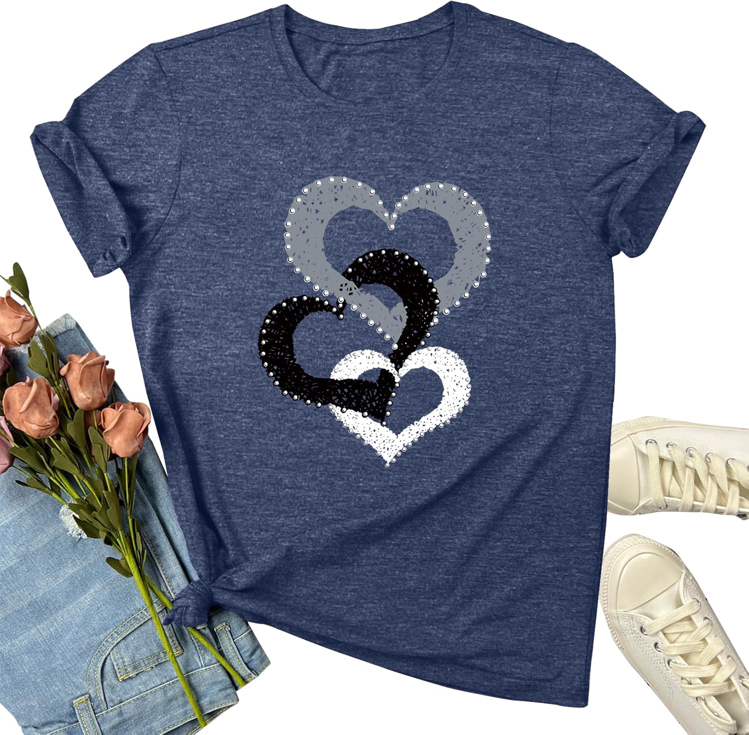 BLACKOO Women's Graphic Print Tee Summer Crew Neck T shirt Top