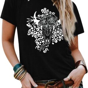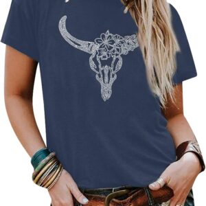 Boho Cow Skull Shirt Women Cowgirl t Shirt Vintage Western Rodeo Graphic Tee