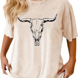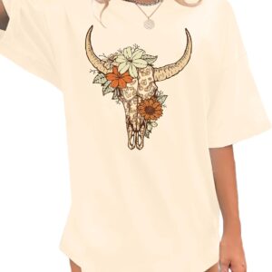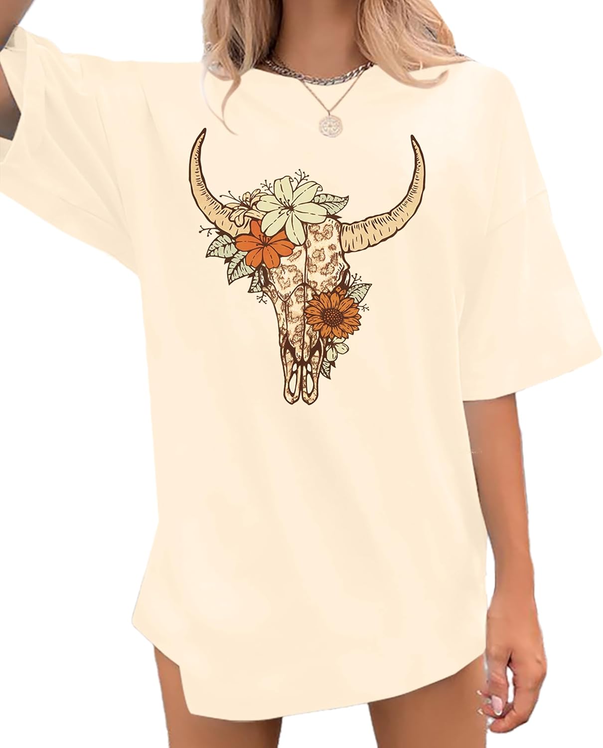 Cow Skull Shirts for Women Western Graphic T Shirt Oversized Country Music Shirt