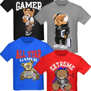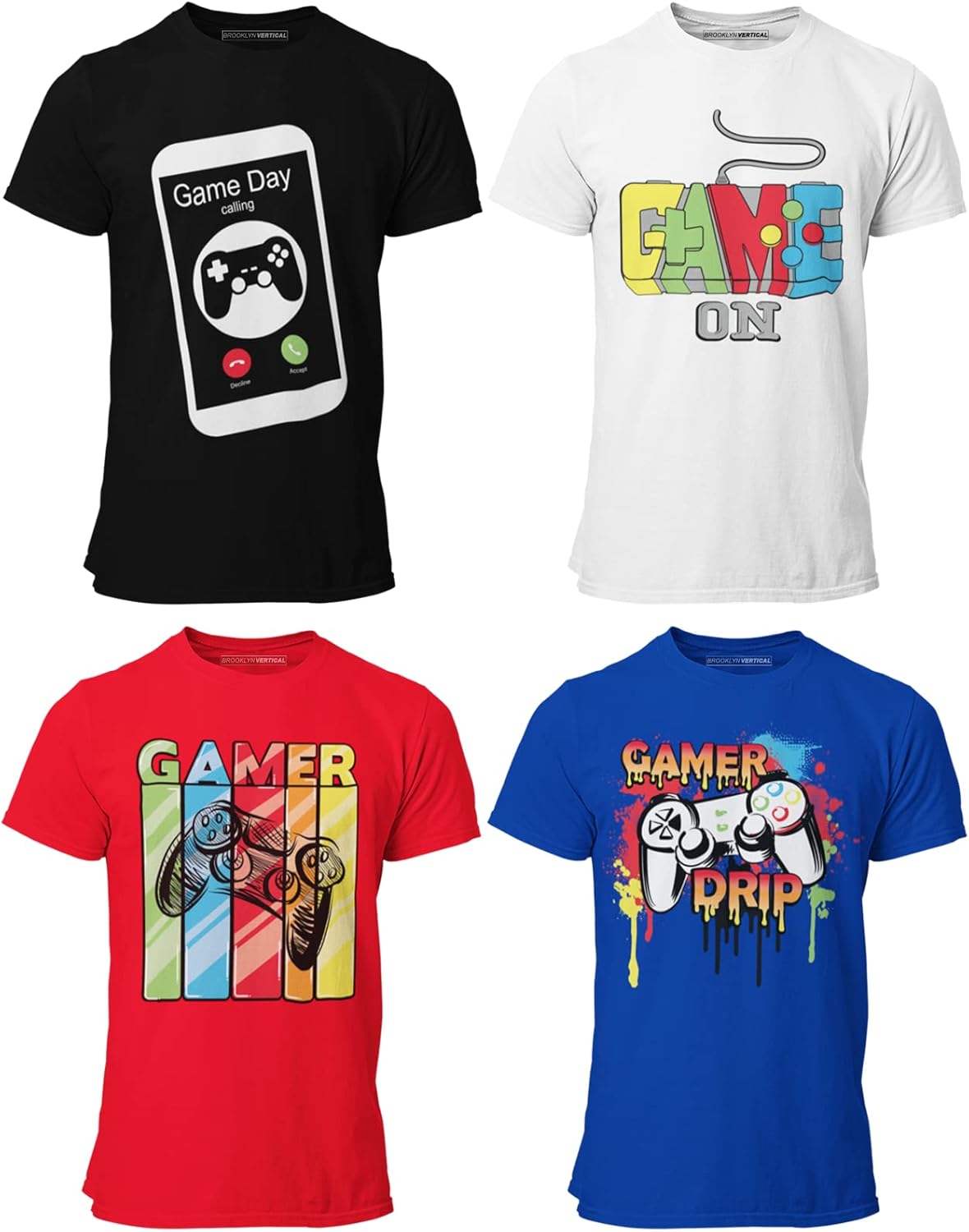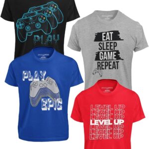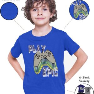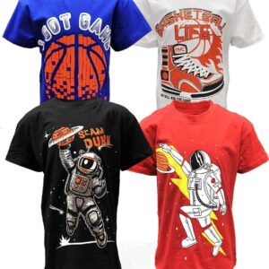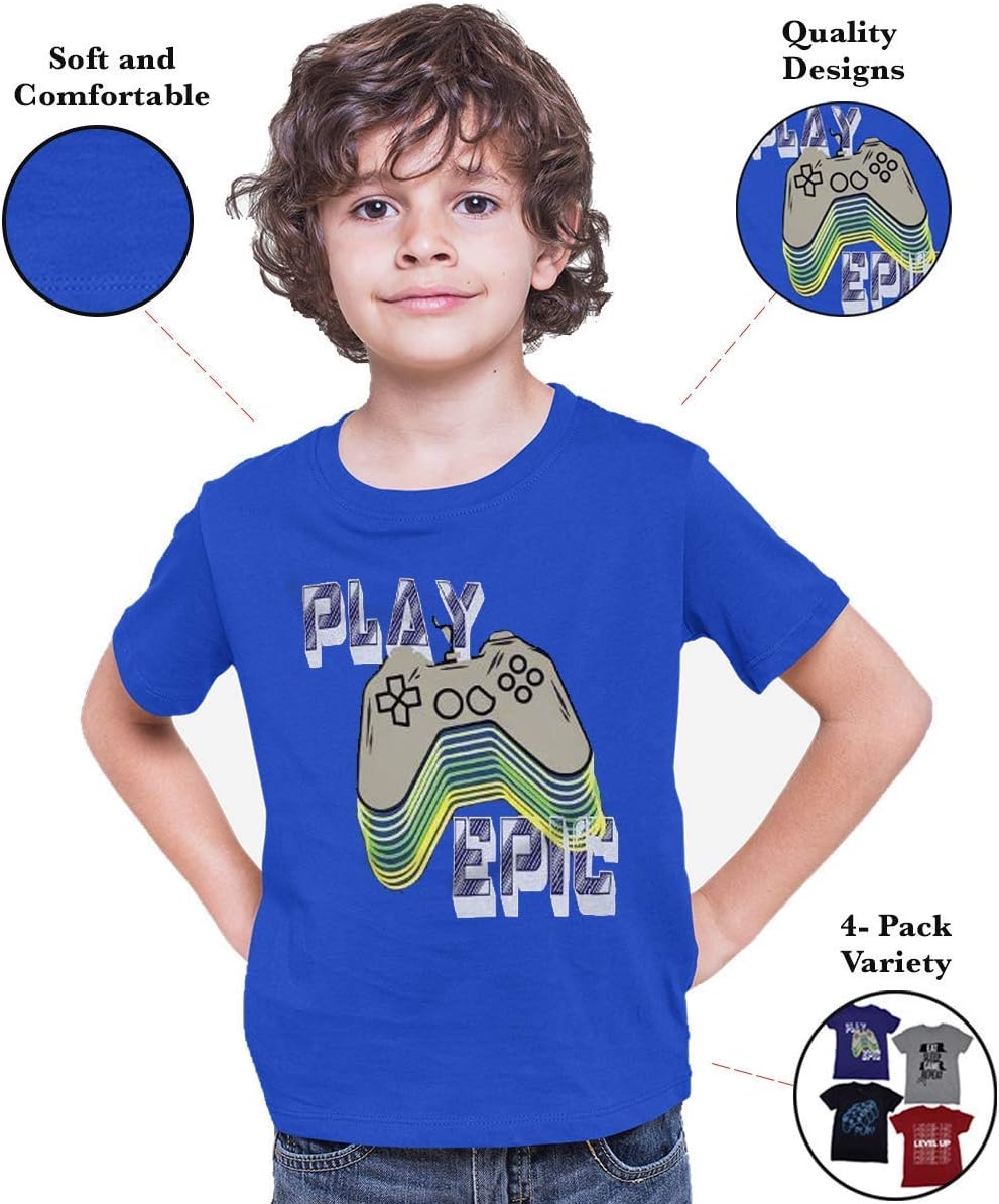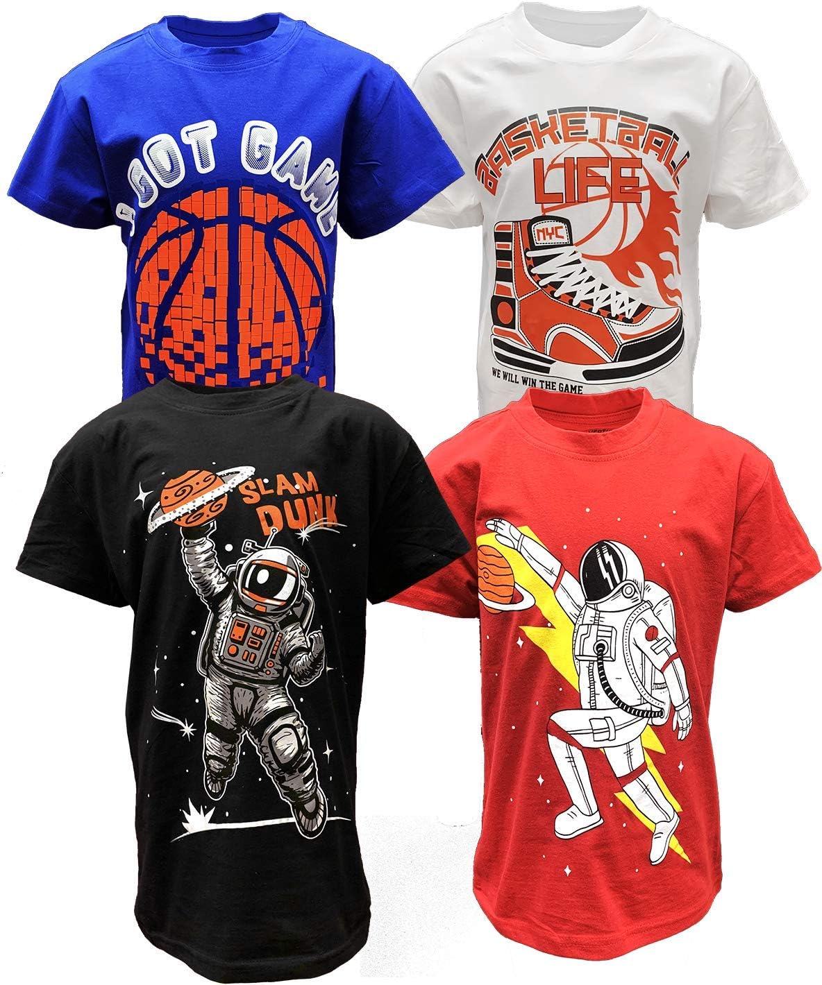 BROOKLYN VERTICAL 4-Pack Boys Short Sleeve Crew Neck T-Shirt with Chest Print | Soft Cotton Sizes 6-20