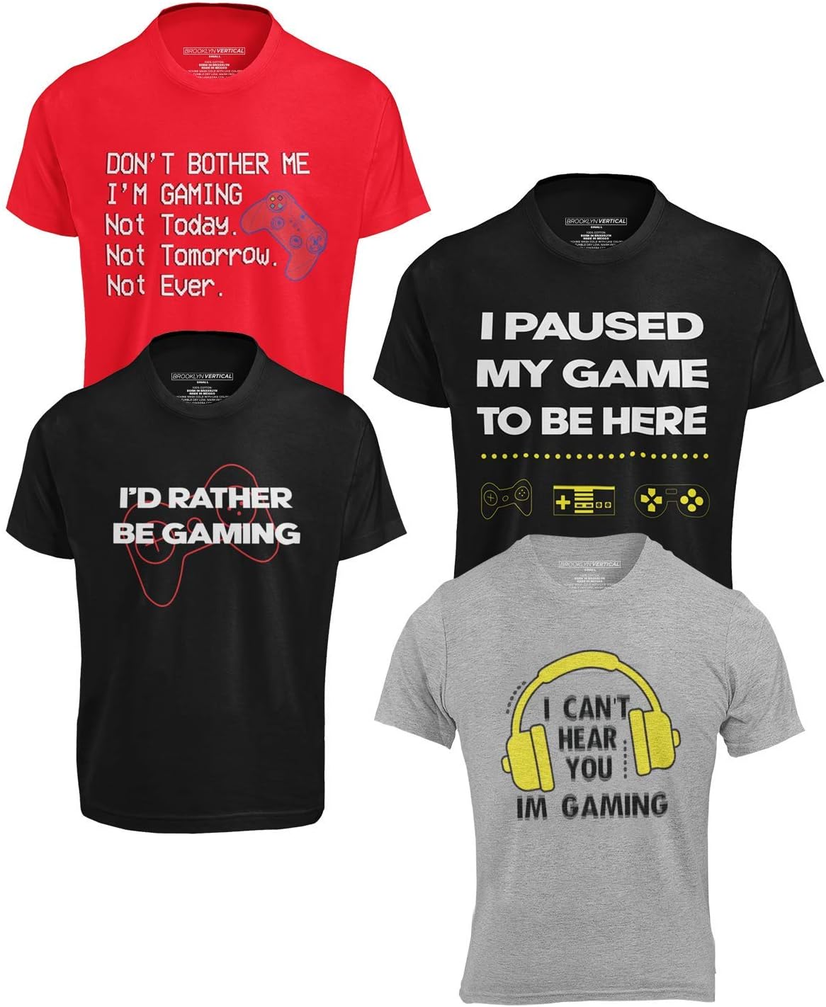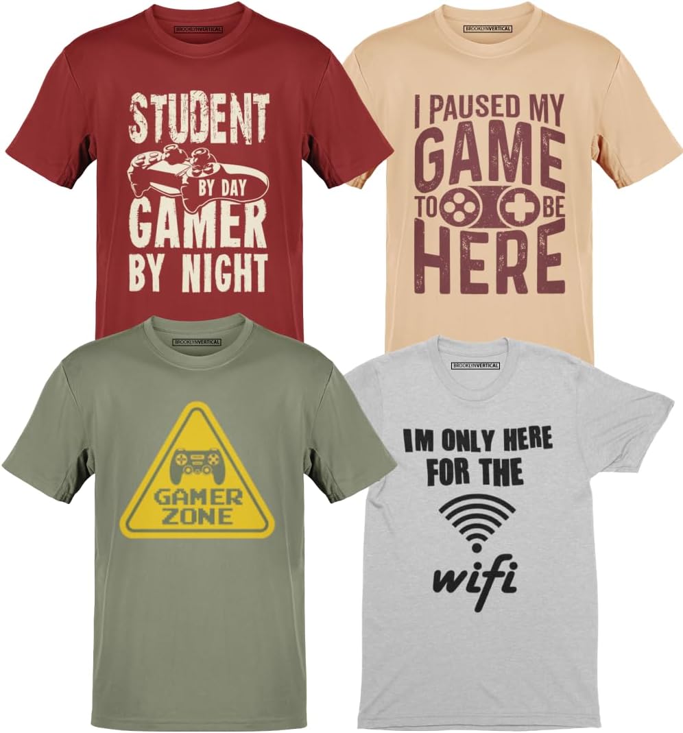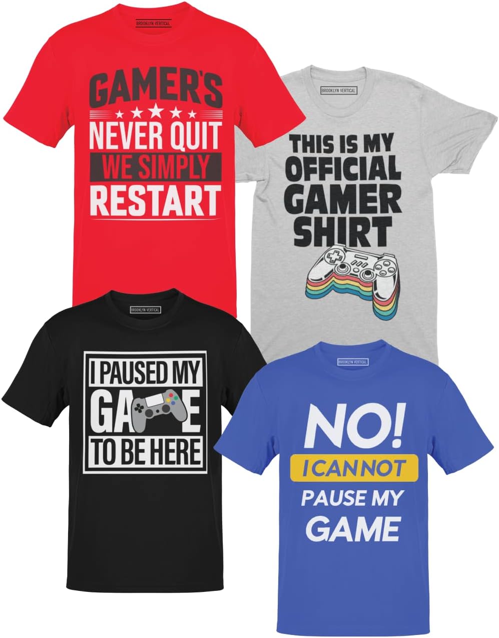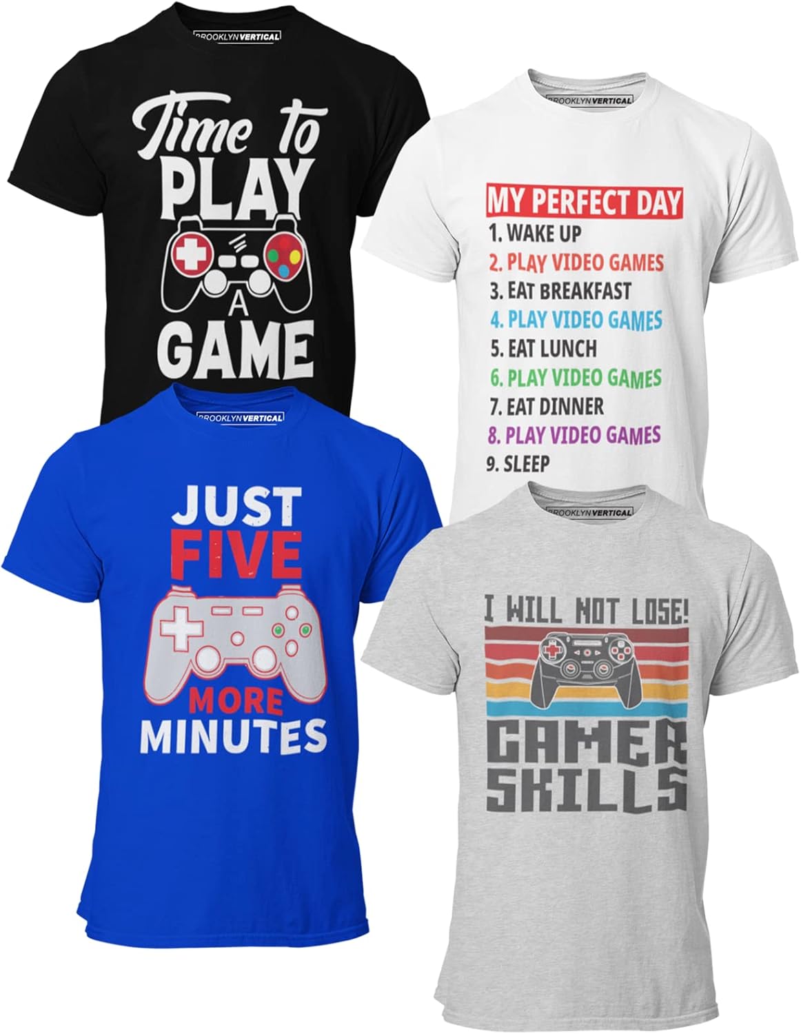 BROOKLYN VERTICAL 4-Pack Boys Short Sleeve Crew Neck T-Shirt with Chest Print | Soft Cotton Sizes 6-20