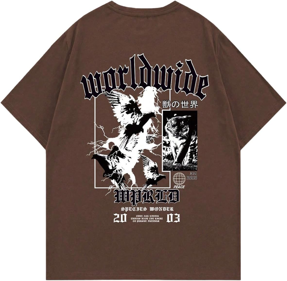 COZYEASE Men’s Letter Graphic Tee Casual Short Sleeve Round Neck Summer Shirt Streetwear Top