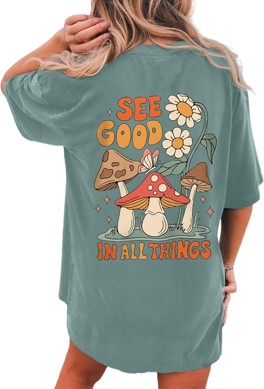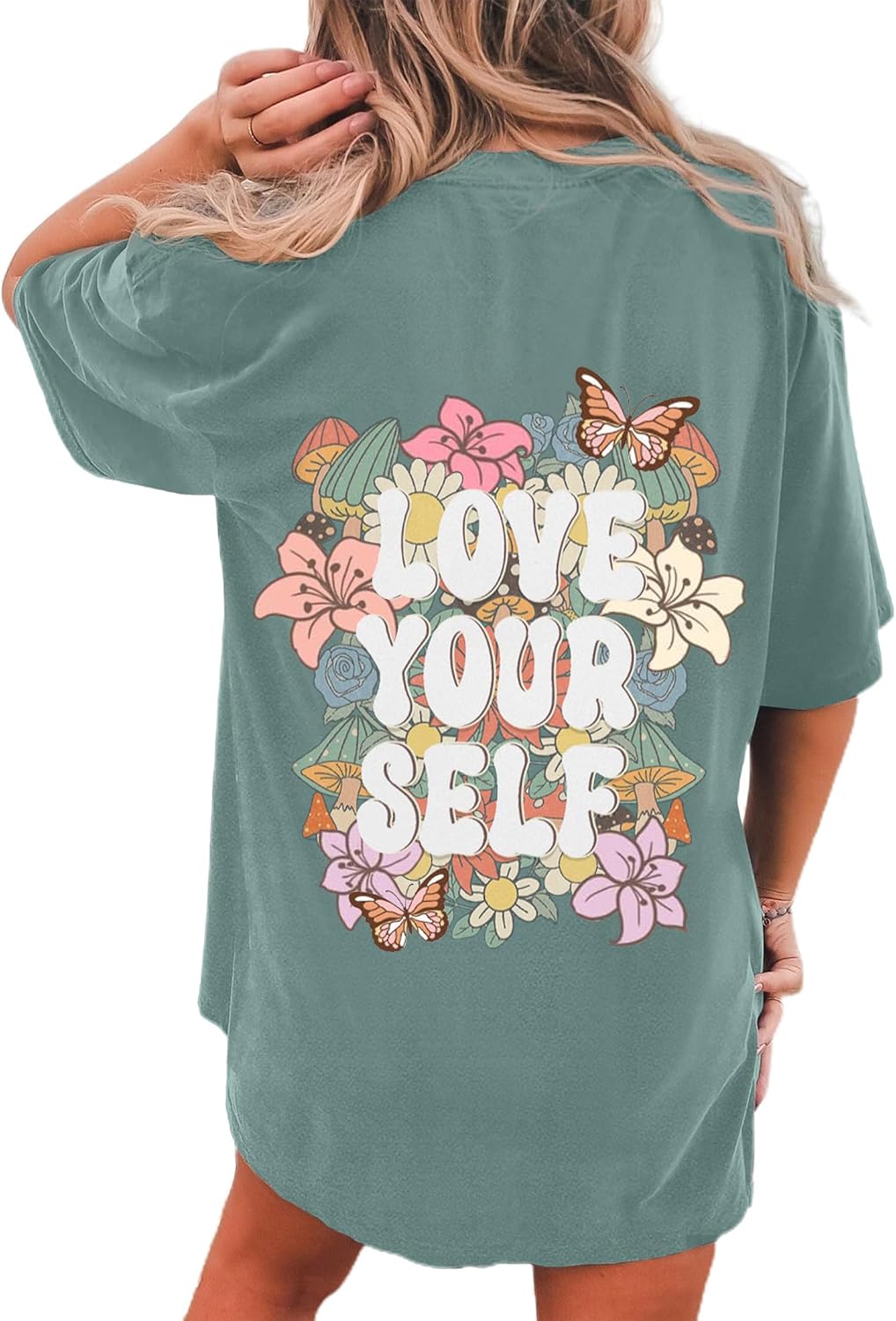 CSDAJIO Women’s Trendy Oversized T Shirt Graphic Tee Crewneck Short Sleeve Loose Cute Going Out Summer Tops