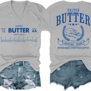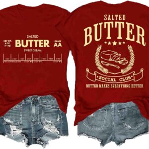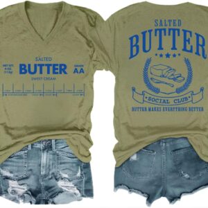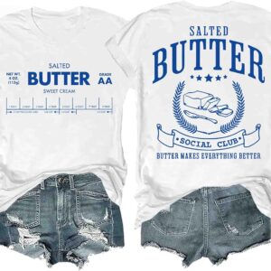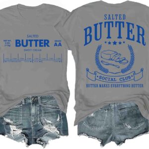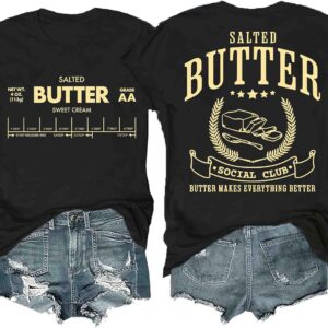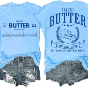 Funny Butter Printed Graphic T-Shirt for Women Salted Butter Foodie Baking Tee Cute Vintage Casual Summer Top quantity
