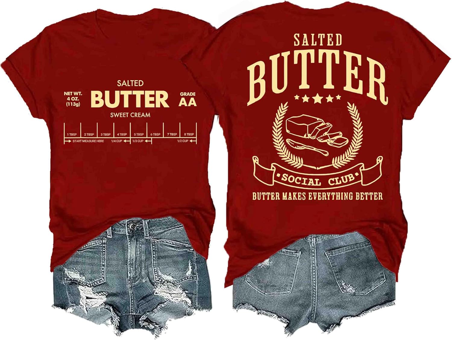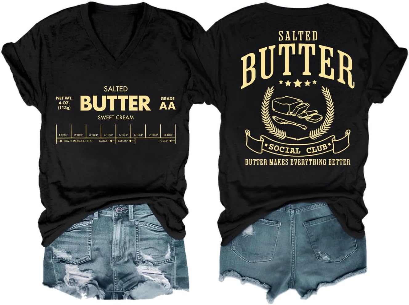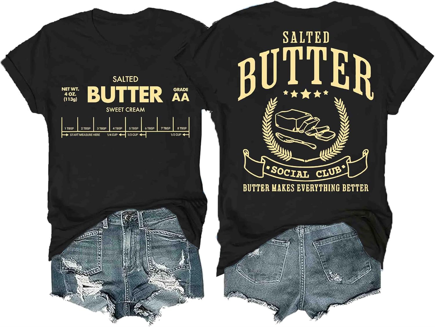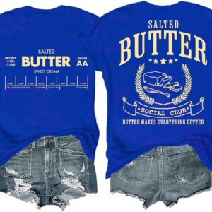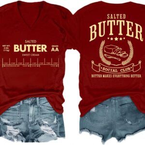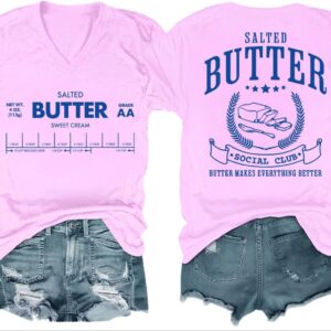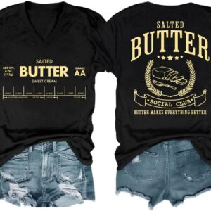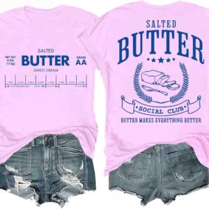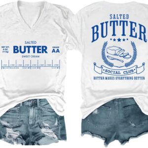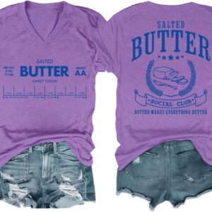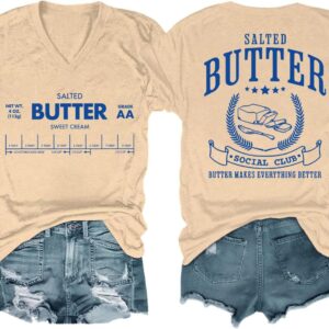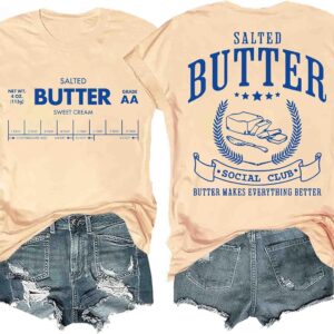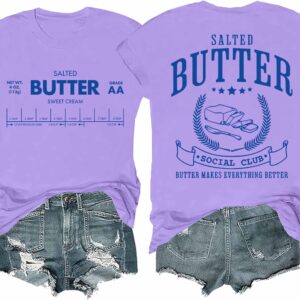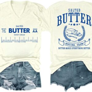 Funny Butter Printed Graphic T-Shirt for Women Salted Butter Foodie Baking Tee Cute Vintage Casual Summer Top