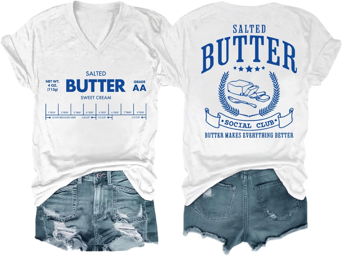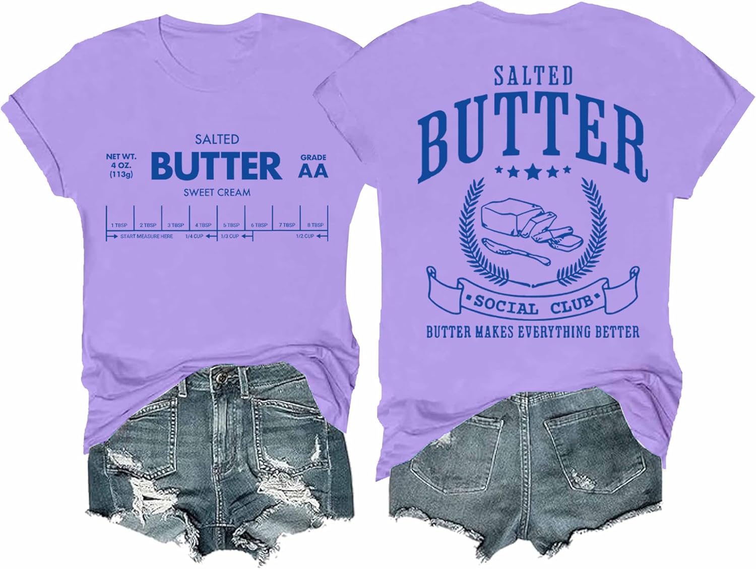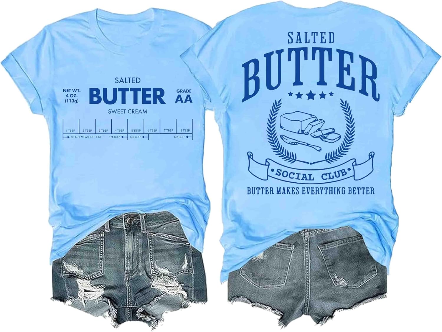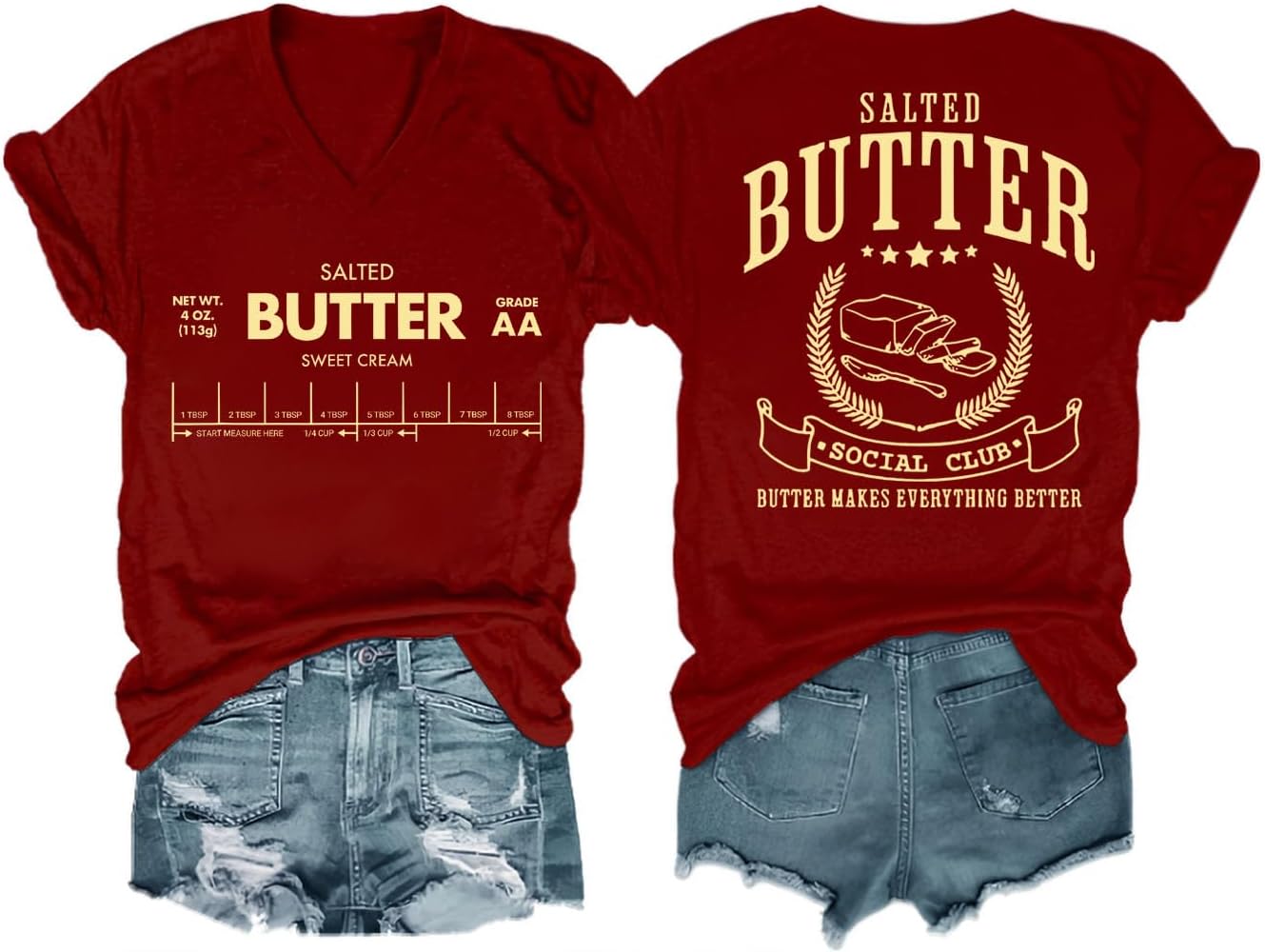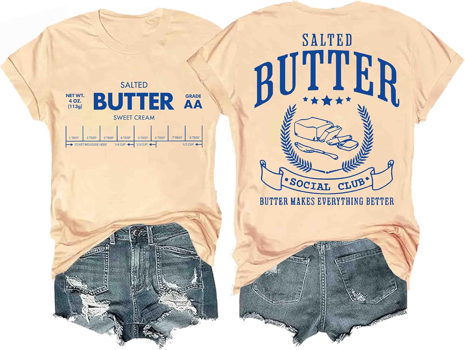 Funny Butter Printed Graphic T-Shirt for Women Salted Butter Foodie Baking Tee Cute Vintage Casual Summer Top