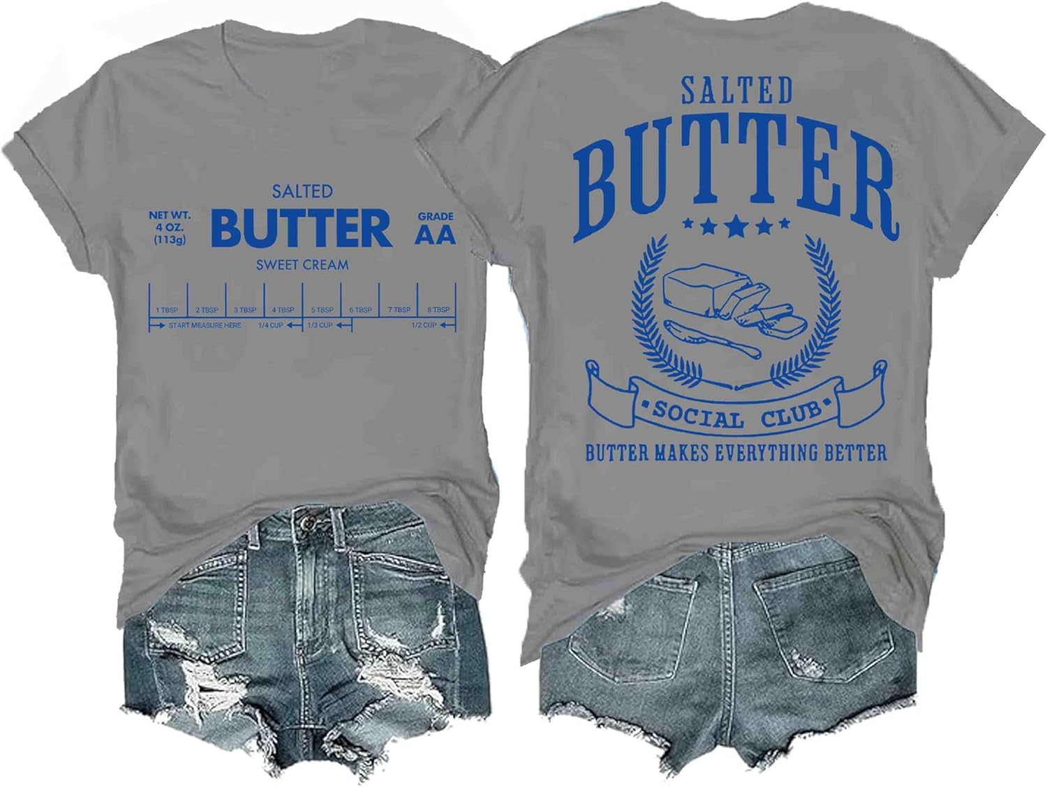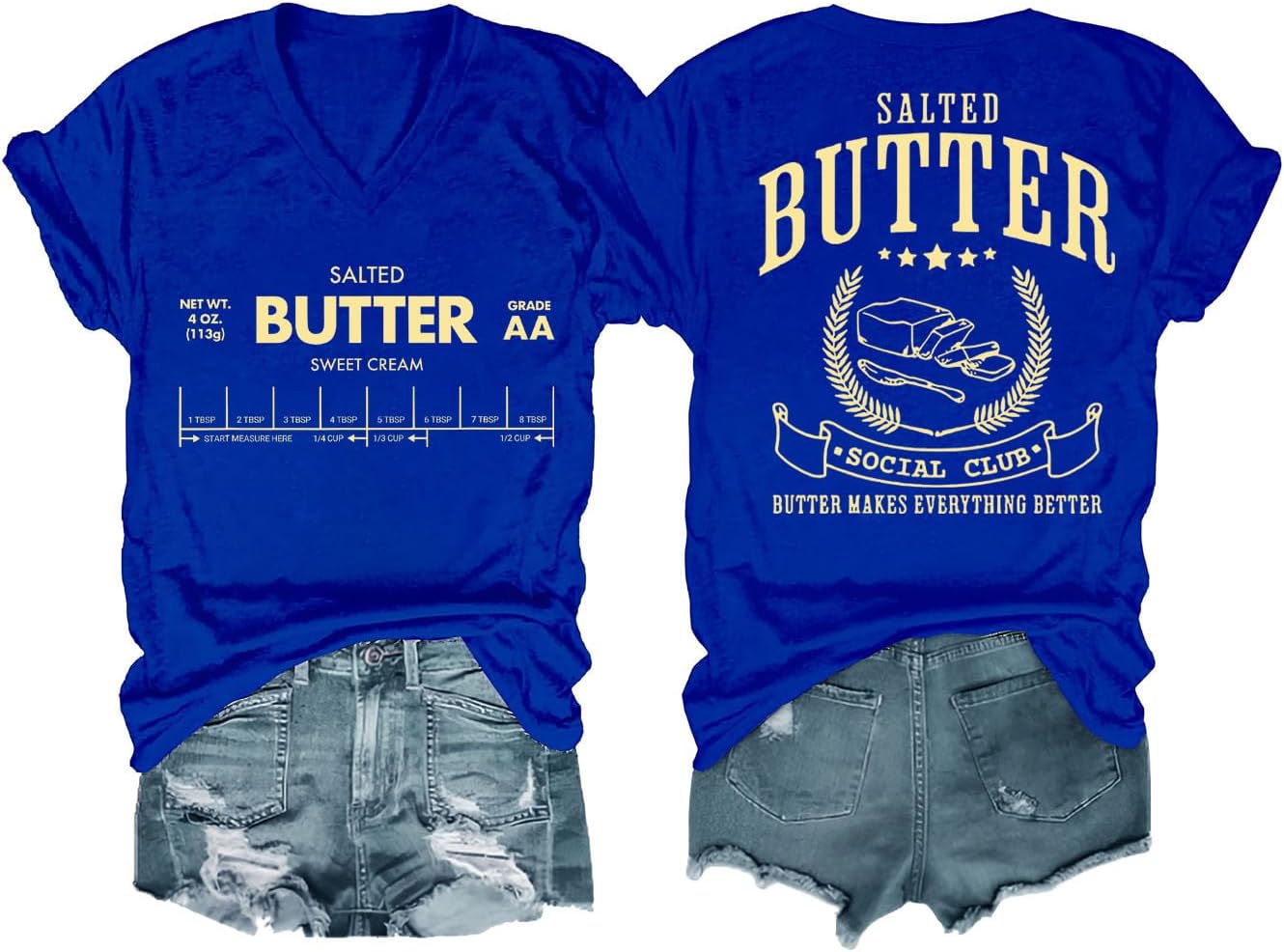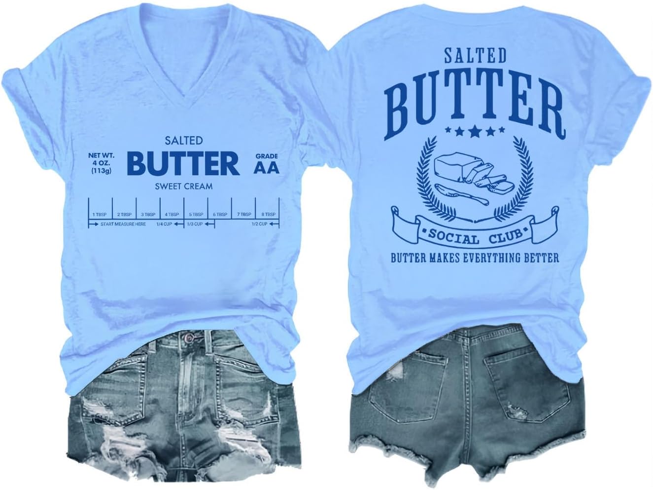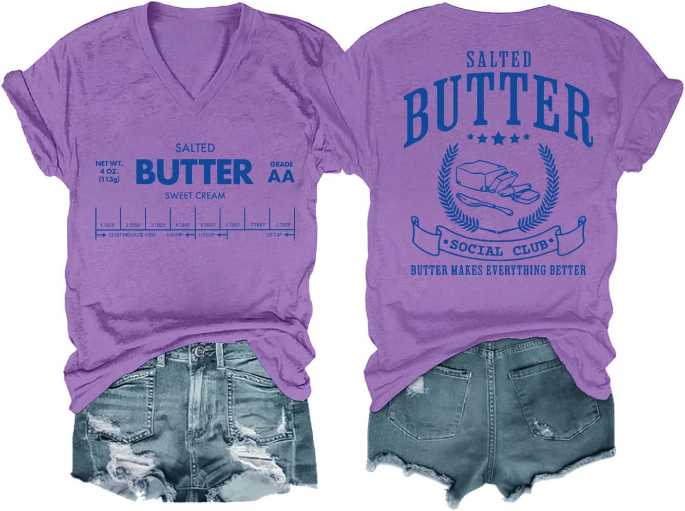 Funny Butter Printed Graphic T-Shirt for Women Salted Butter Foodie Baking Tee Cute Vintage Casual Summer Top