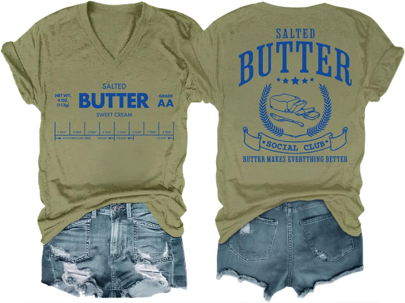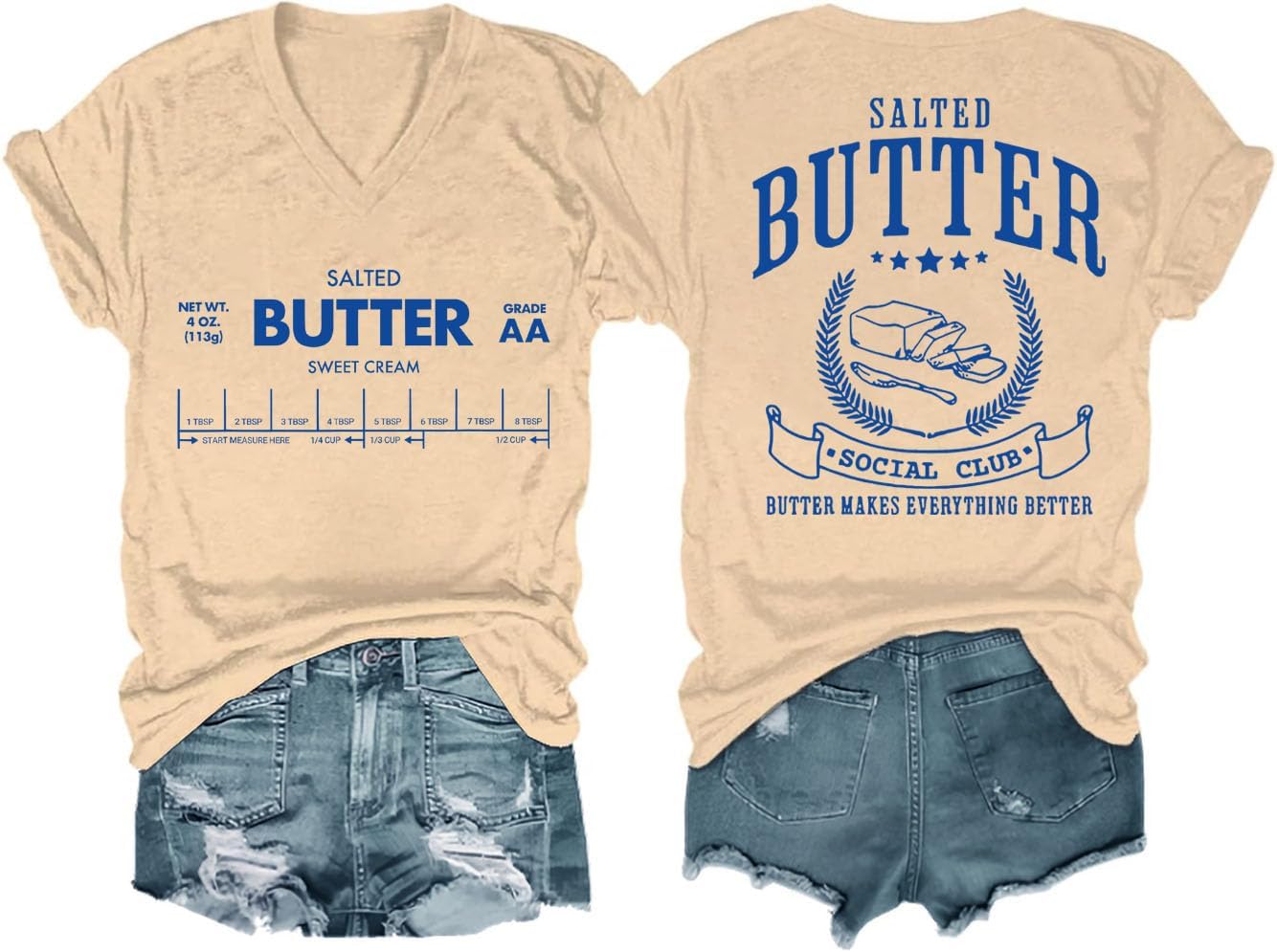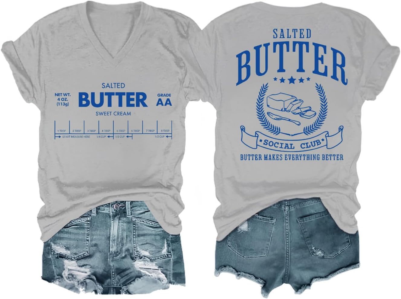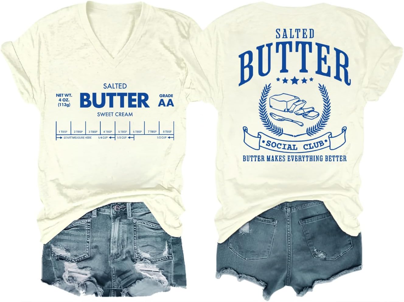 Funny Butter Printed Graphic T-Shirt for Women Salted Butter Foodie Baking Tee Cute Vintage Casual Summer Top