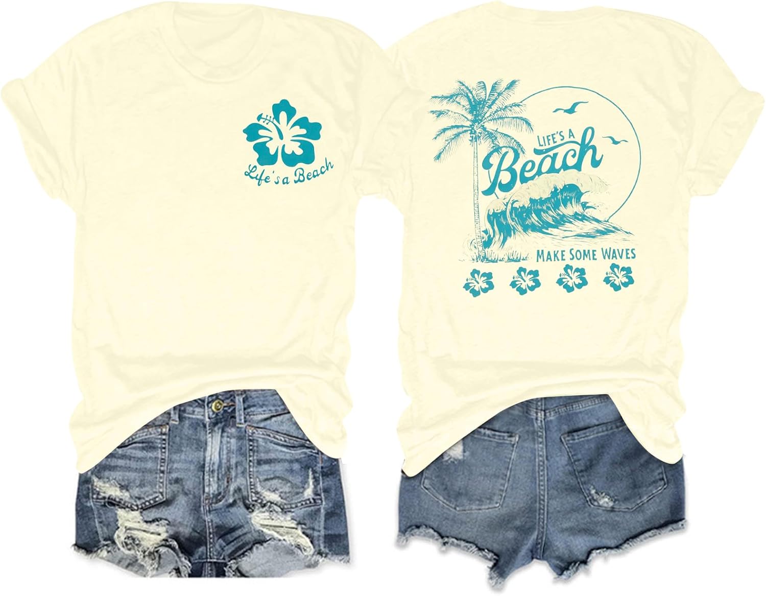 Graphic Tees Women Oversized T-Shirts: Summer Hawaiian Beach Tops Shirts Hawaii Tropical Beachy Short Sleeve Outfit quantity
