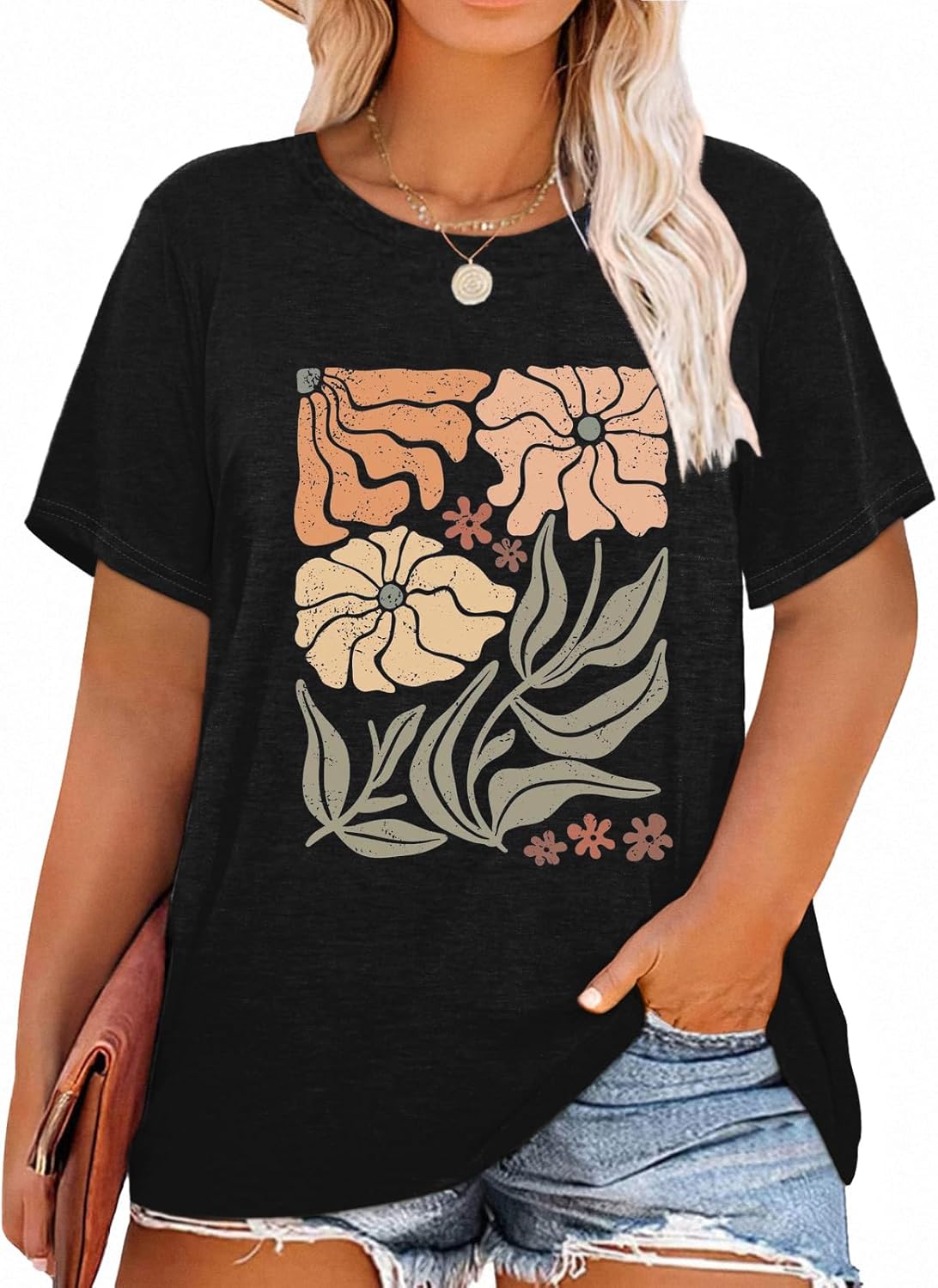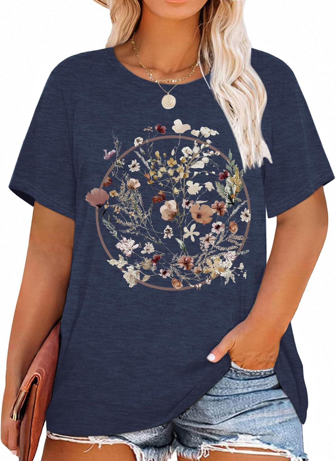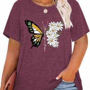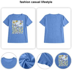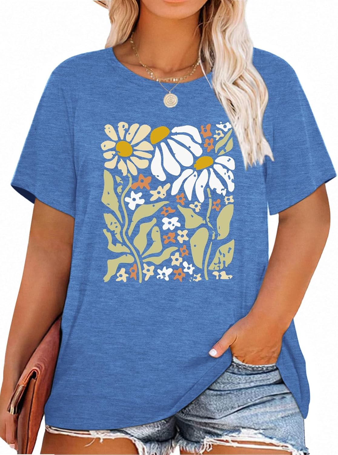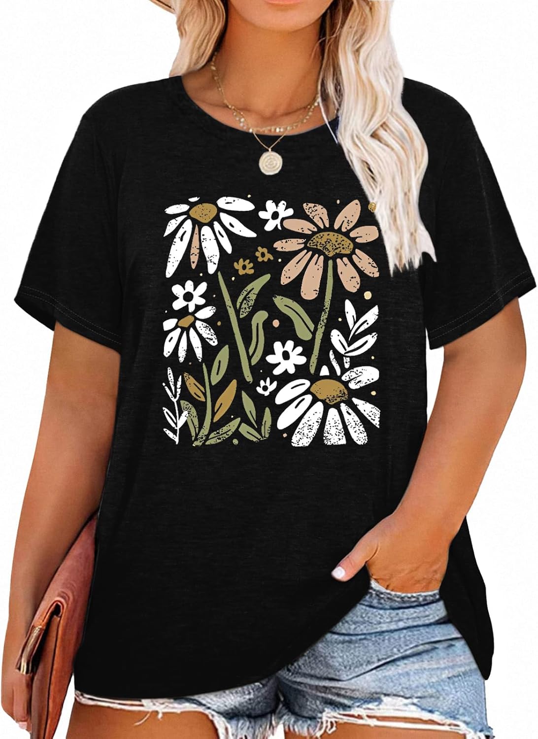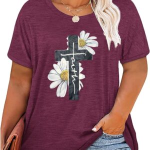 Faith Shirs for Plus Size Women Short Sleeve Daisy Flowers Graphic O Neck Cute Tee