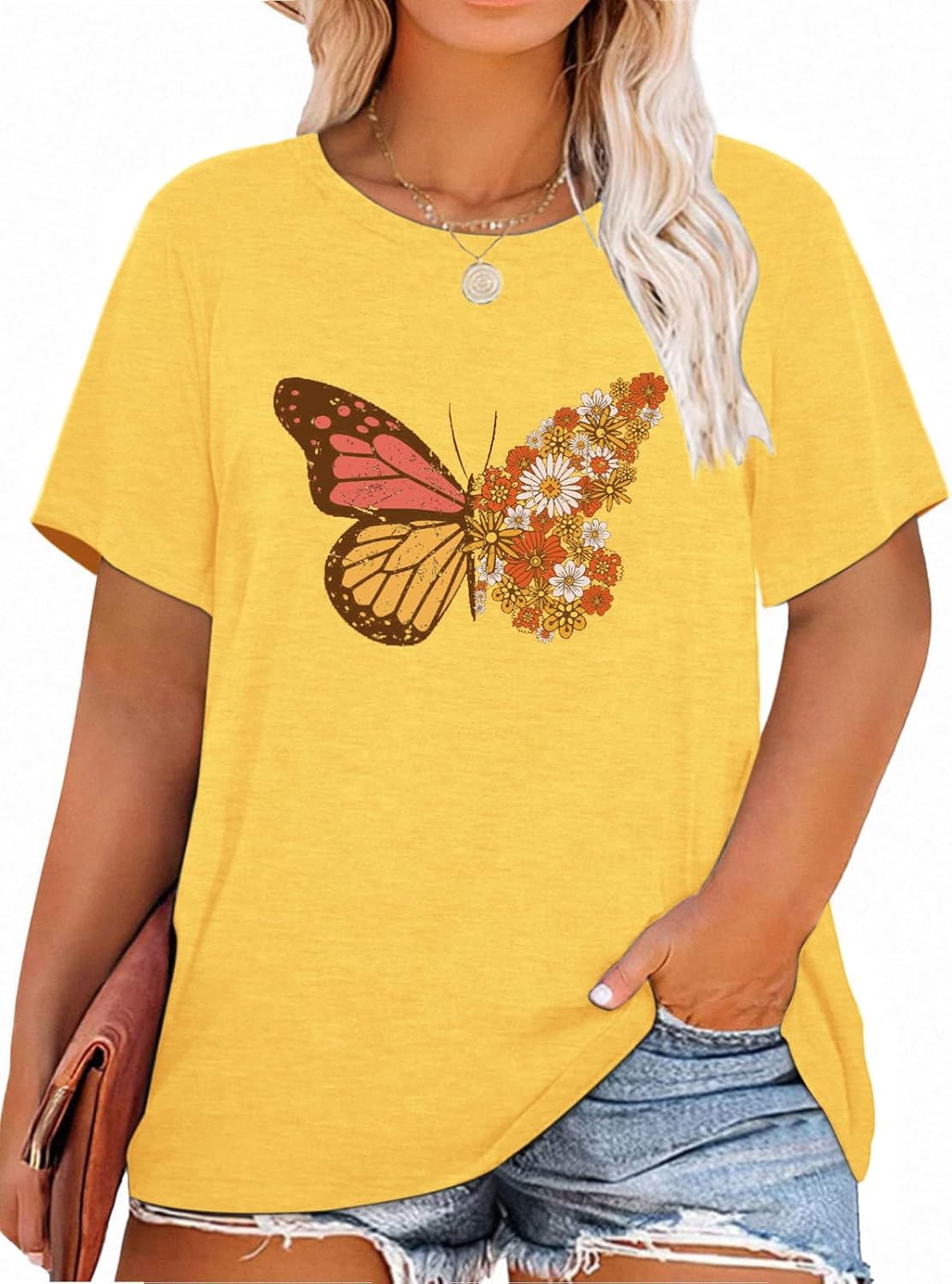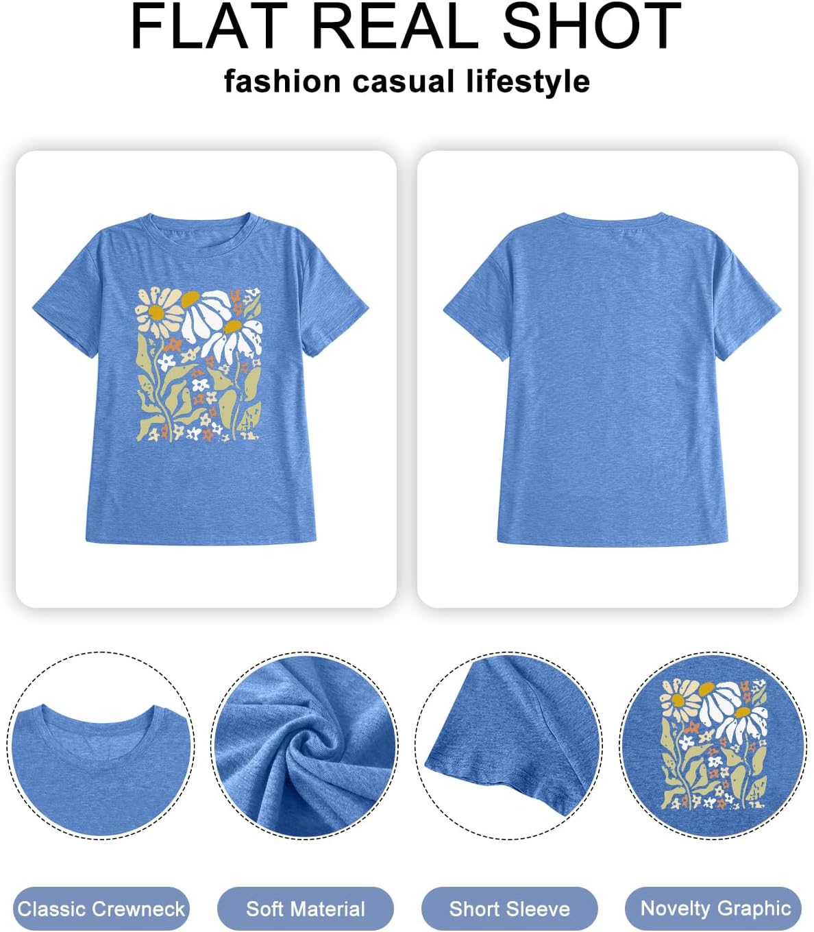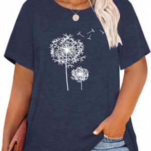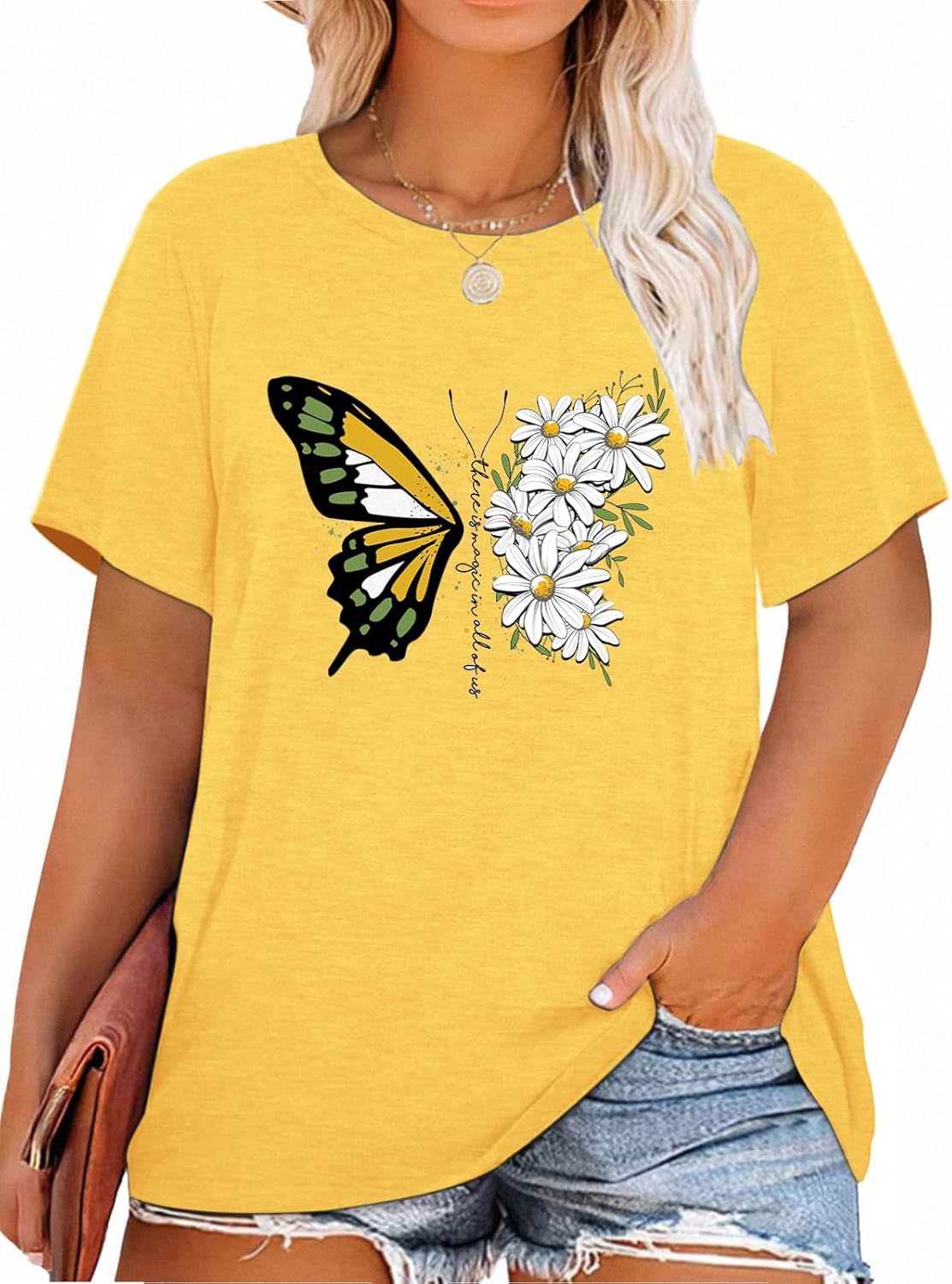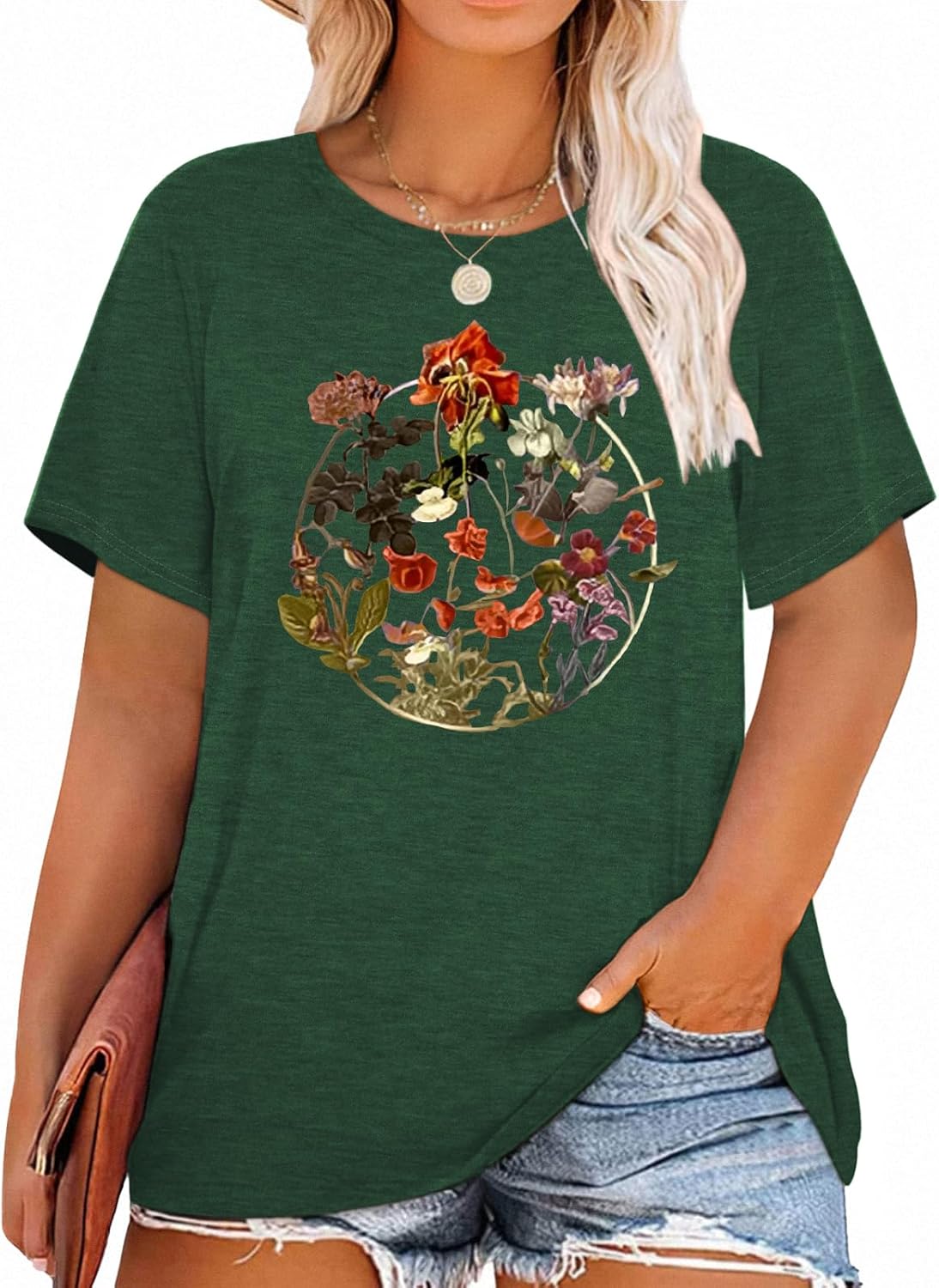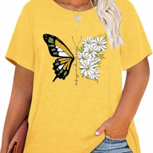 Faith Shirs for Plus Size Women Short Sleeve Daisy Flowers Graphic O Neck Cute Tee