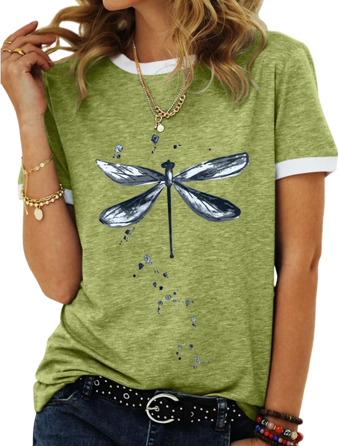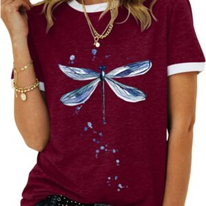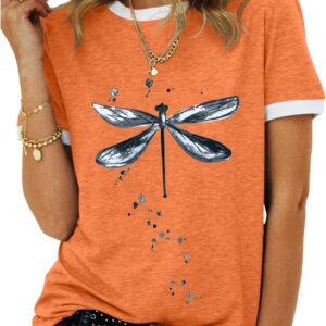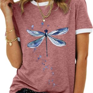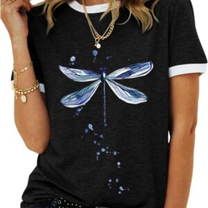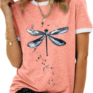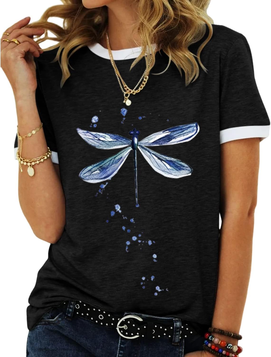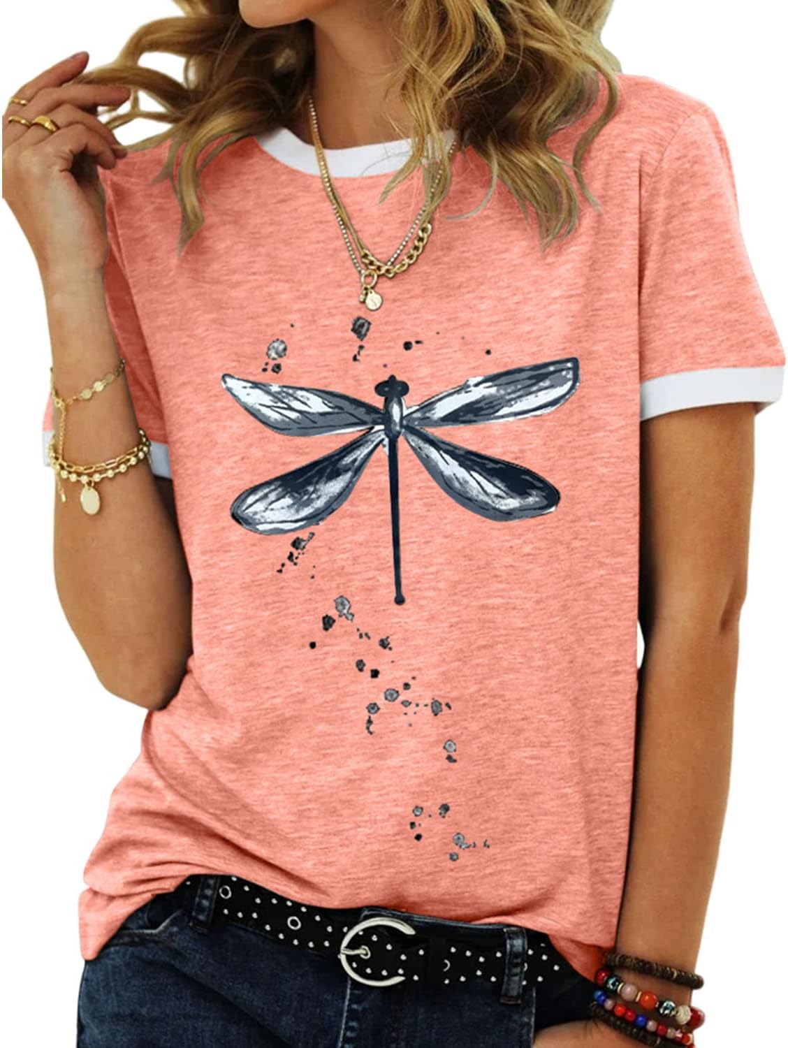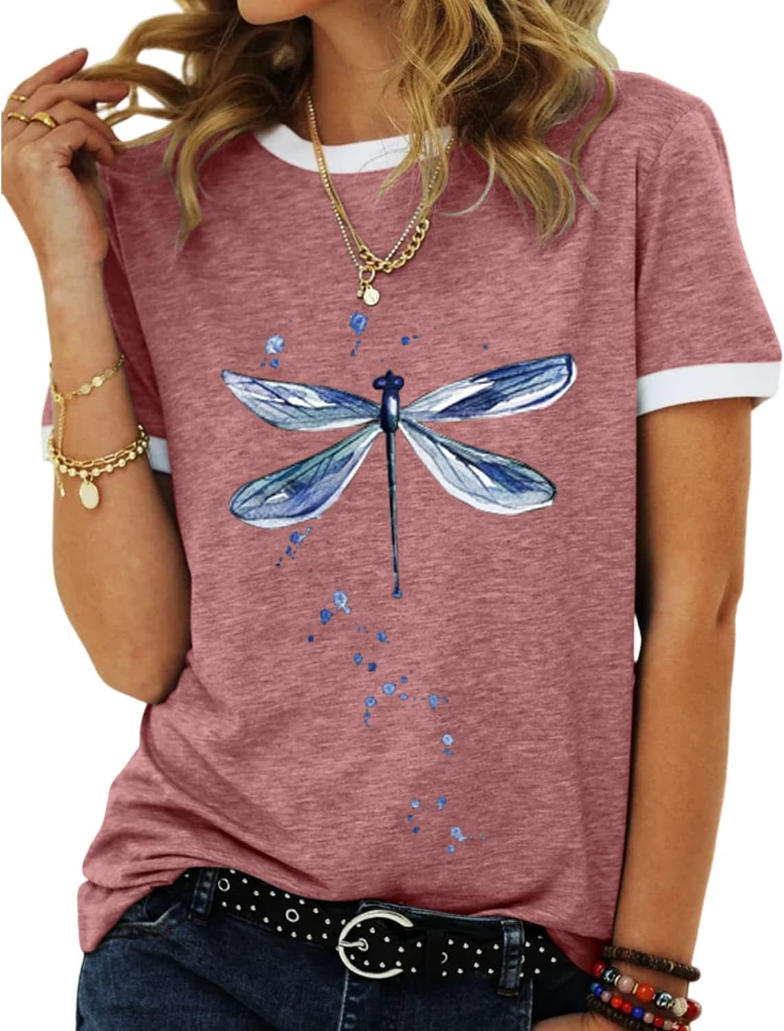 JNIFULI Women’s Graphic Tees Casual Summer Funny Dragonfly Printed Short Sleeve Cute T Shirts Tops