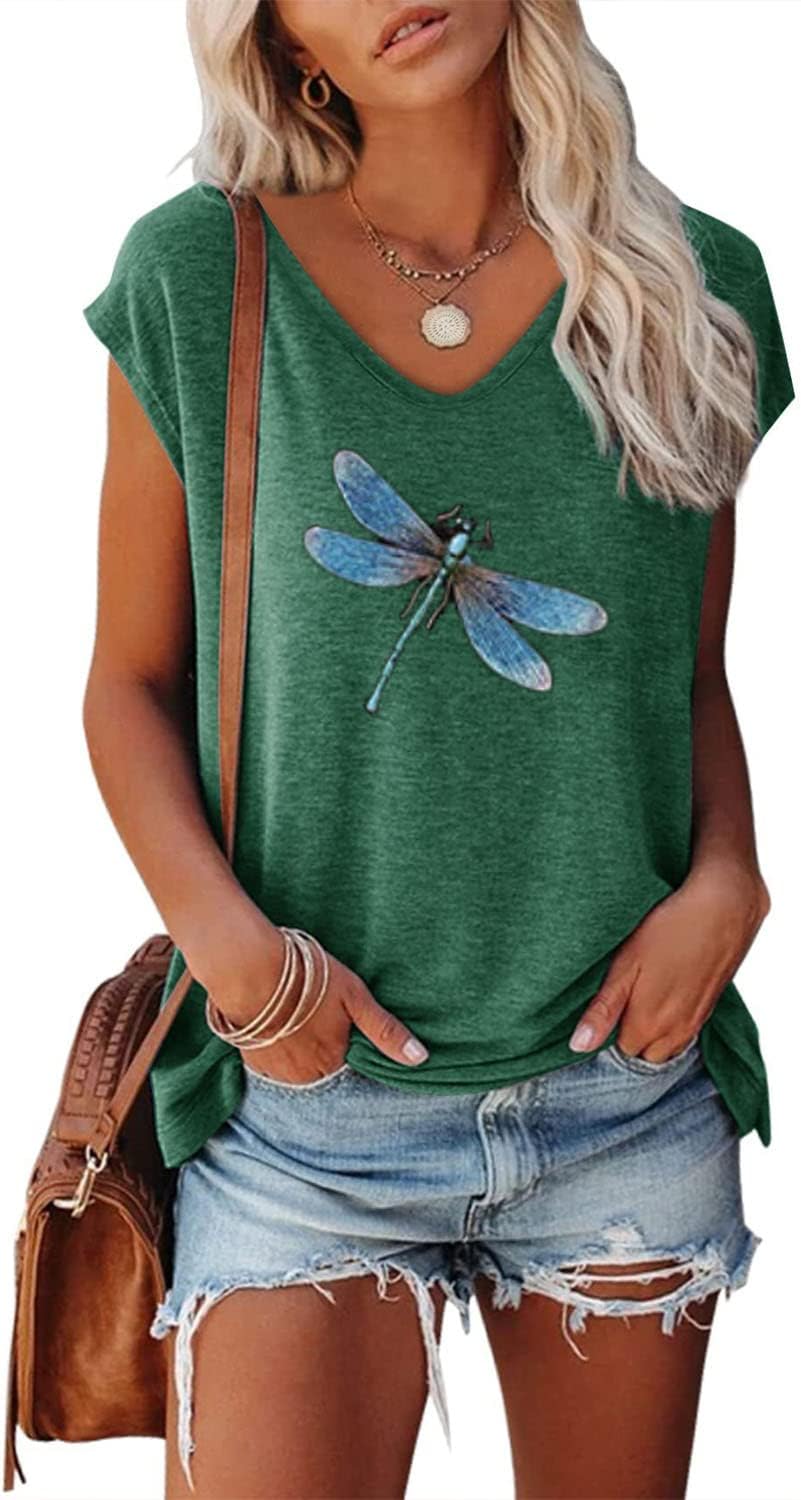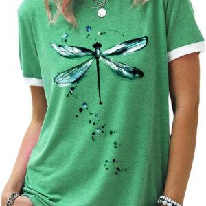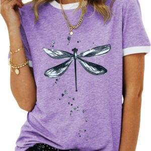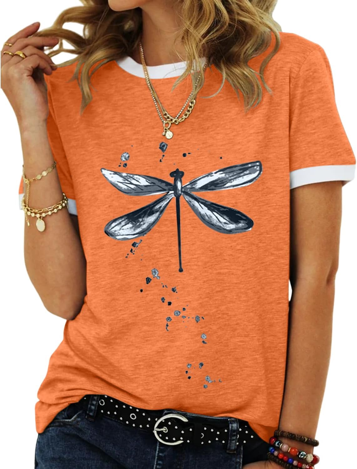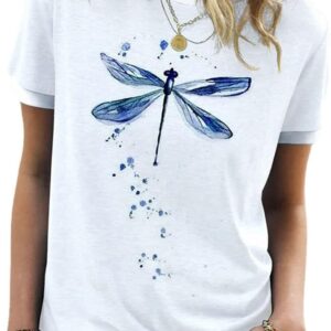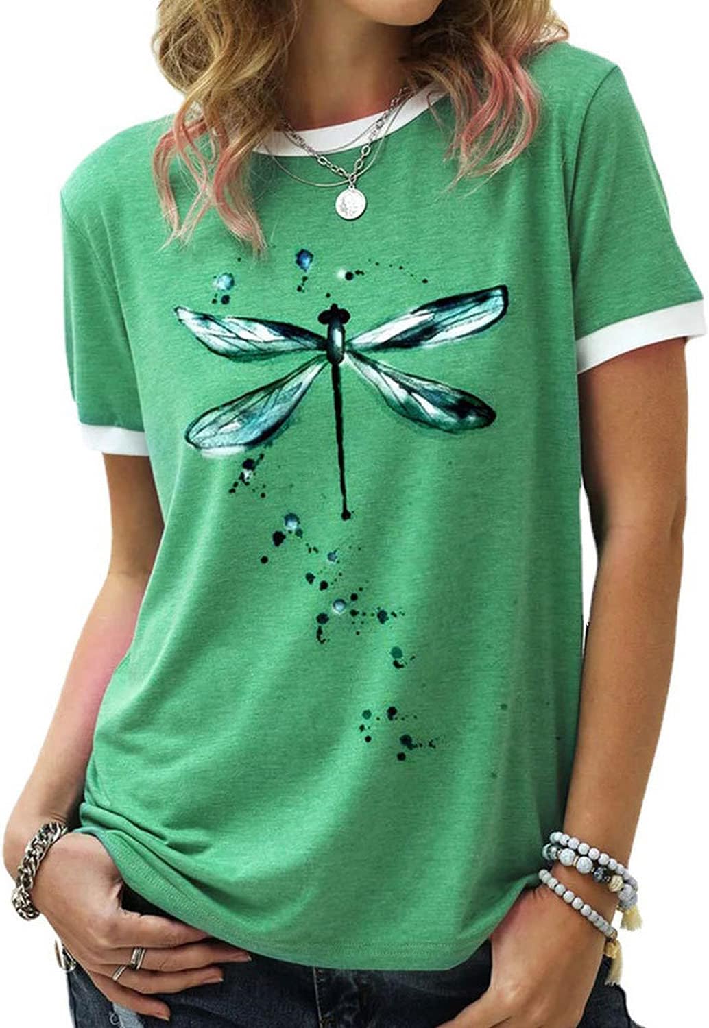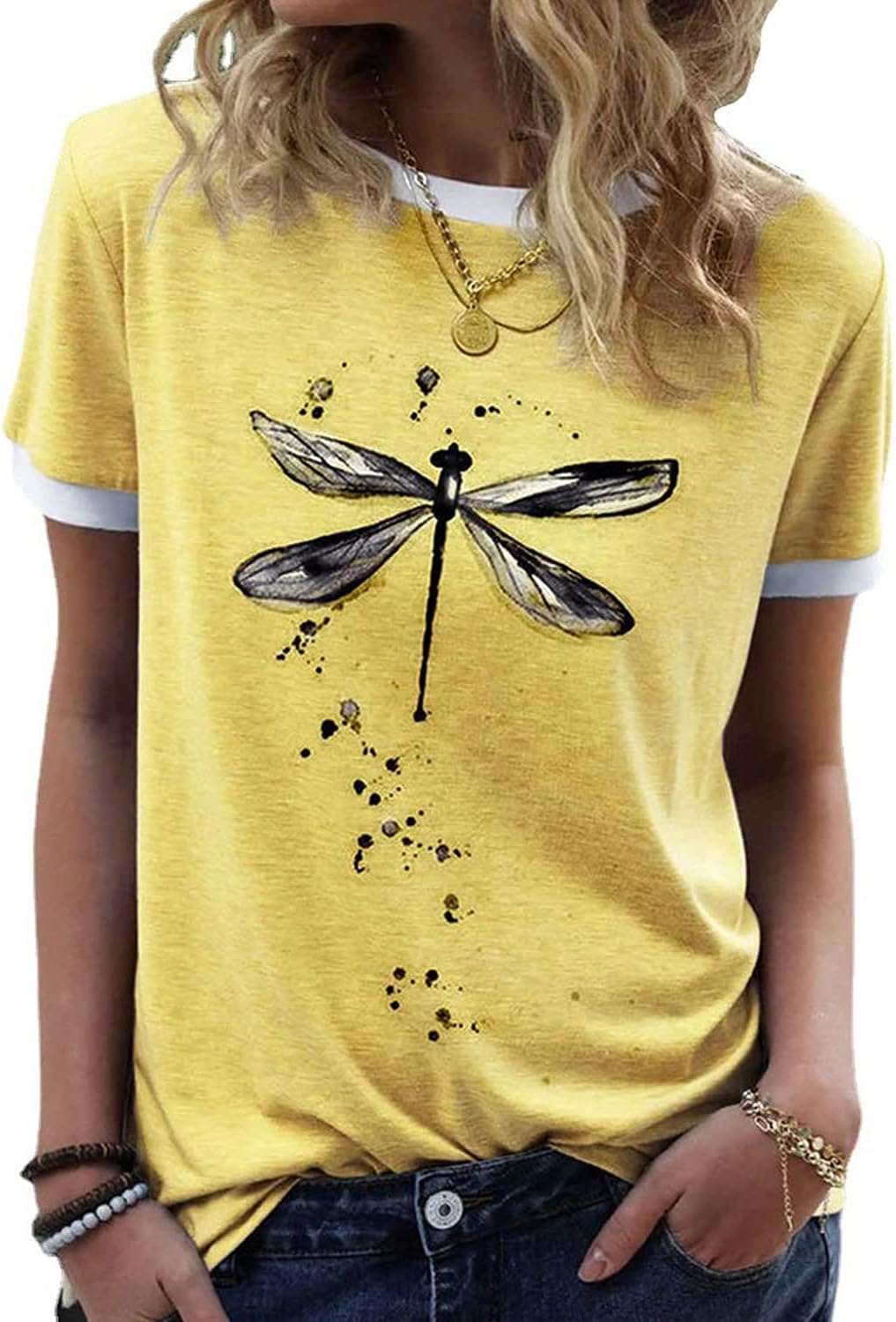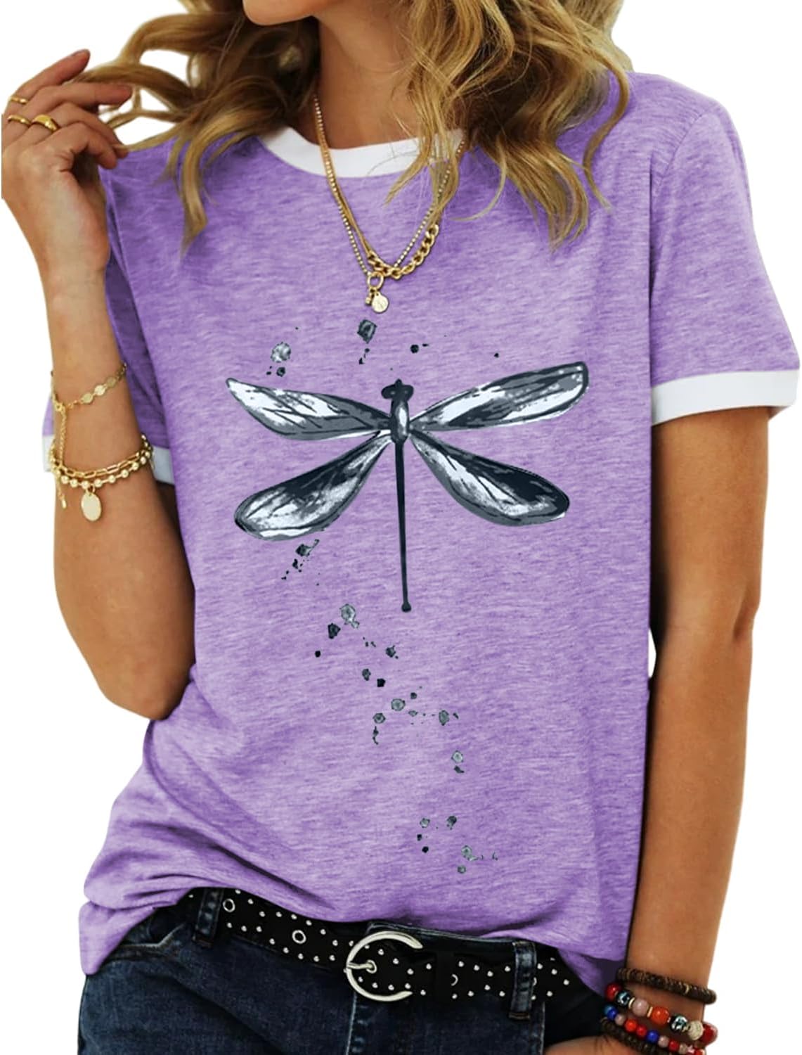JNIFULI Women’s Graphic Tees Casual Summer Funny Dragonfly Printed Short Sleeve Cute T Shirts Tops