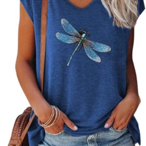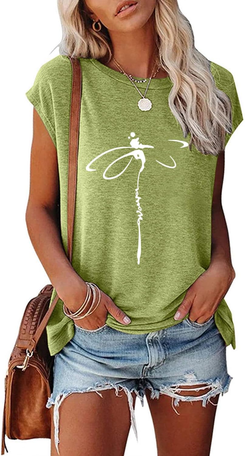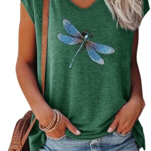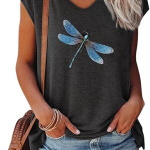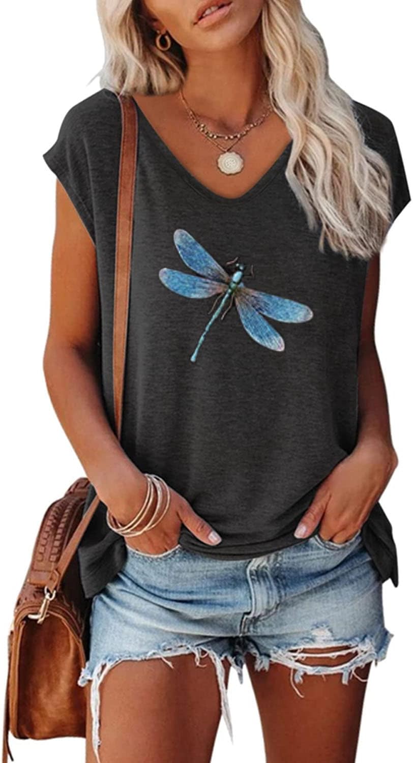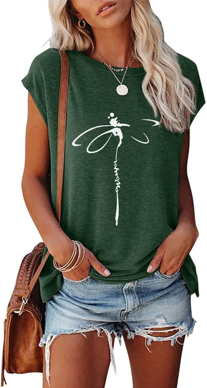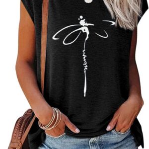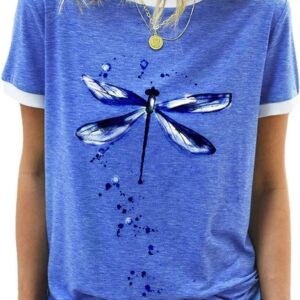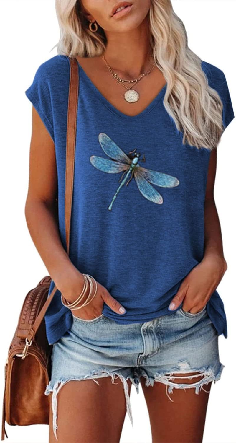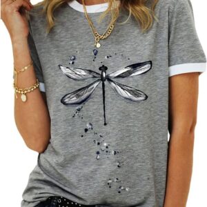 JNIFULI Women’s Graphic Tees Casual Summer Funny Dragonfly Printed Short Sleeve Cute T Shirts Tops