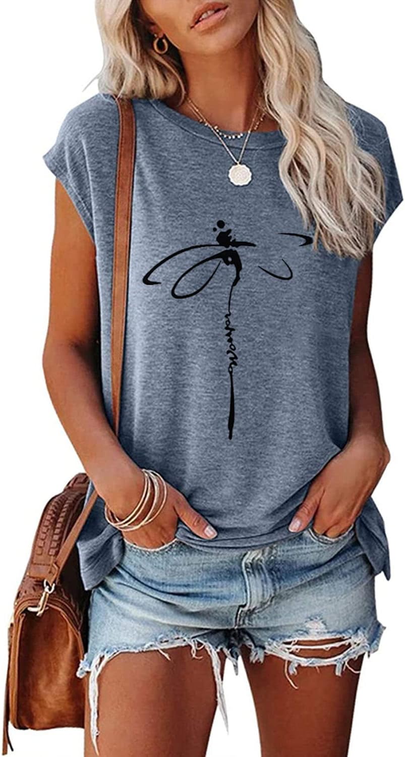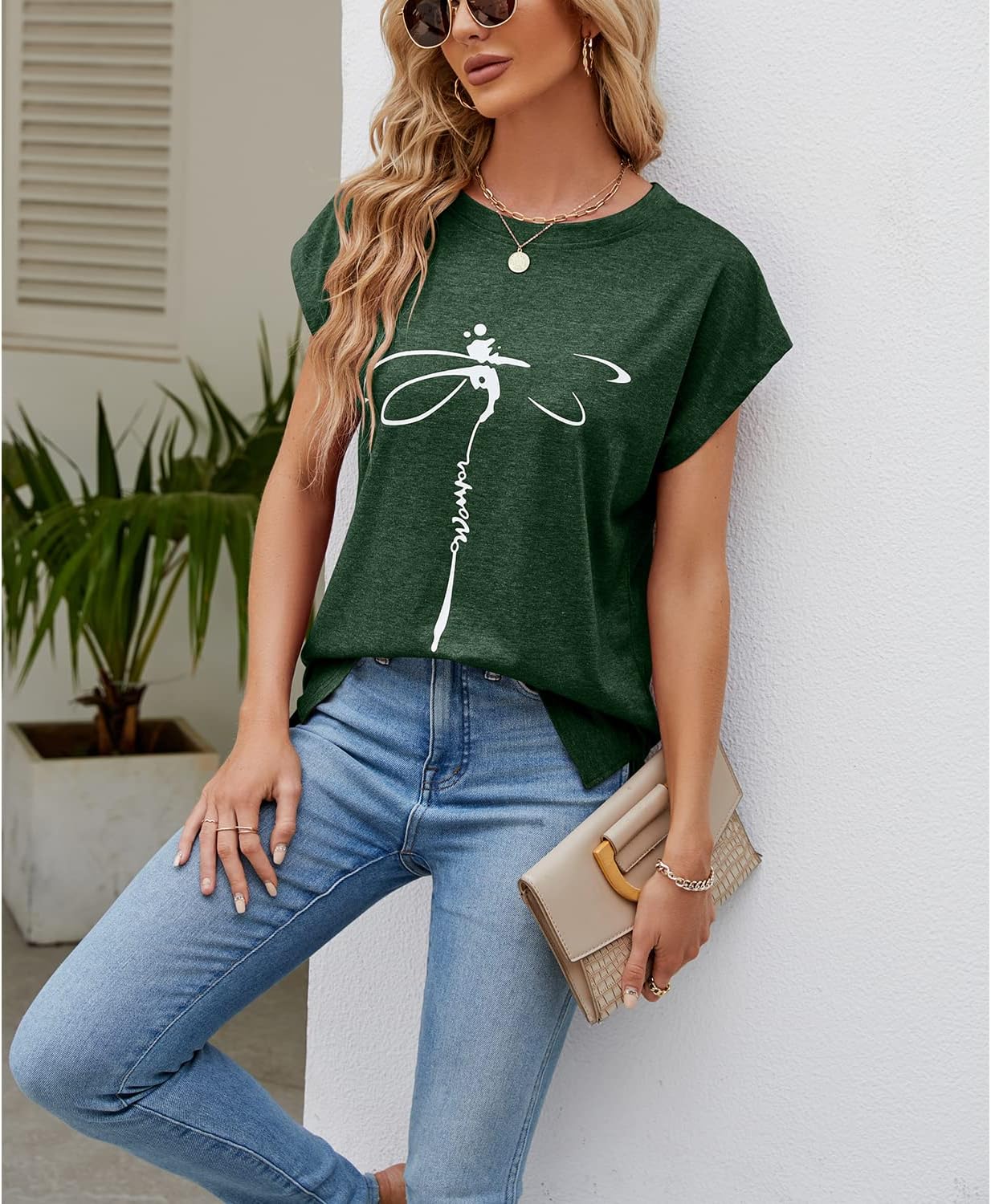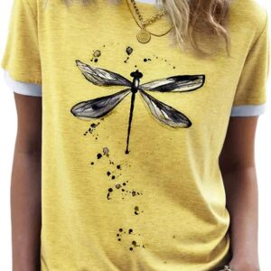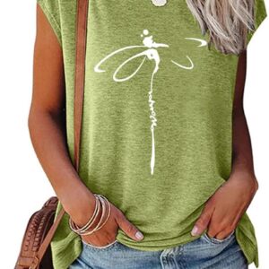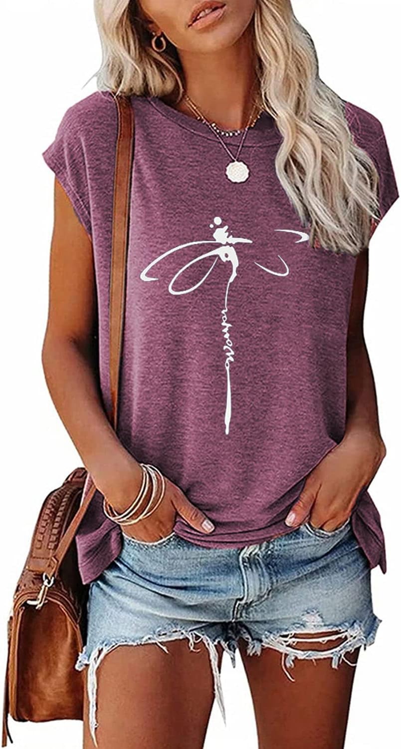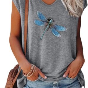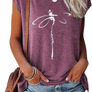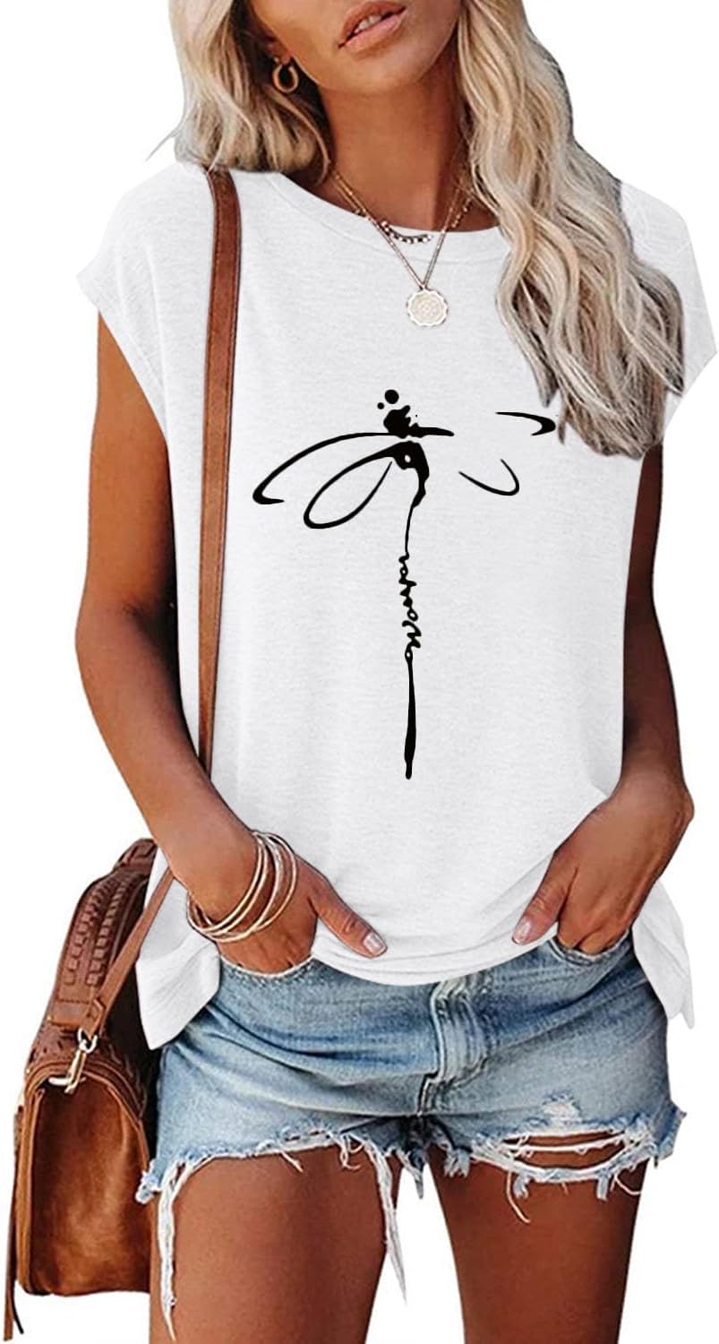 JNIFULI Women’s Graphic Tees Casual Summer Funny Dragonfly Printed Short Sleeve Cute T Shirts Tops