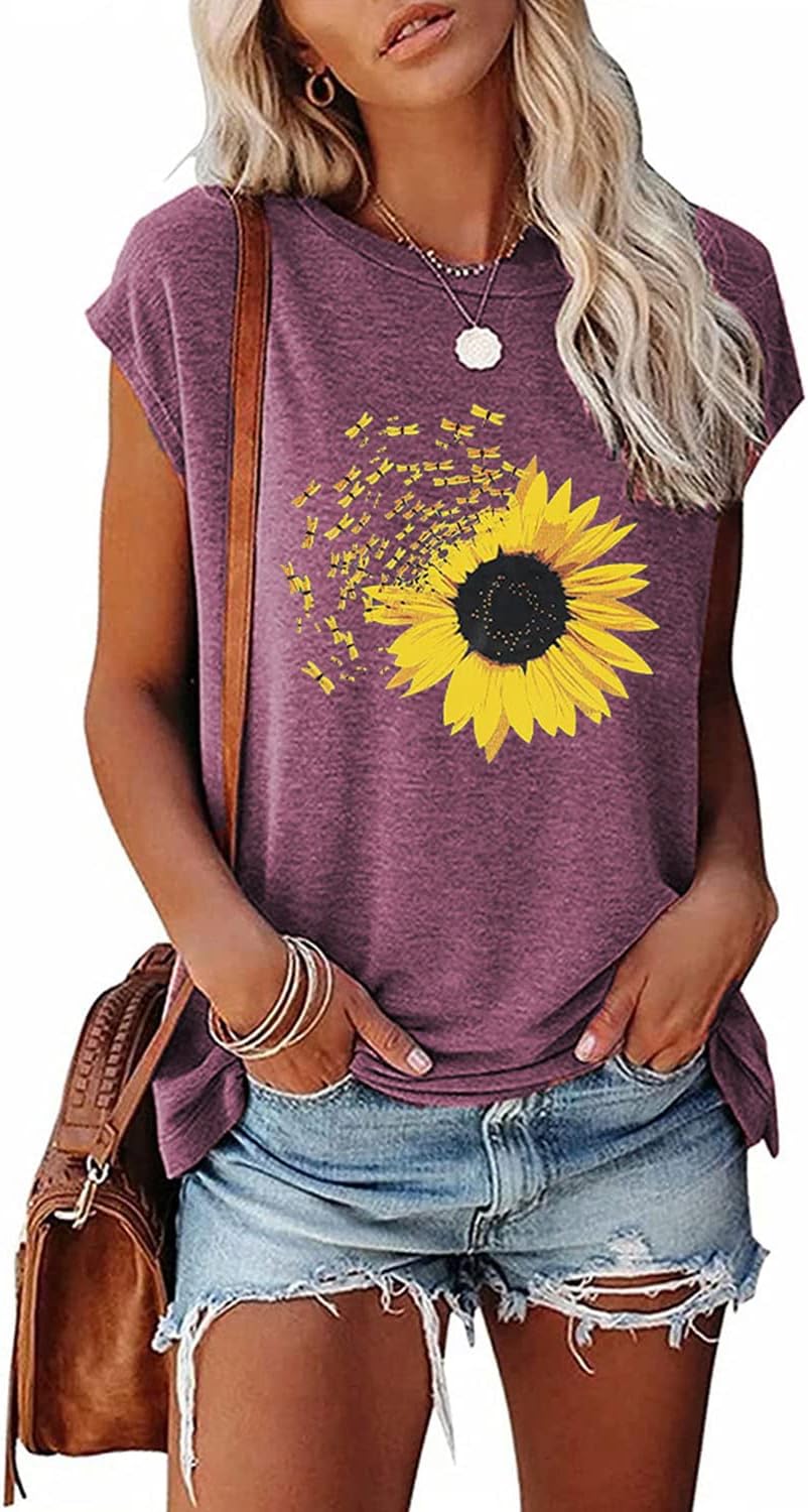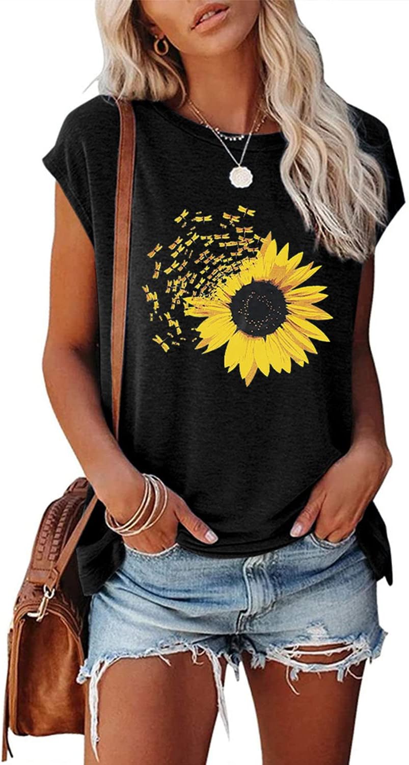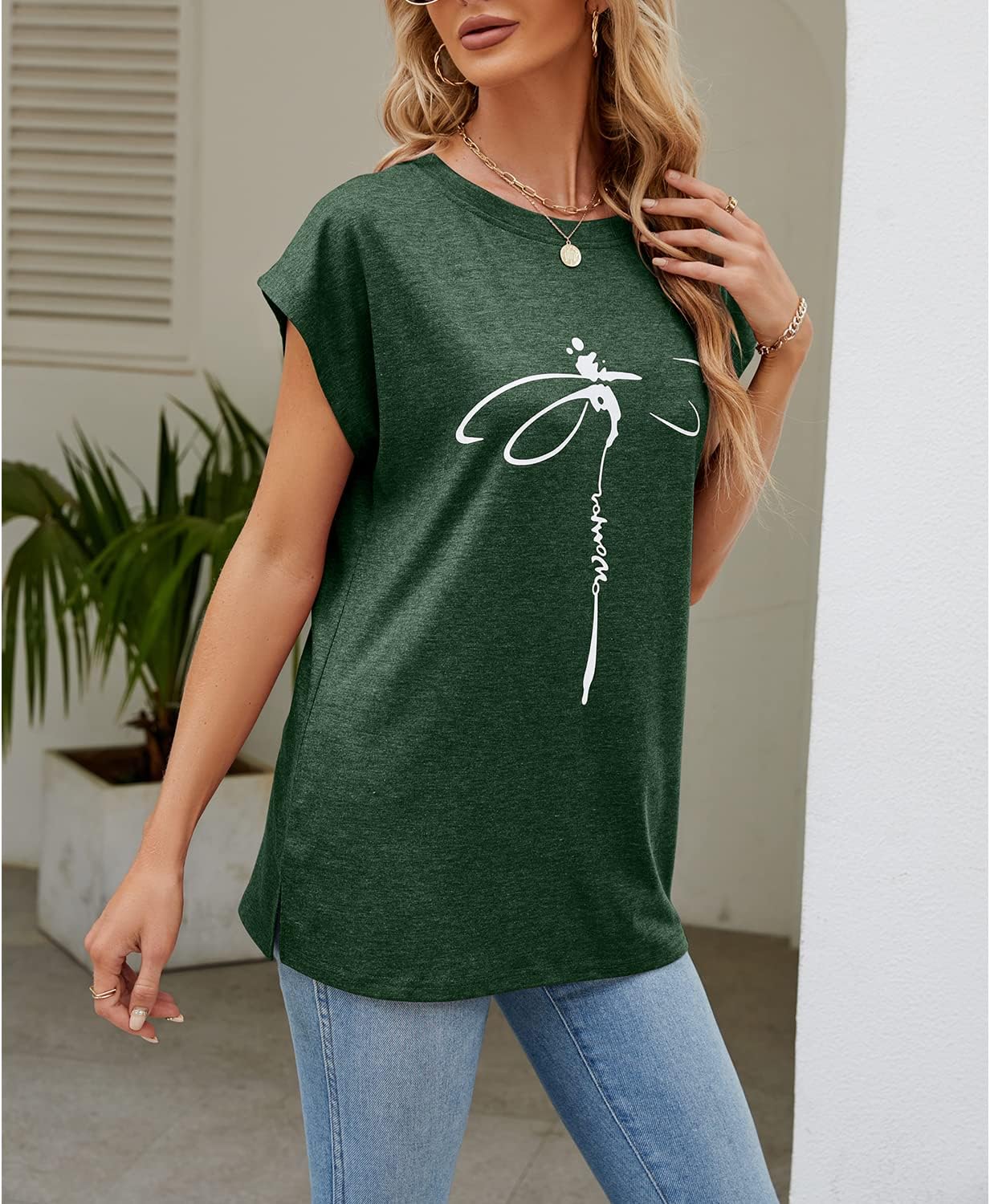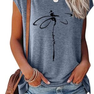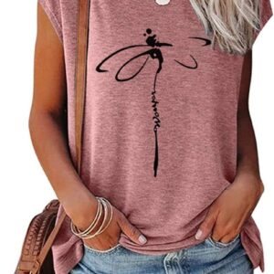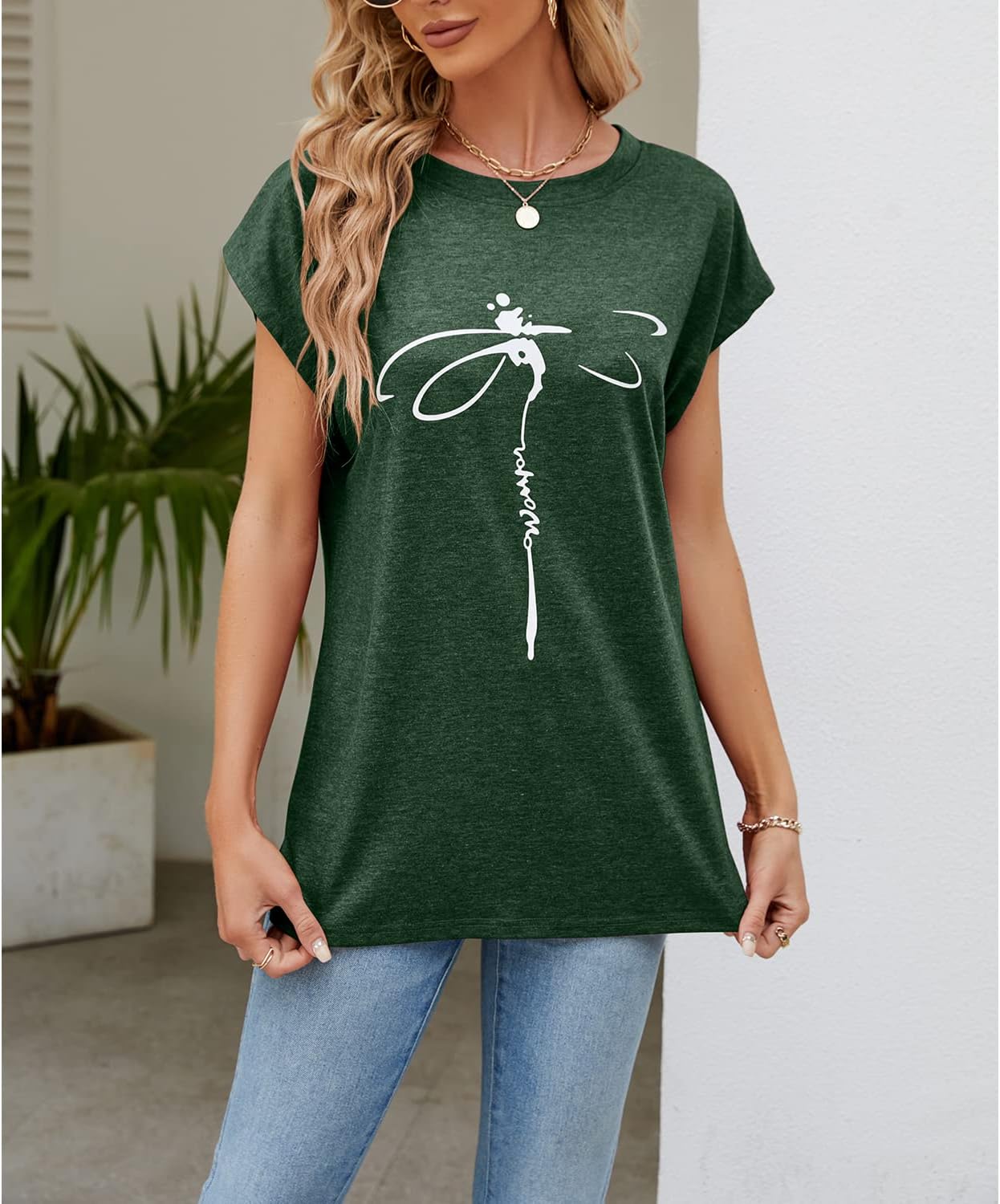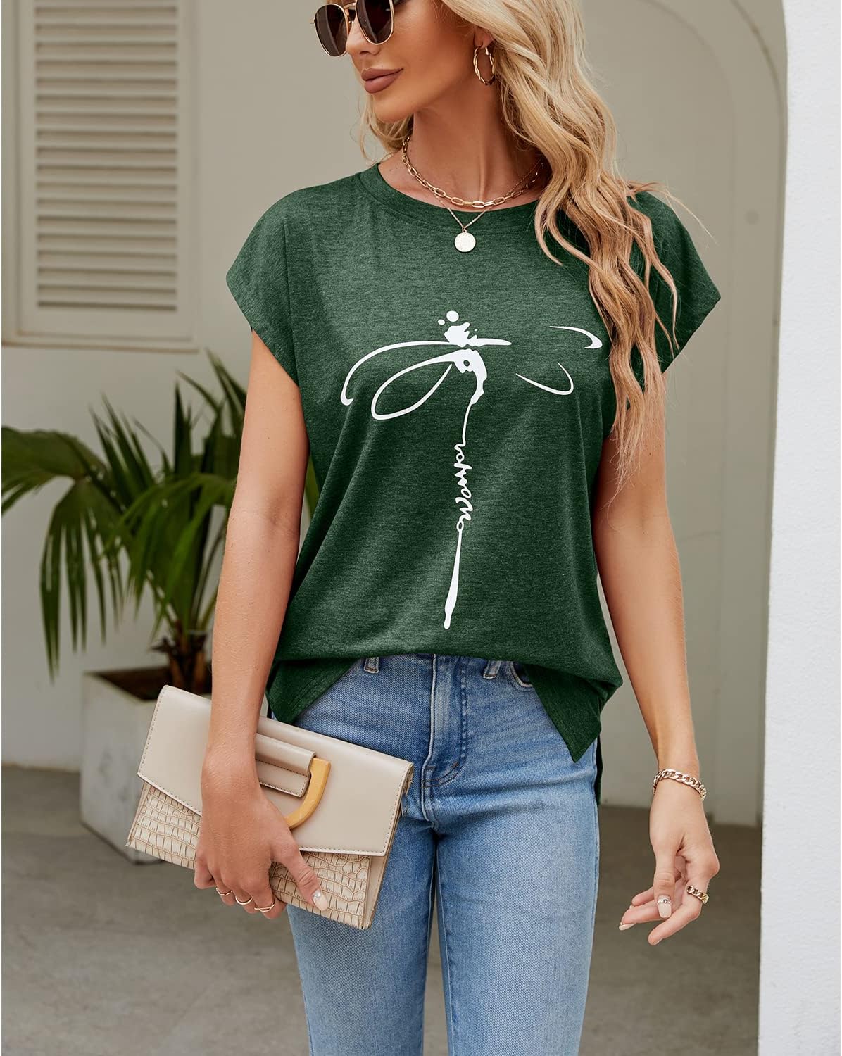 JNIFULI Women’s Graphic Tees Casual Summer Funny Dragonfly Printed Short Sleeve Cute T Shirts Tops