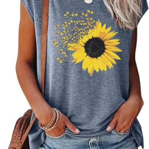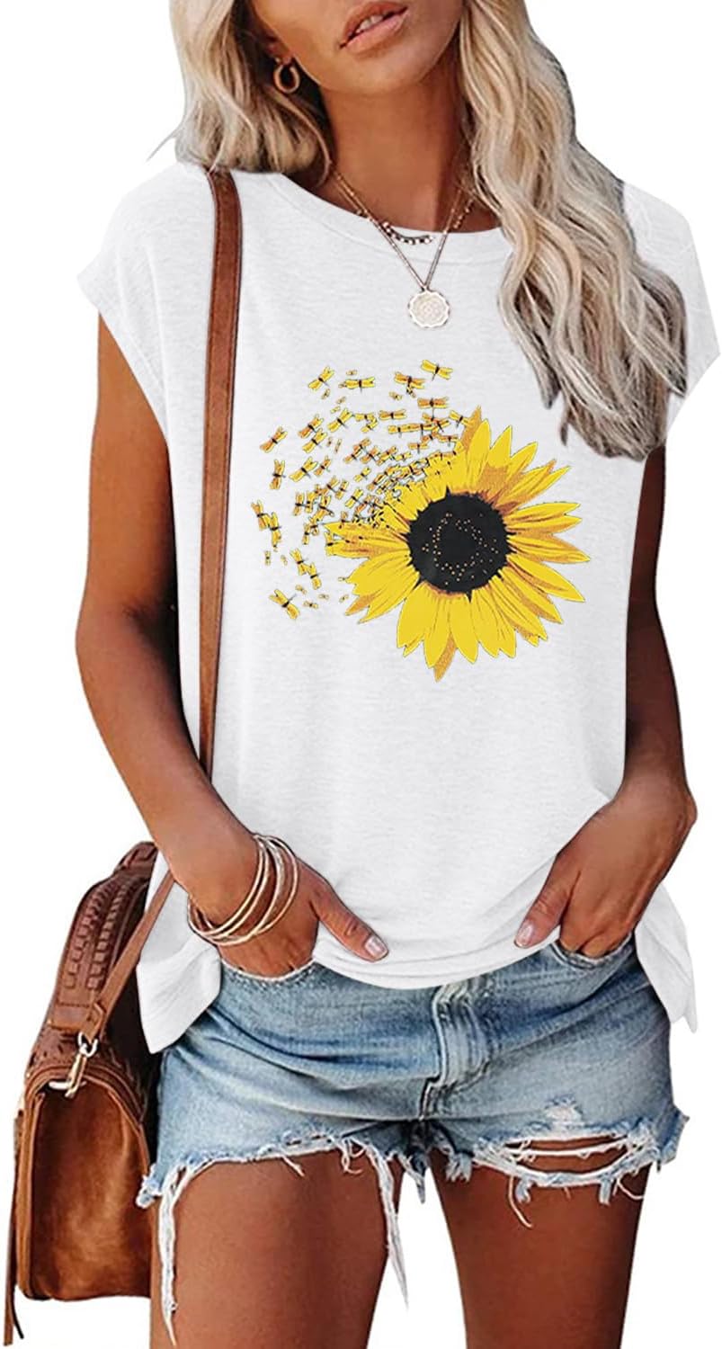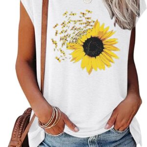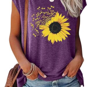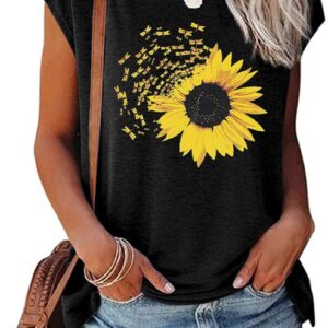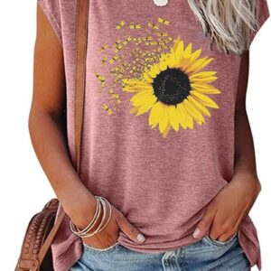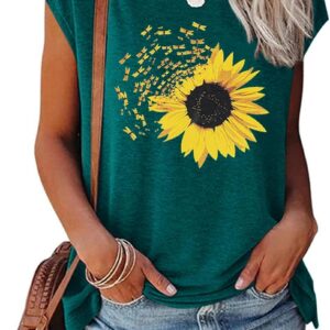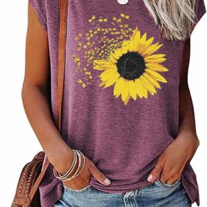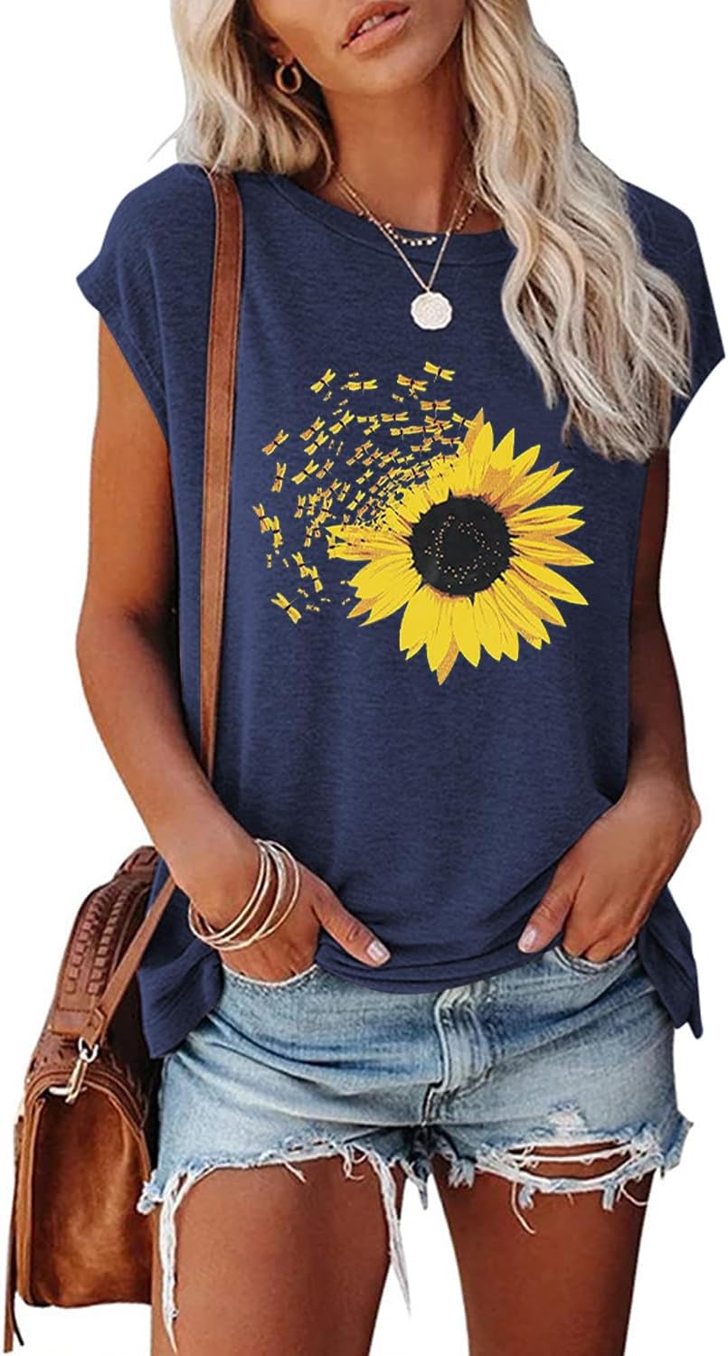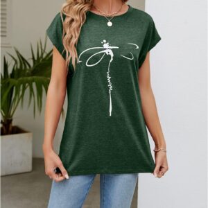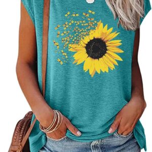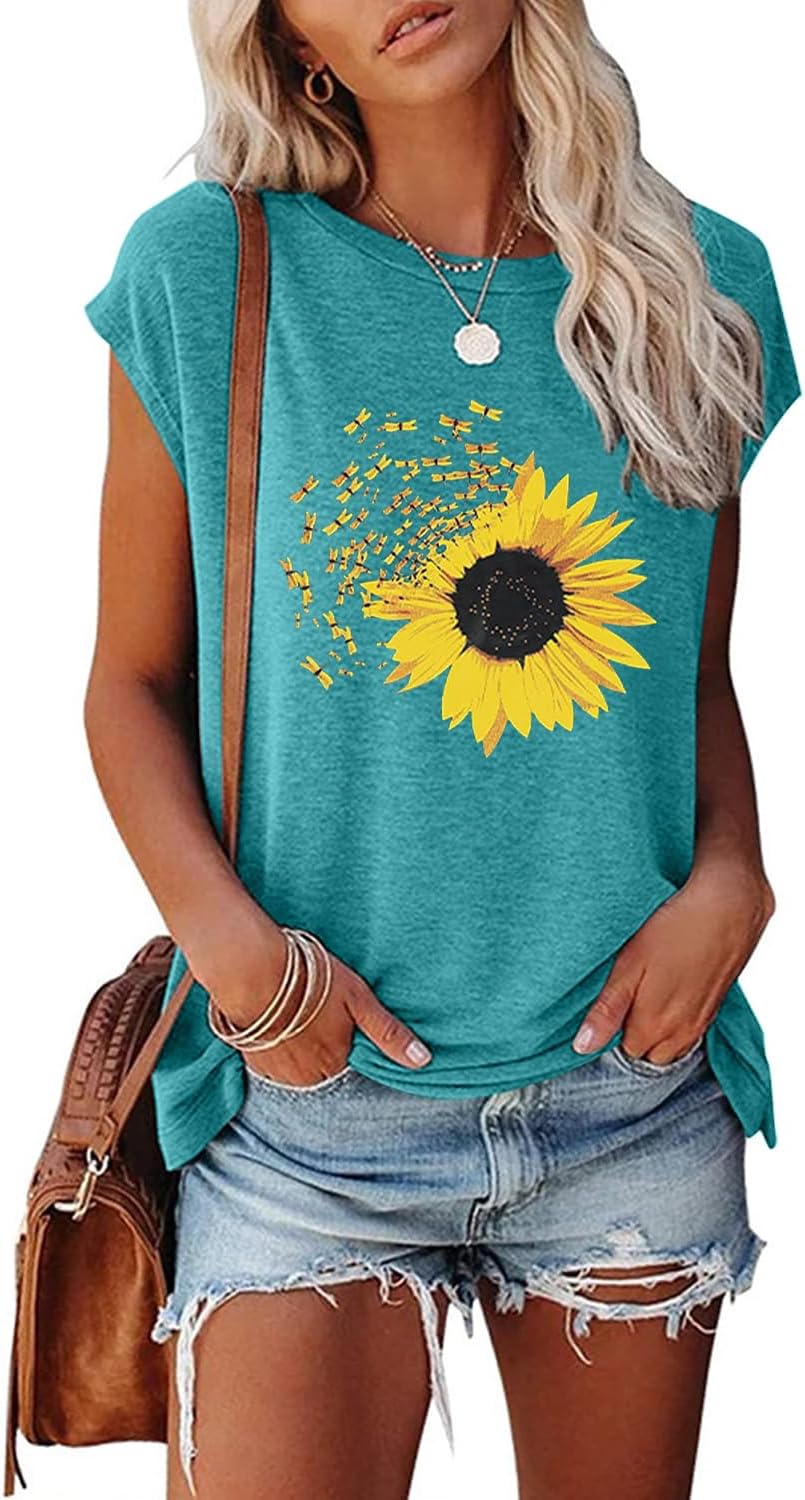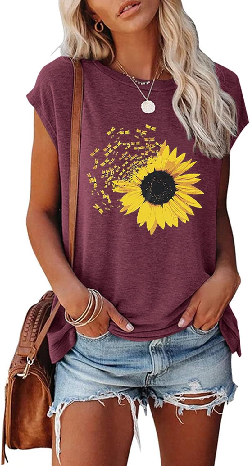 JNIFULI Women’s Graphic Tees Casual Summer Funny Dragonfly Printed Short Sleeve Cute T Shirts Tops