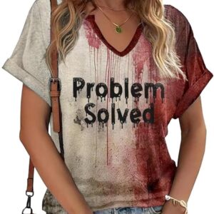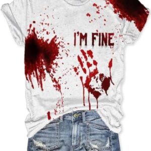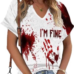 - Feature:Womens Halloween Novelty shirts Basic Witch Halloween T Shirt For Women ,Funny I’m Fine Problem Solved Blood Horror Print,Short Sleeve,Casual,family party T-shirt
