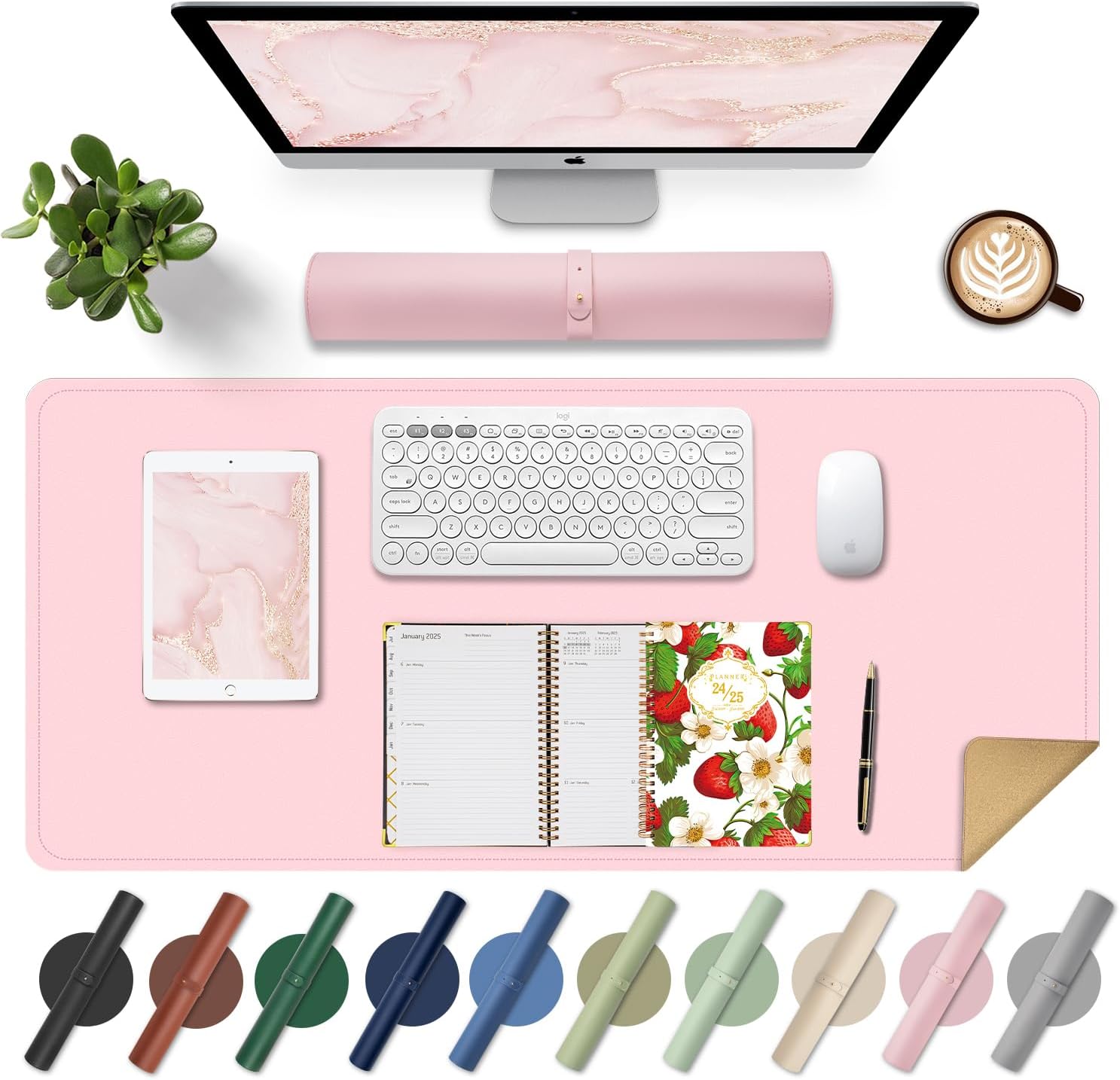 - Superior Protection Mat for Desk: Durable PU leather and cork material, provide reliable protection for your desk surface. Safeguard your tabletop from everyday wear and tear with our Dual-Sided Desk Pad. This large mouse pad and desk mat combo is a protective barrier, preventing scratches, scuffs, and spills from damaging your workspace.