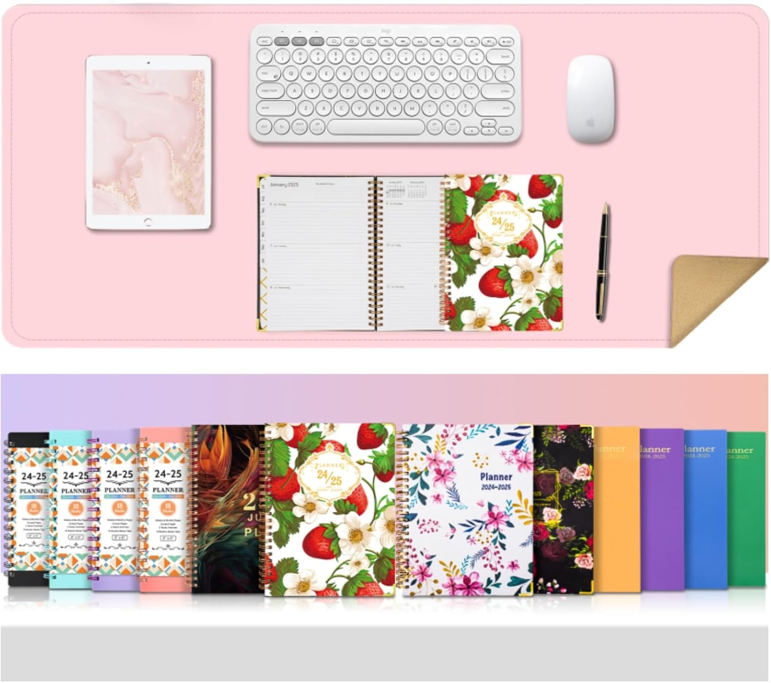 Leather Desk Pad Mat, Non-Slip Desk Protector with Wrist Rest Weekly Monthly Planner