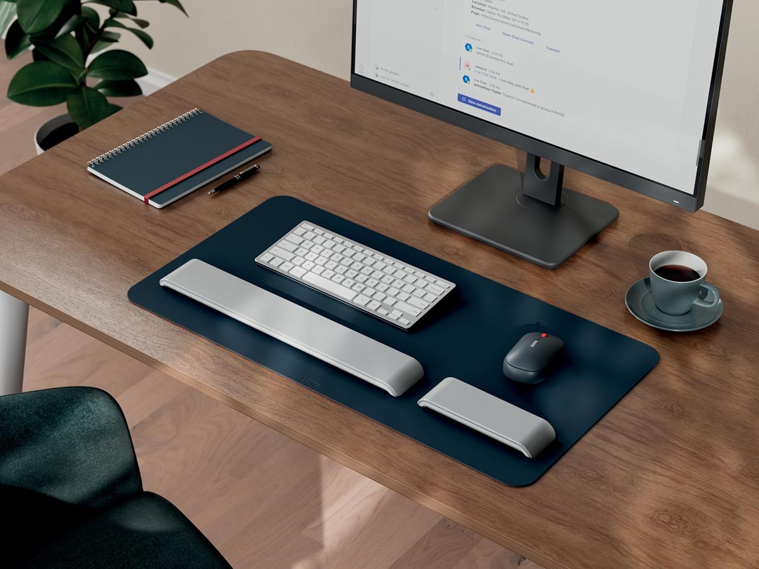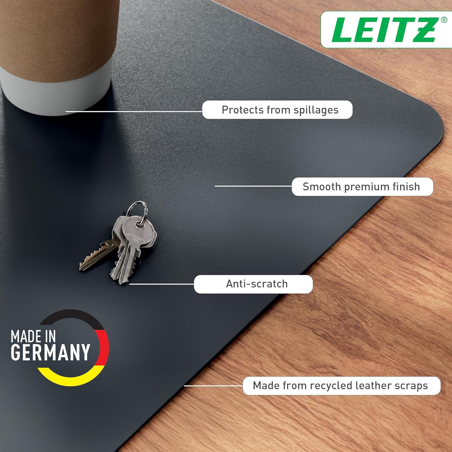 Leitz Large Leather Desk Mat – Recycled Leather Desk Pad, Non-Slip Mat, Premium Writing Pad, Keyboard & Mouse Mat, Laptop Desk Protector for Office & Home, Blotter, Eco-Friendly (70x36cm, Dark Grey)