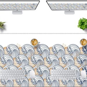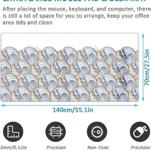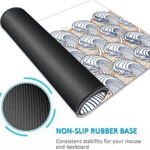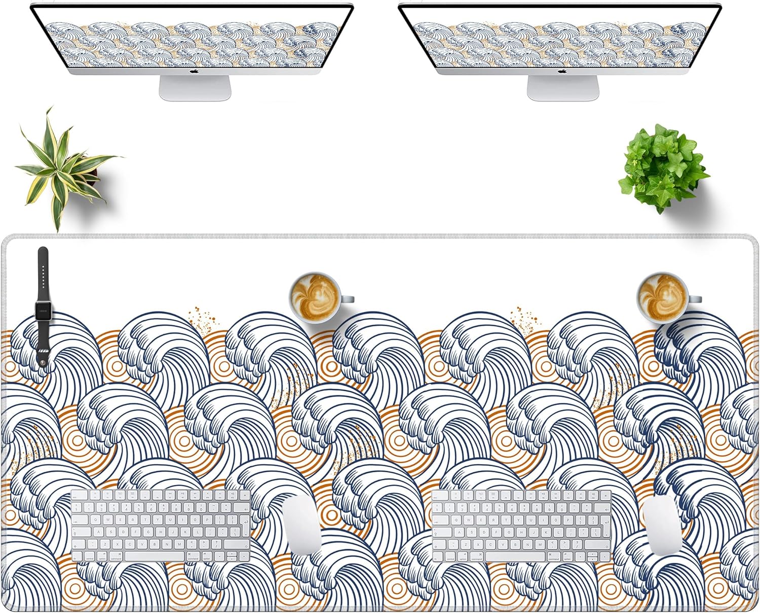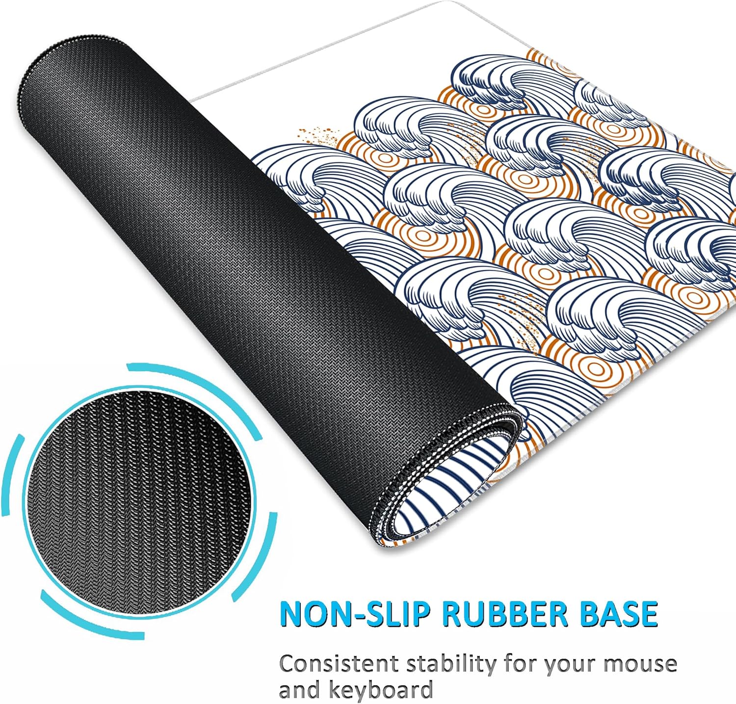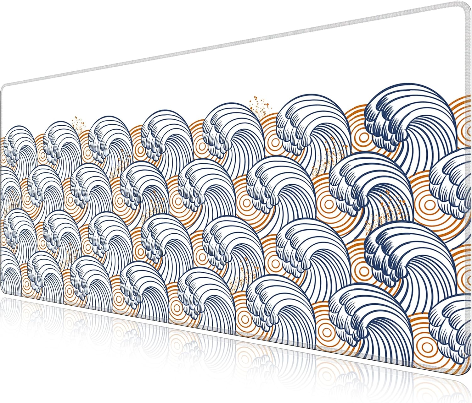 LL-COEUR Sea Wave Large Gaming Mouse Pad 55.1×27.5×0.12inch Long Computer Mouse Mat with Non-Slip Base Stitched Edges Office Desk Accessories Gifts XL