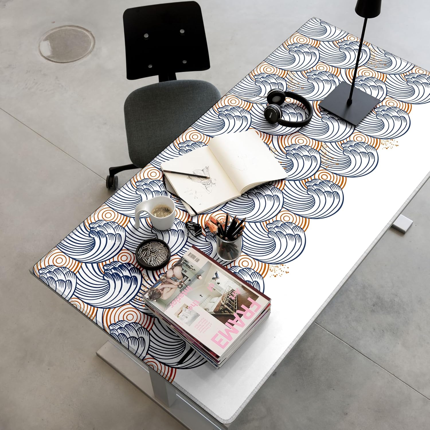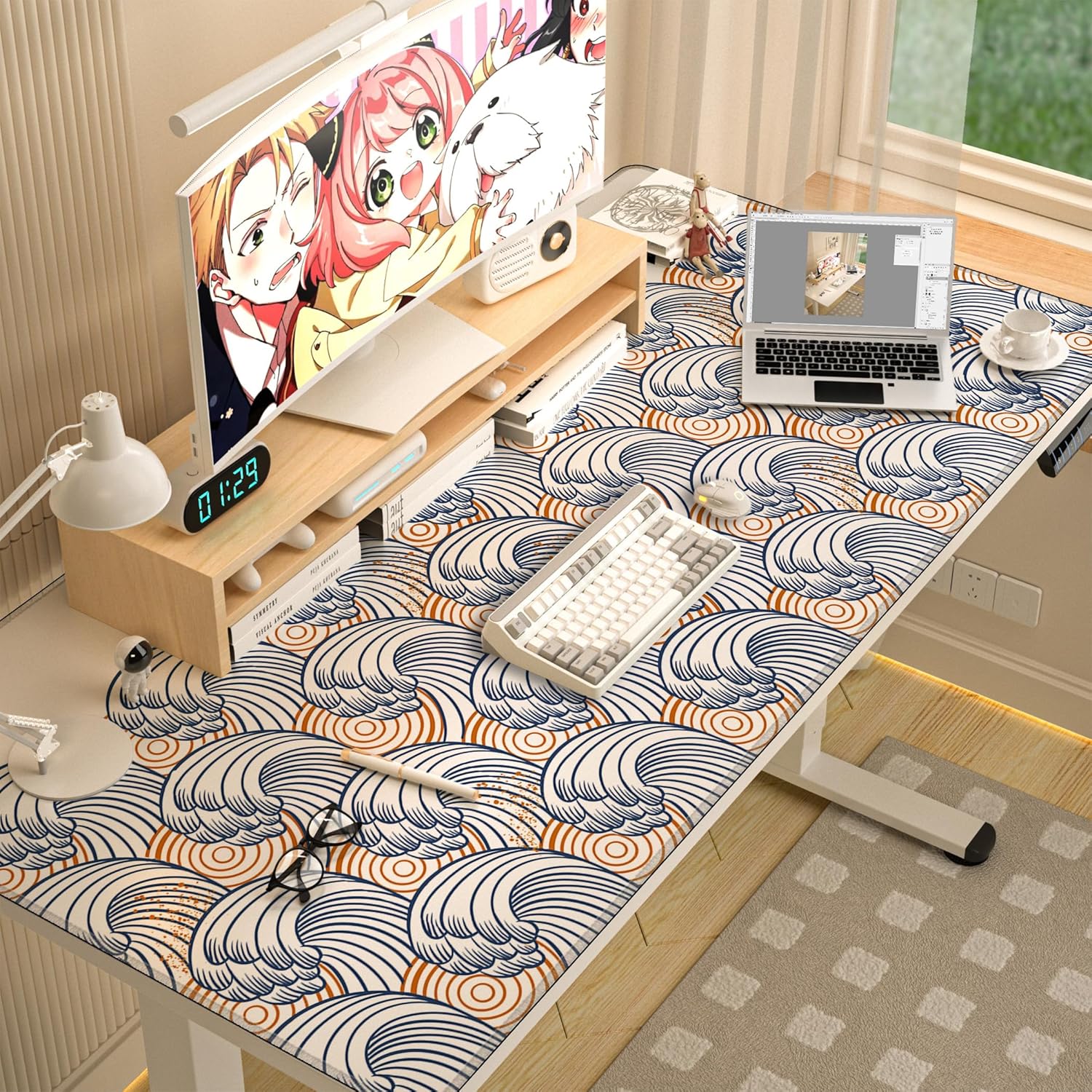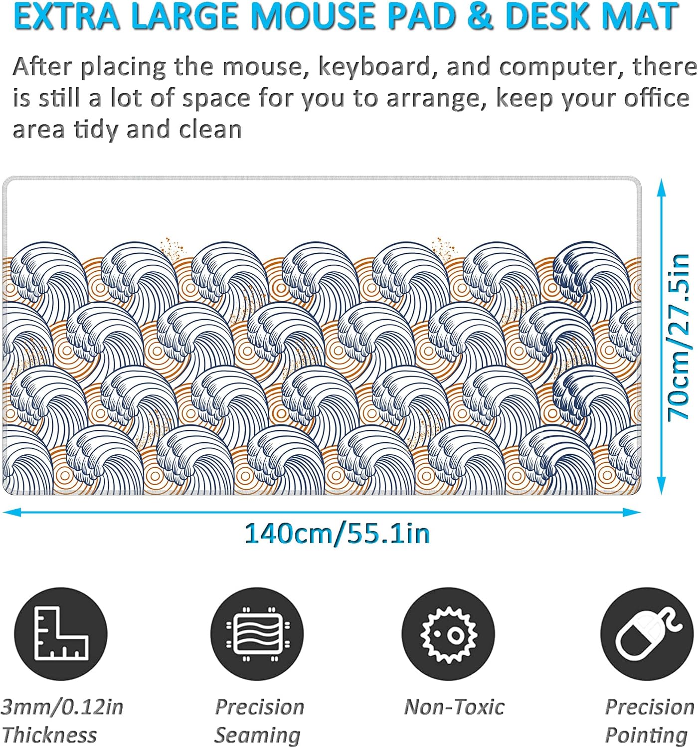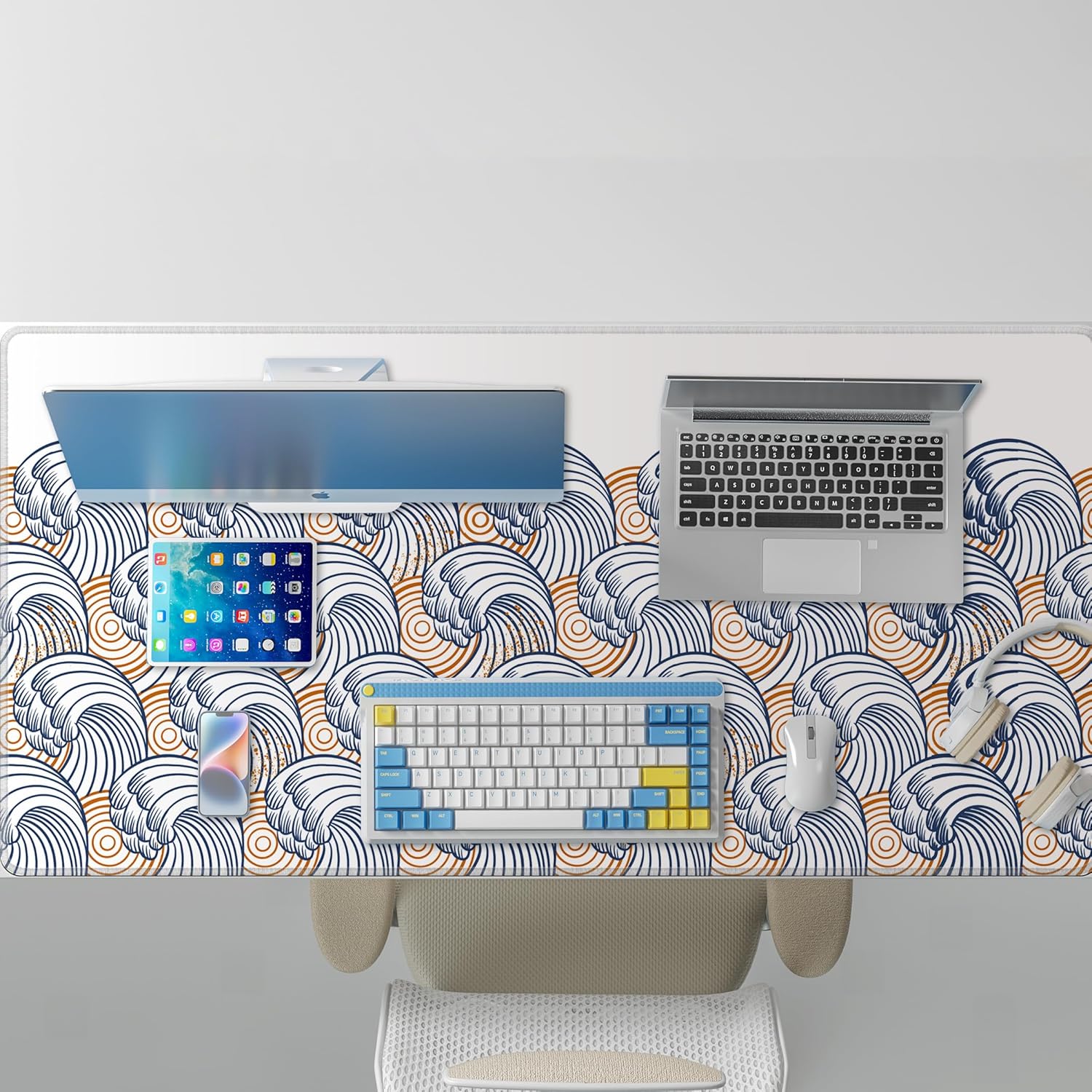 LL-COEUR Sea Wave Large Gaming Mouse Pad 55.1×27.5×0.12inch Long Computer Mouse Mat with Non-Slip Base Stitched Edges Office Desk Accessories Gifts XL