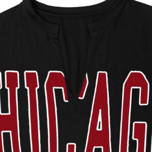 - FEATURES: Womens short sleeve t shirts features a sexy v neck, solid color, cute Chicago printed and casual loose fit. Basic tunic shirt, drop shoulder longline tee, boyfriend style and low cut design.