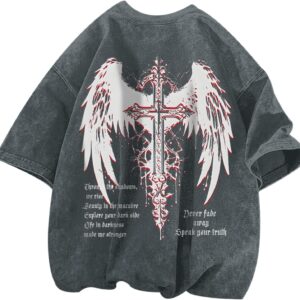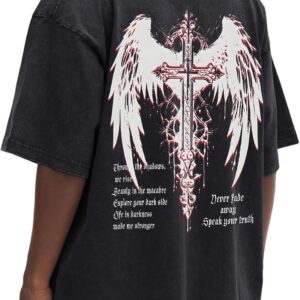 Gothic Cross Y2k Graphic Tees Acid Wash T Shirt