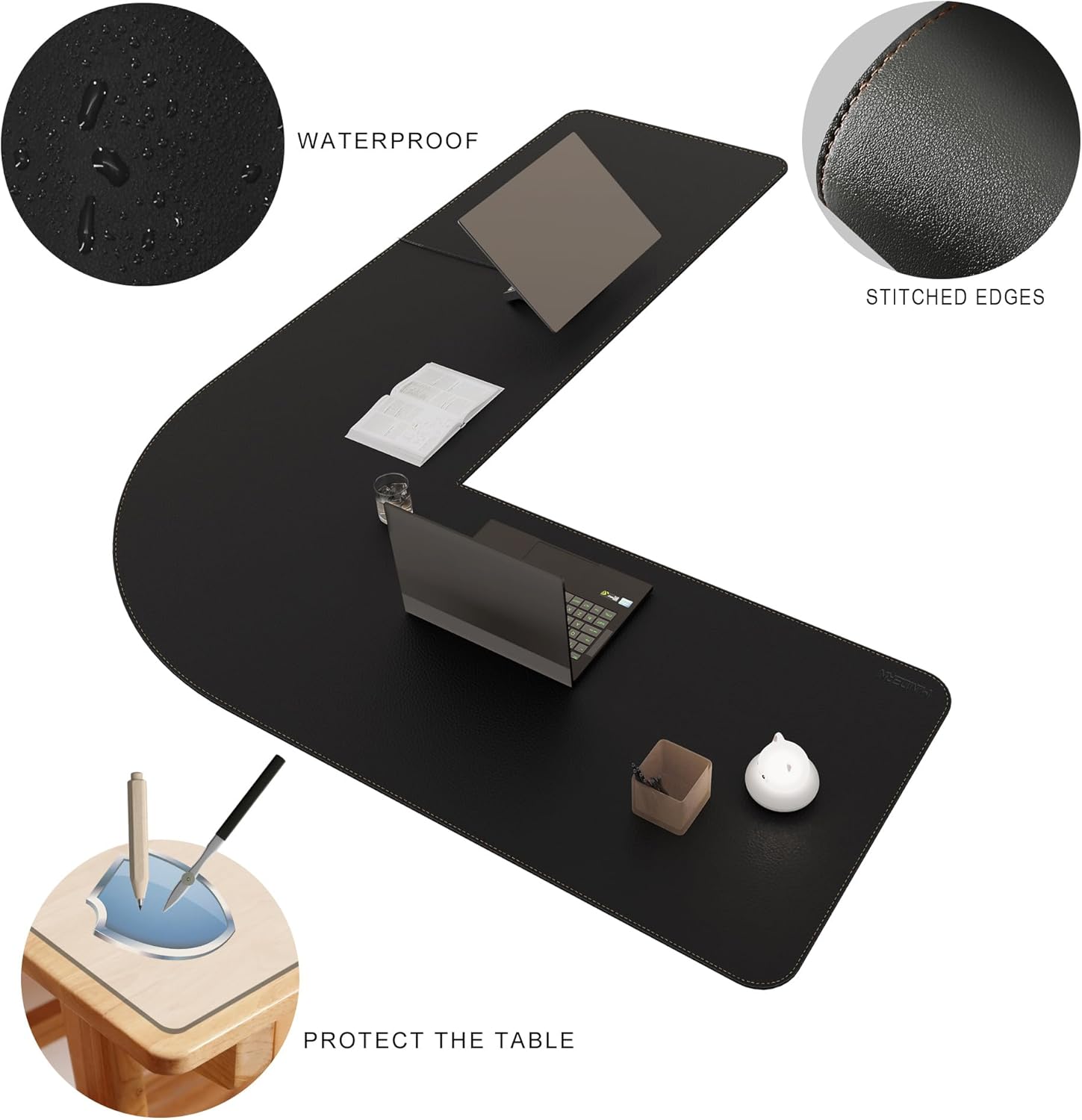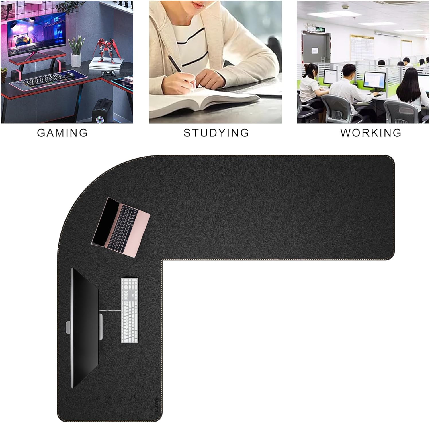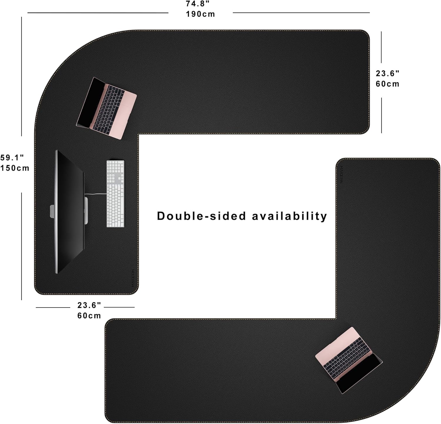 MAIDERN (59″ + 75″) x 23.6″ Black Large L Shaped Desk Mat – Dual Sided Leather Gaming Corner Desk Pad for Office Computer