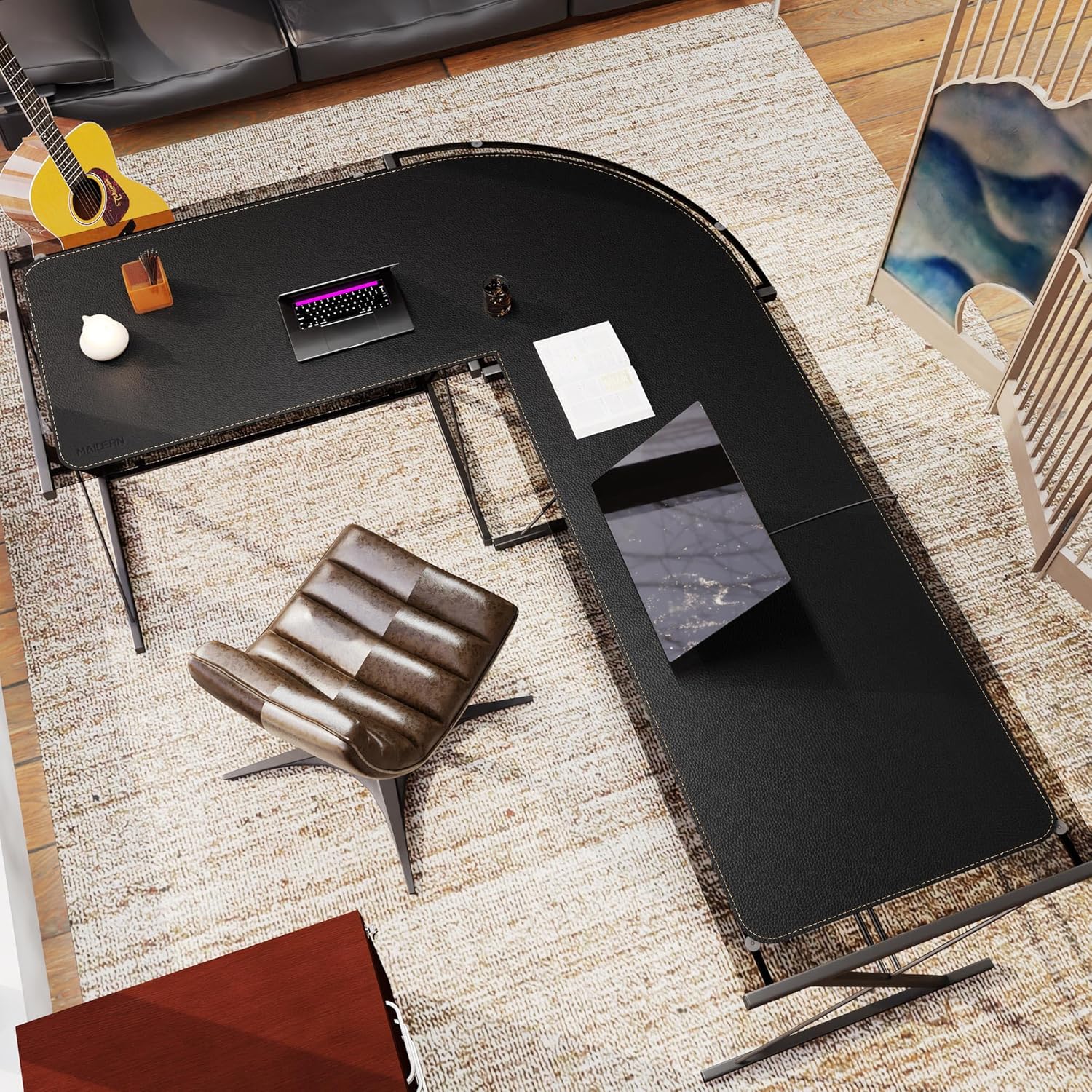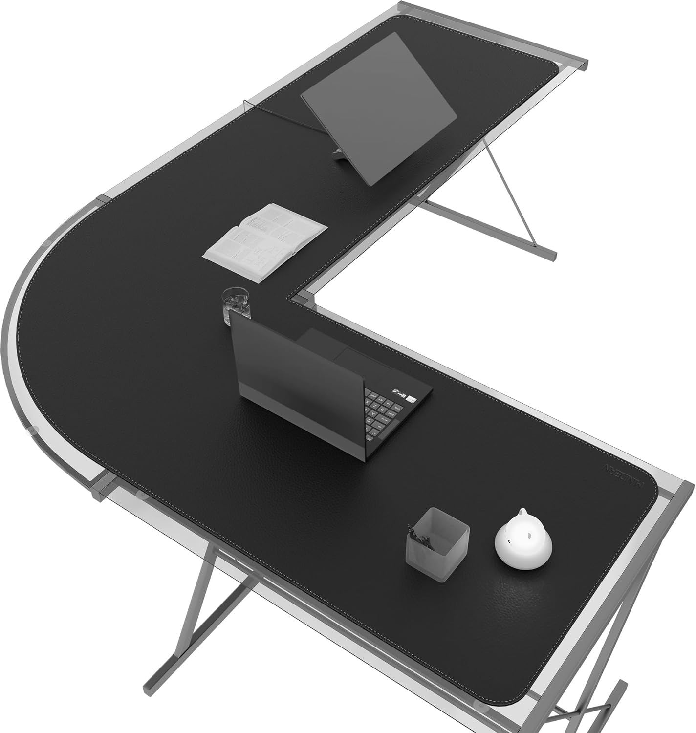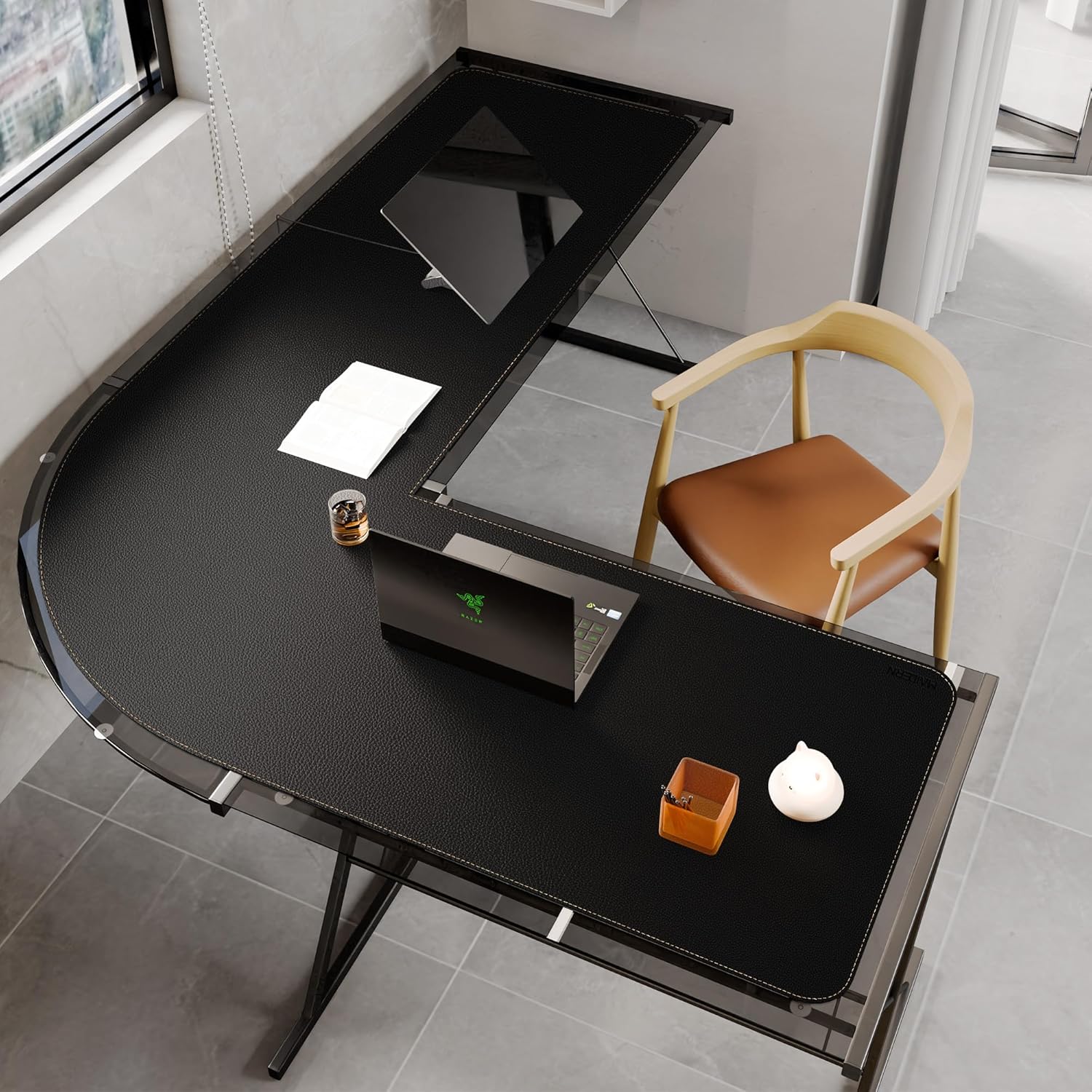 MAIDERN (59″ + 75″) x 23.6″ Black Large L Shaped Desk Mat – Dual Sided Leather Gaming Corner Desk Pad for Office Computer