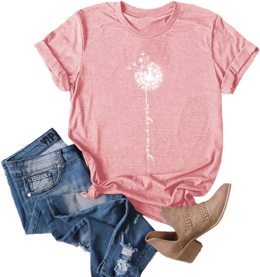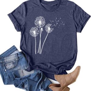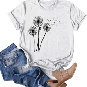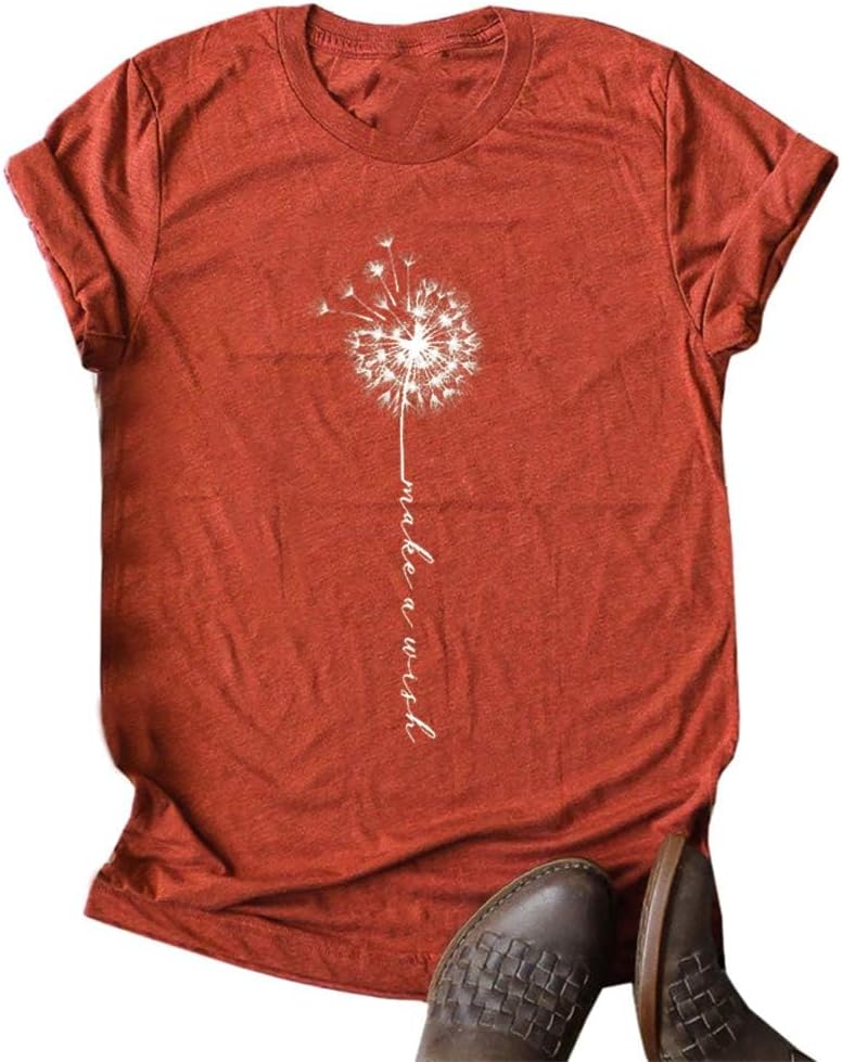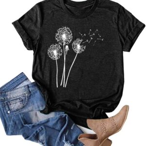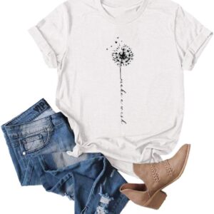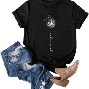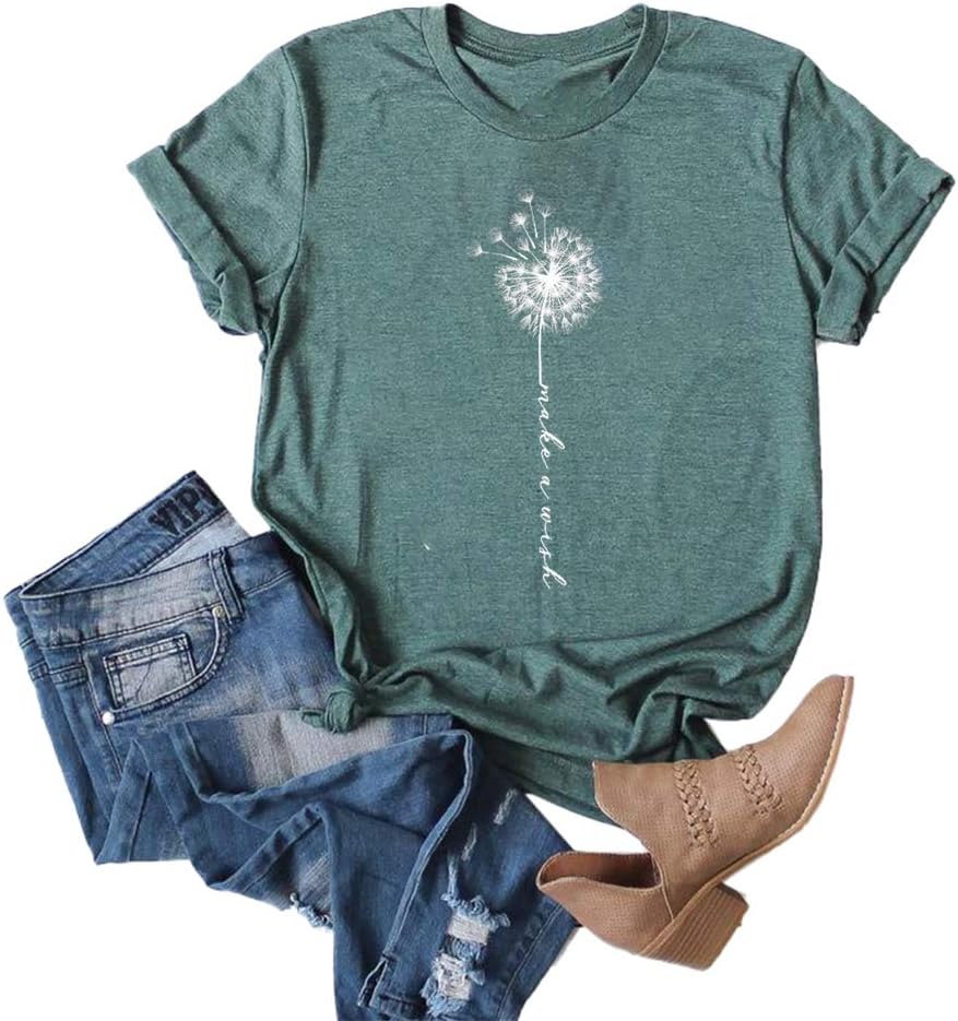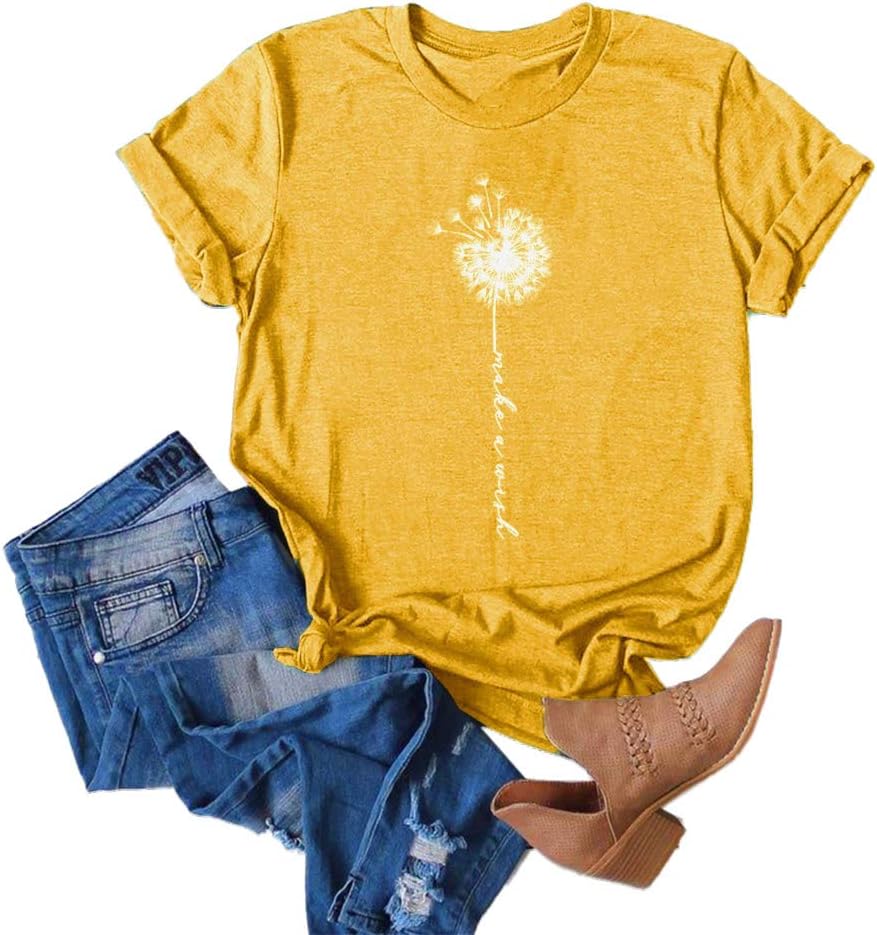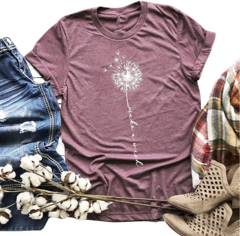 MaQiYa Womens Cute Make A Wish Dandelion Printed Tee Shirts Summer Cotton Vintage Graphic Tees Tops