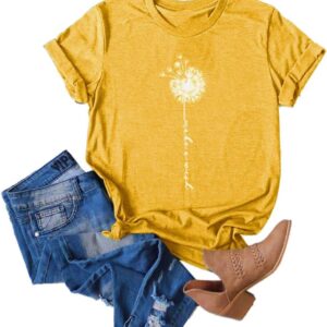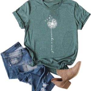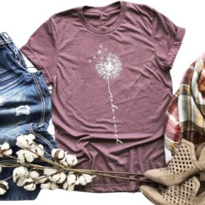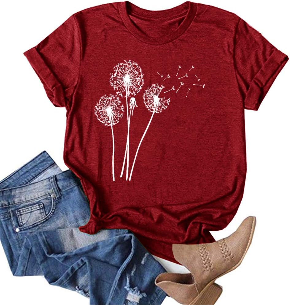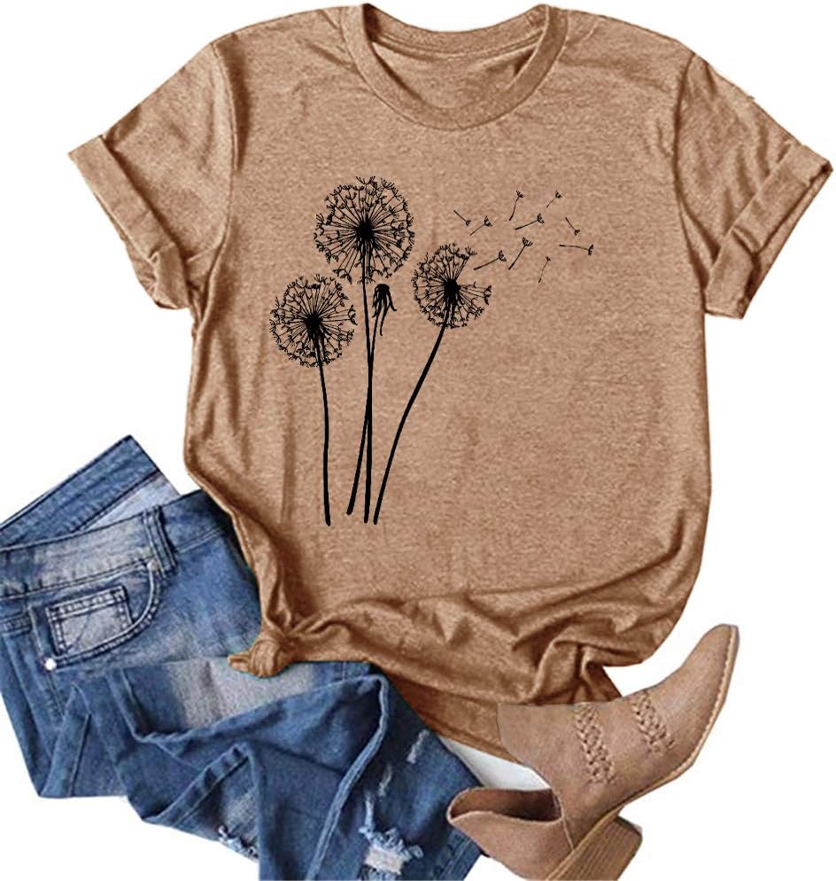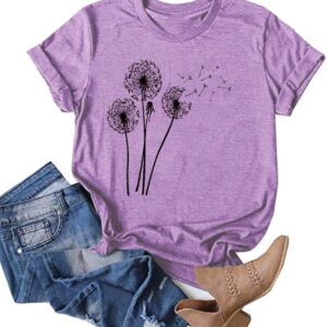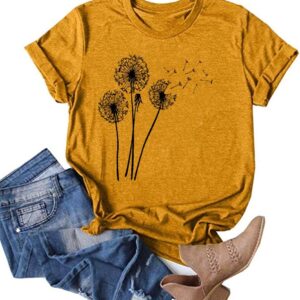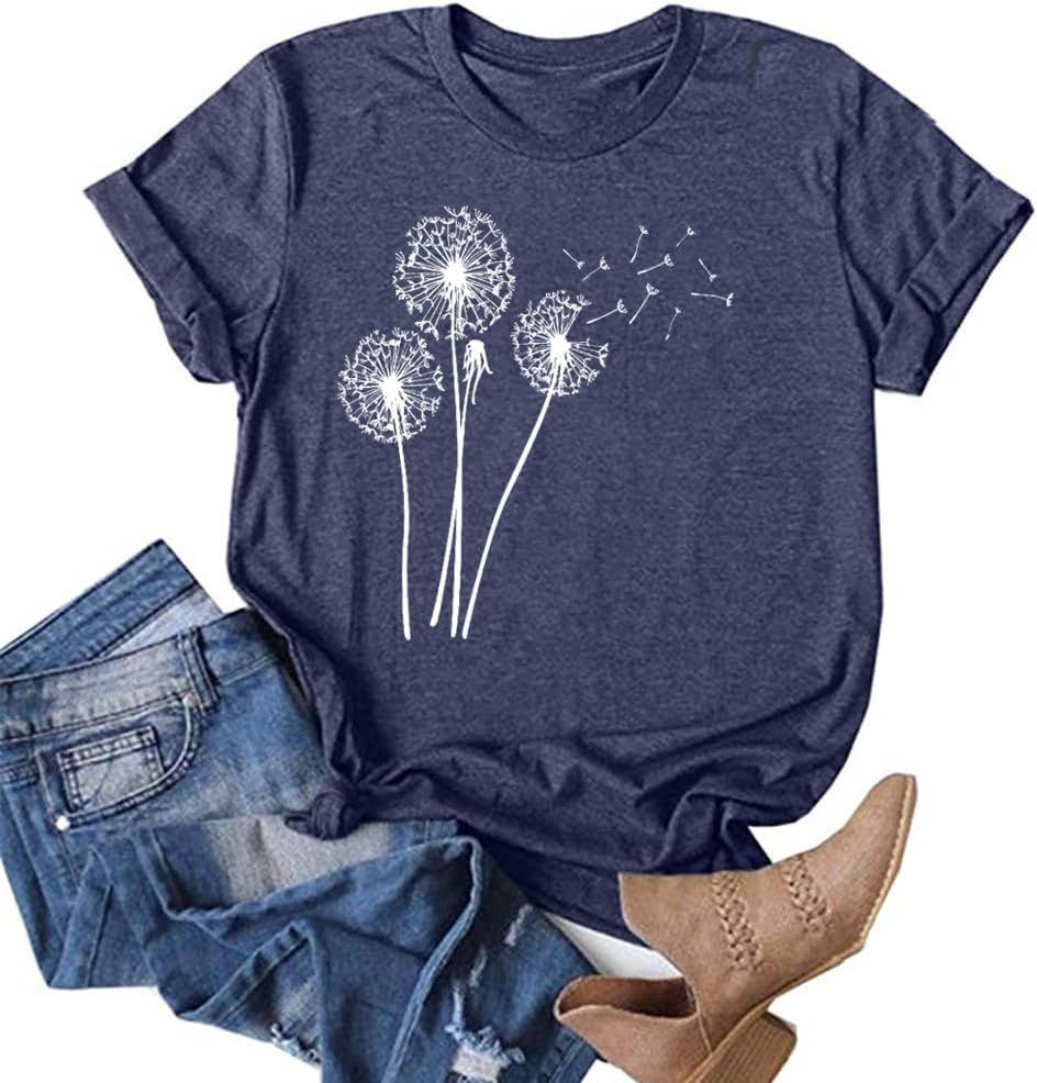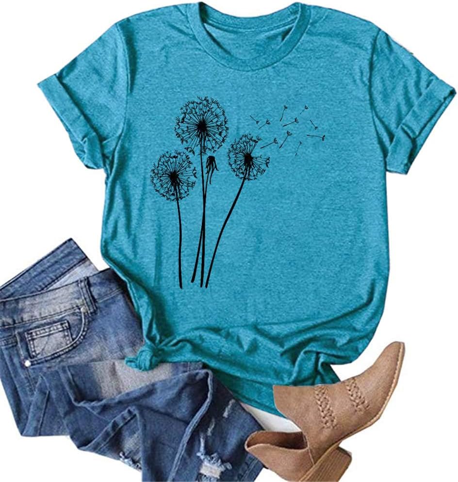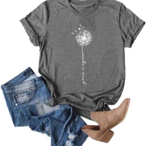 MaQiYa Womens Cute Make A Wish Dandelion Printed Tee Shirts Summer Cotton Vintage Graphic Tees Tops