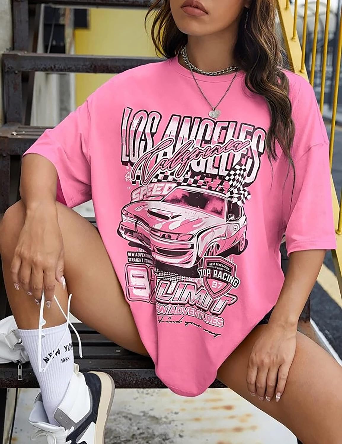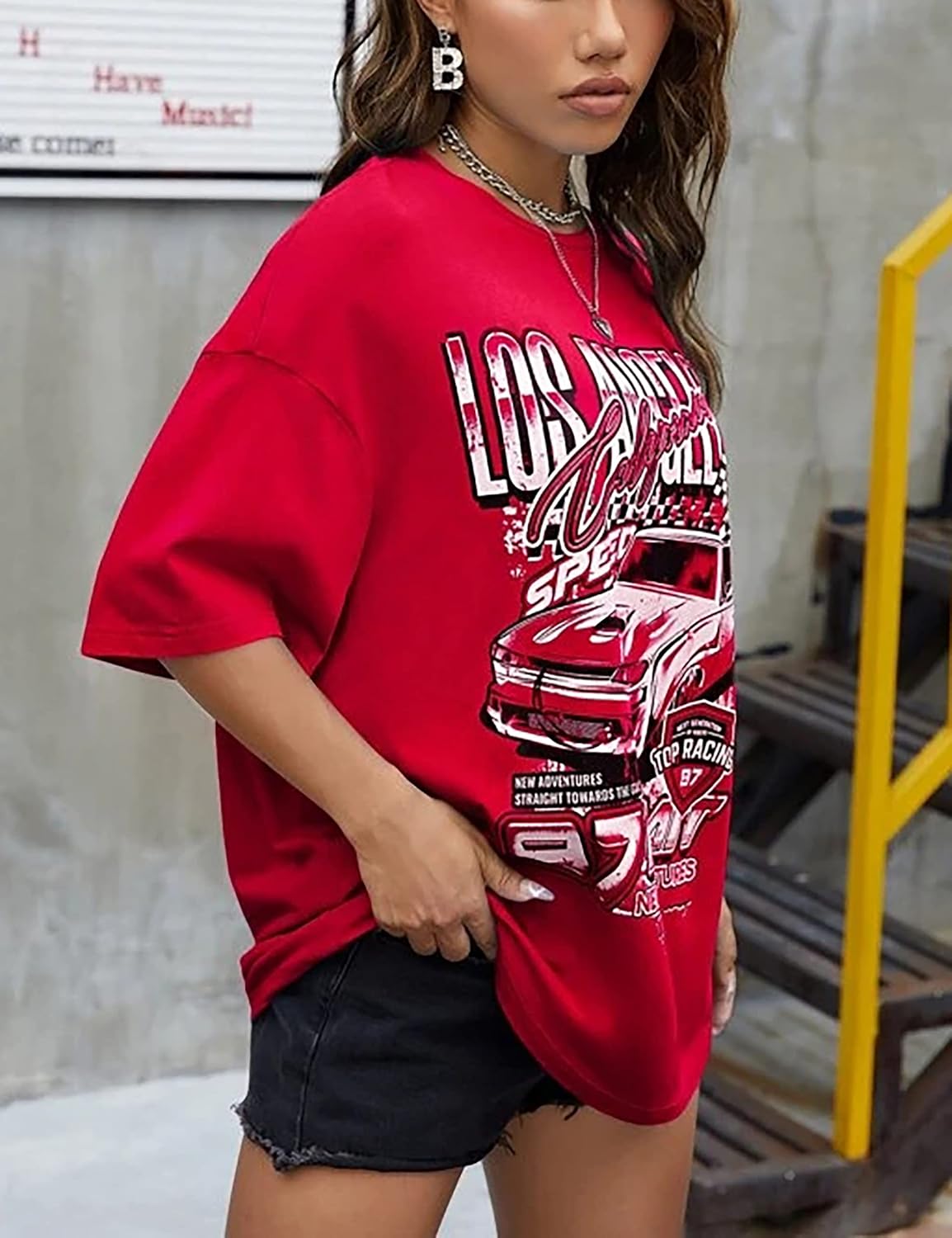 - Short sleeve, graphic letters printed, crew neck, Oversized T Shirt .