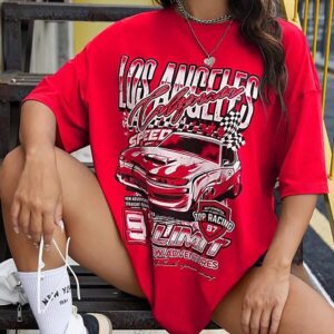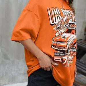 This colorful letter and car print t-shirt perfect for party,daily wear.