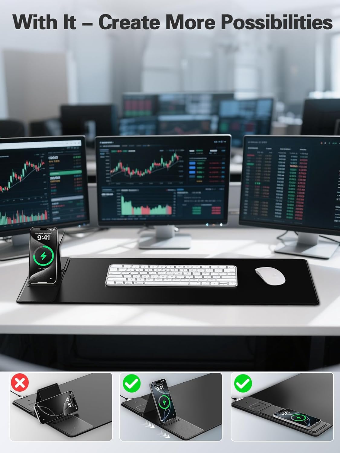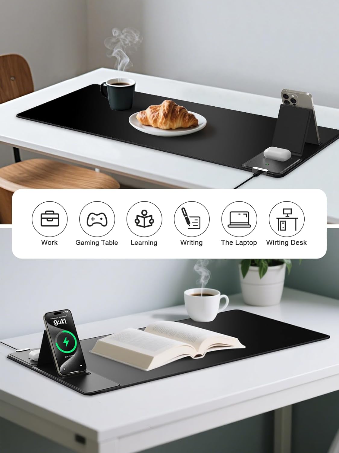 Mouse Pad, Office Desk Mat, Large Gaming Mousepad with Superior Micro-Weave Cloth, XXL Desk Pad with Stitched Edges, Non-Slip Writing Pad for Gamer, Laptop, Work & Home (Black with 20W PD Charger)