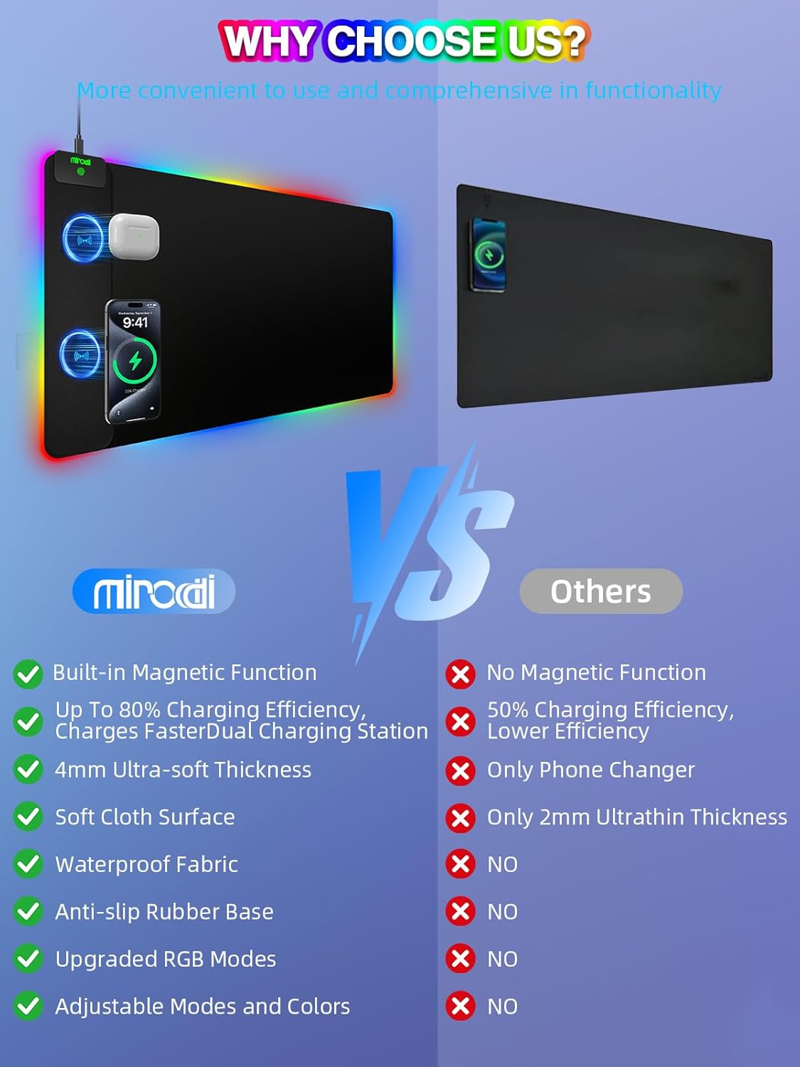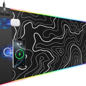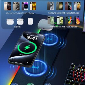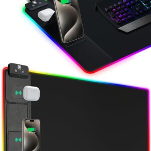 Mouse Pad with 15W Magnetic Wireless Charging 31.5×15.75 Inch, RGB Mousepad for Desk Mat, XXL Desk Pad with 11 Colors & 5 Modes, Home Office Large Keyboard Pad Waterproof Non-Slip for Gaming PC Setup