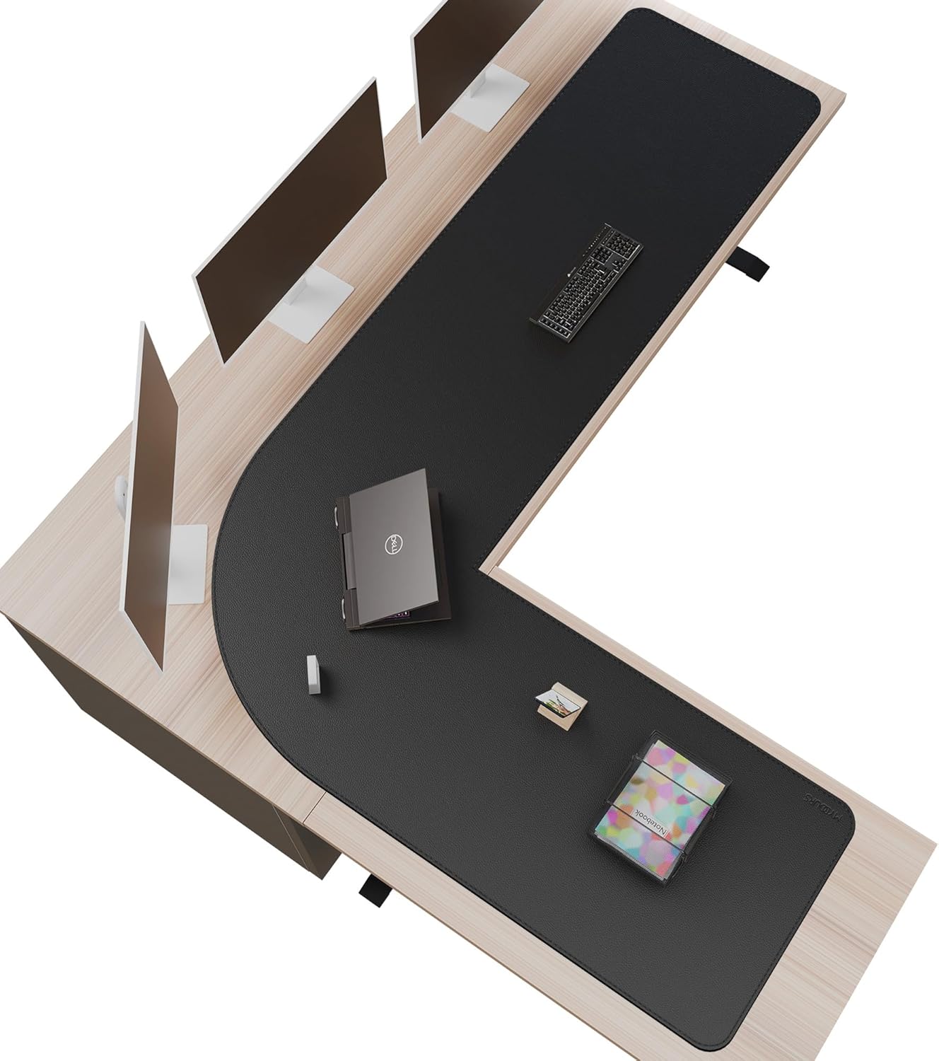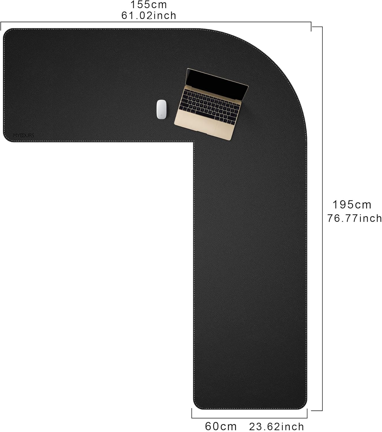 Mydours 61″ x 77″ x 24″ L Shaped Desk Pad (Black), Extra Large Dual-Sided PU Leather Corner Desk Mat Protector for Home Office Computer Gaming