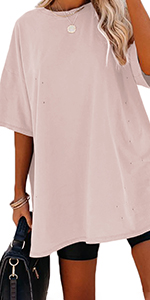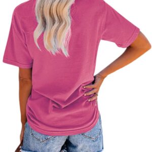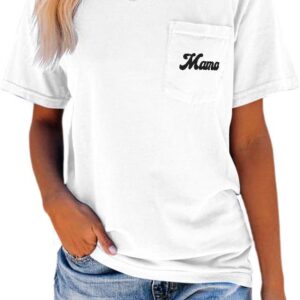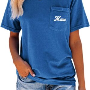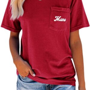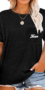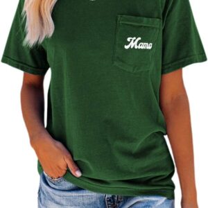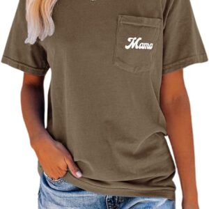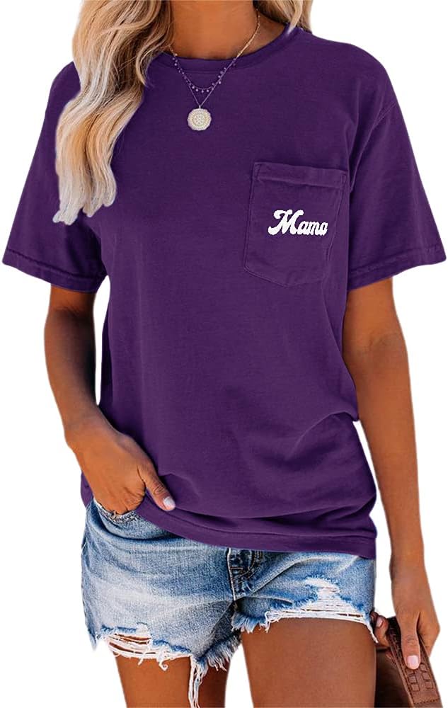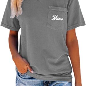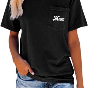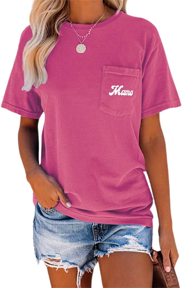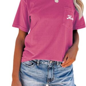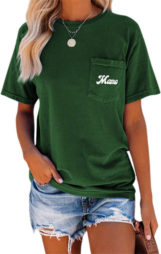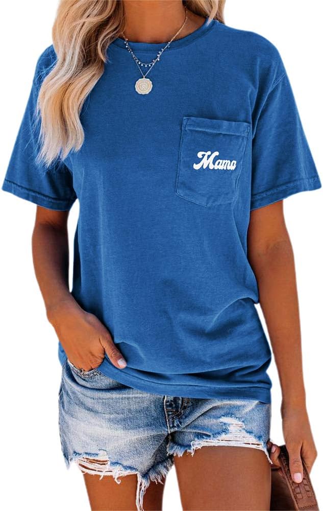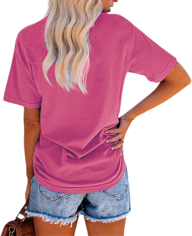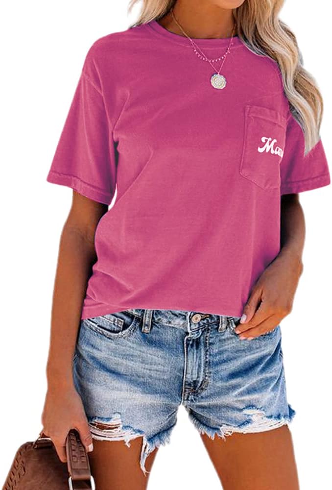 NIUBIA Women’s Letter Print Basic Crew Neck Tee Summer Short Sleeve T-Shirt with Pockets Loose Fitting Tops