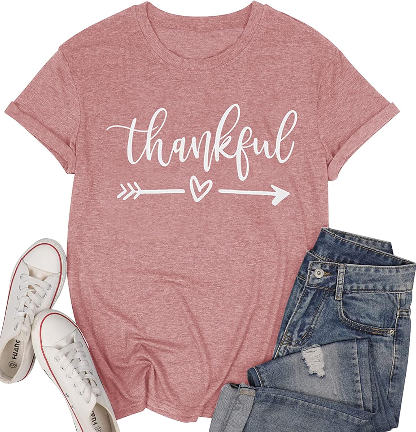 NIUBIA Women’s T Shirts Summer Tops Simple Heart Graphic Shirts Sayings Short Sleeve Vacation Casual Blouse Thankful Tee