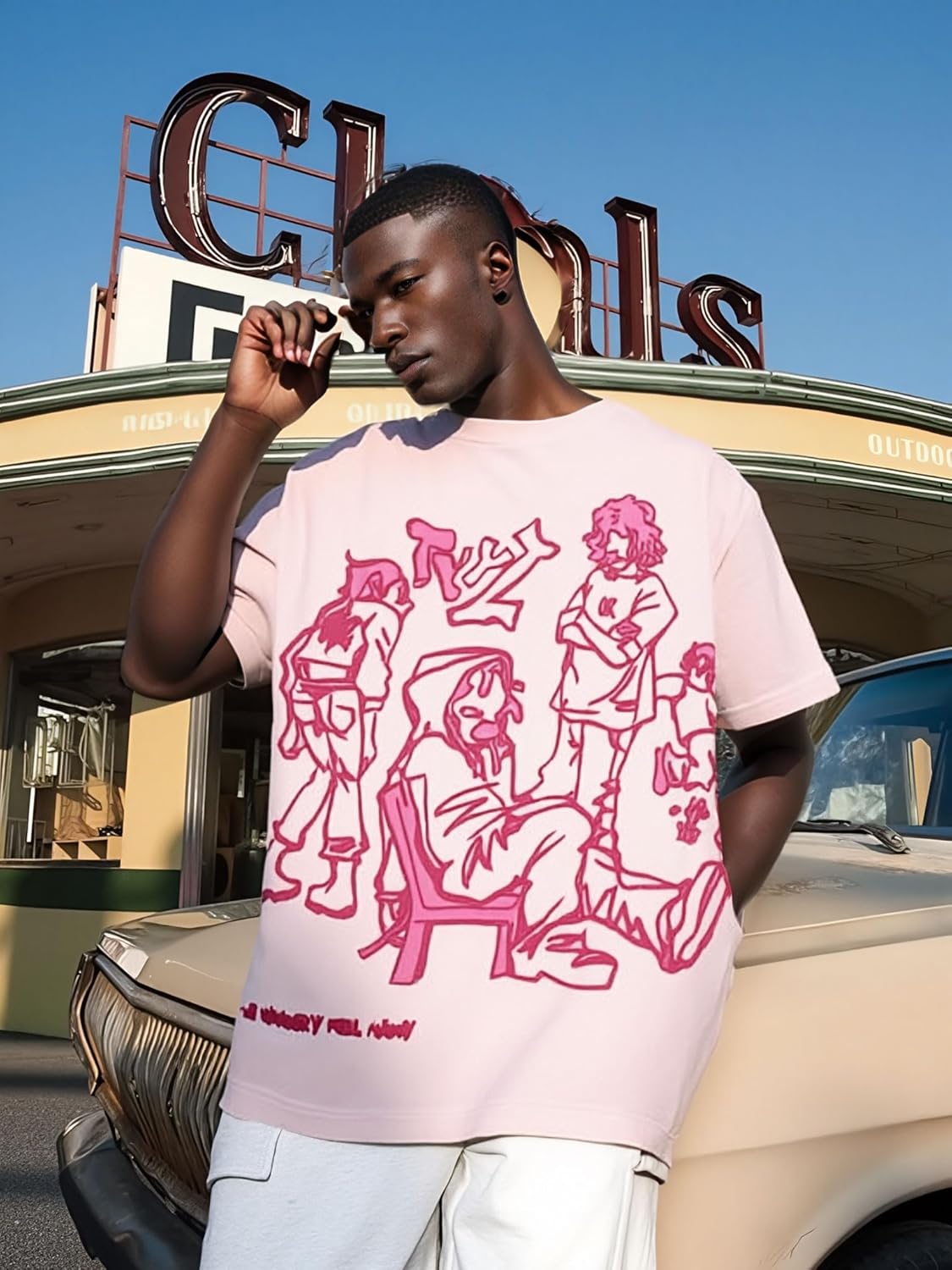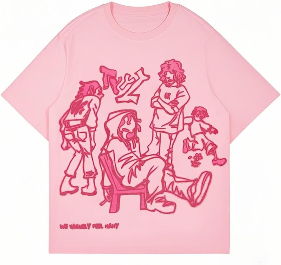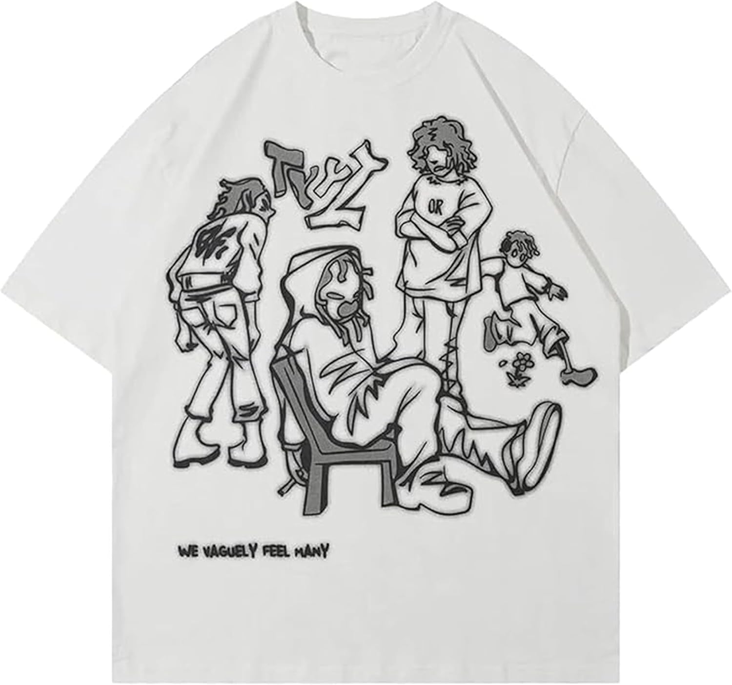 Oversized Graphic Tees Men Vintage Y2K Print Shirts Streetwear Unisex Harajuku T-Shirts