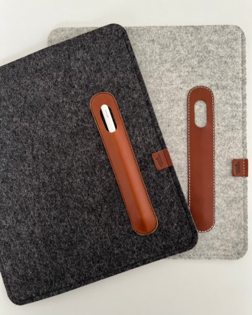 Discover our high-quality sleeves, handcrafted from premium Merino wool felt and vegetable-tanned leather.